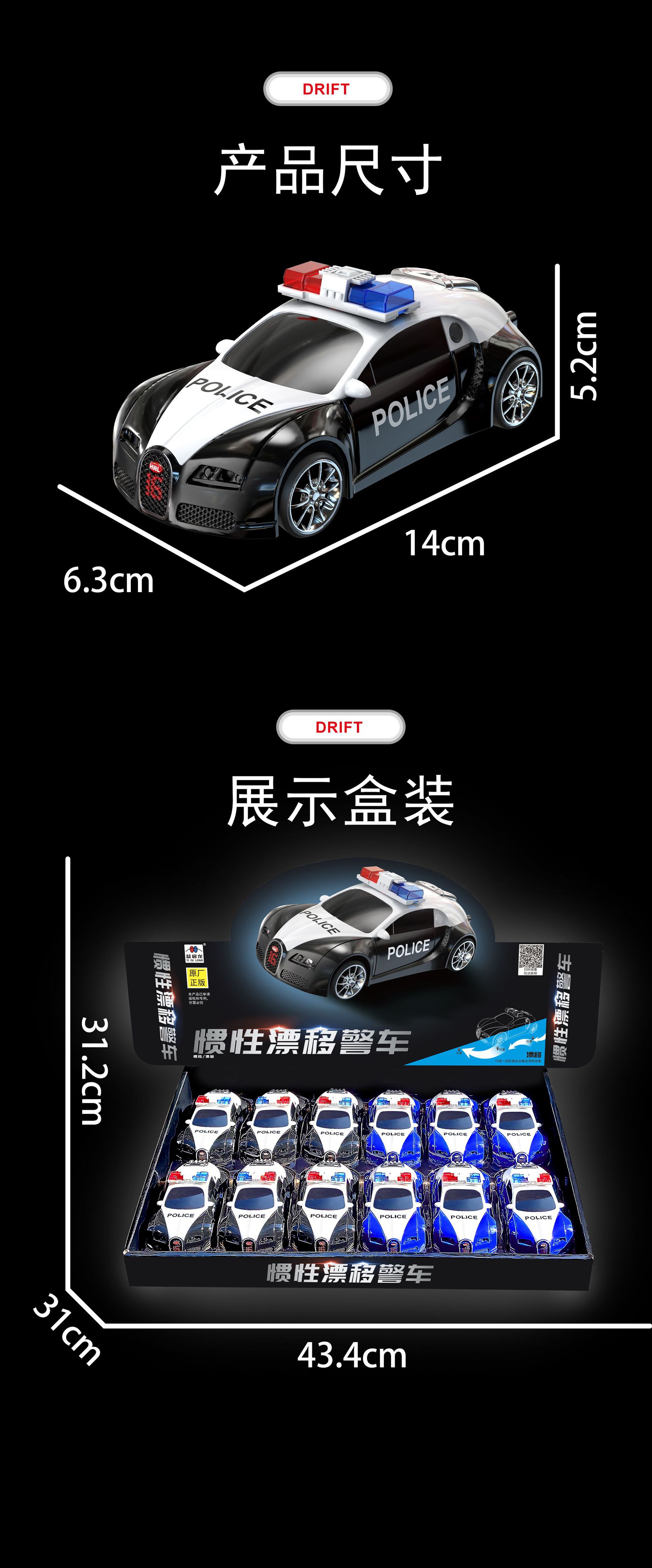 惯性漂移警车 袋装 200/箱 58*33*48cm 19/18kg