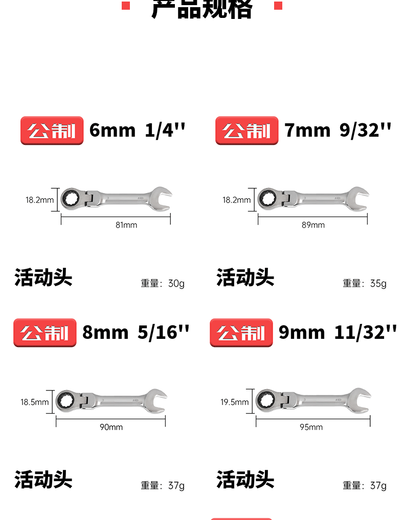 • 미터법 짧은 핸들 18mm 이동식 헤드