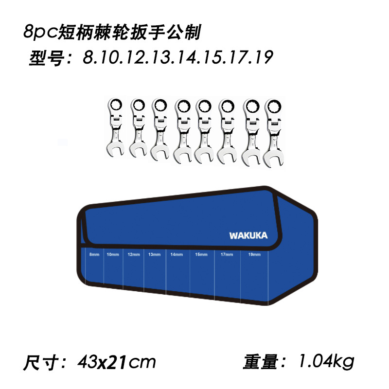 • 이동식 짧은 손잡이 미터법 파란색 8개 세트