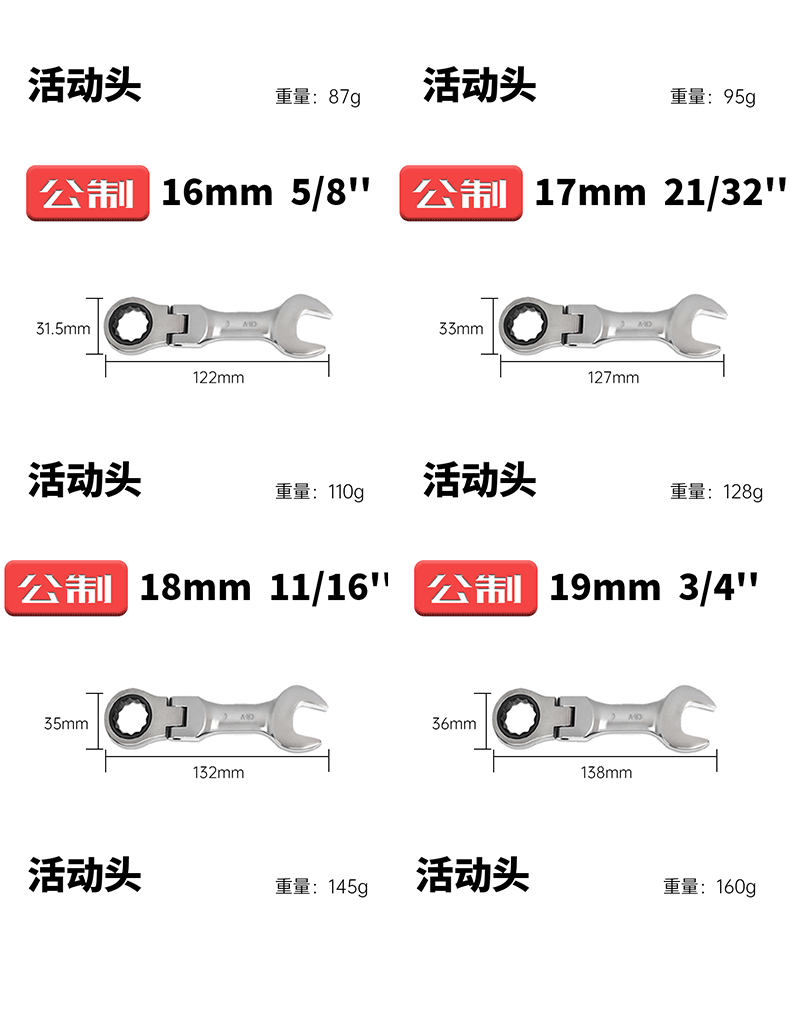 • 미터법 짧은 핸들 16mm 이동식 헤드
