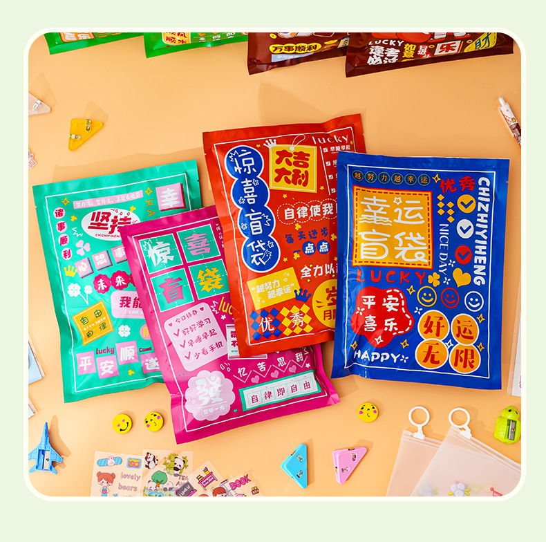 만화 블라인드 박스 빈 가방 재고 깜짝 생일 수제 선물 가방 블라인드 가방 DIY 셀프 밀봉 플라스틱 포장 가방