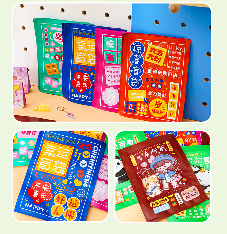 만화 블라인드 박스 빈 가방 재고 깜짝 생일 수제 선물 가방 블라인드 가방 DIY 셀프 밀봉 플라스틱 포장 가방스토어 가기