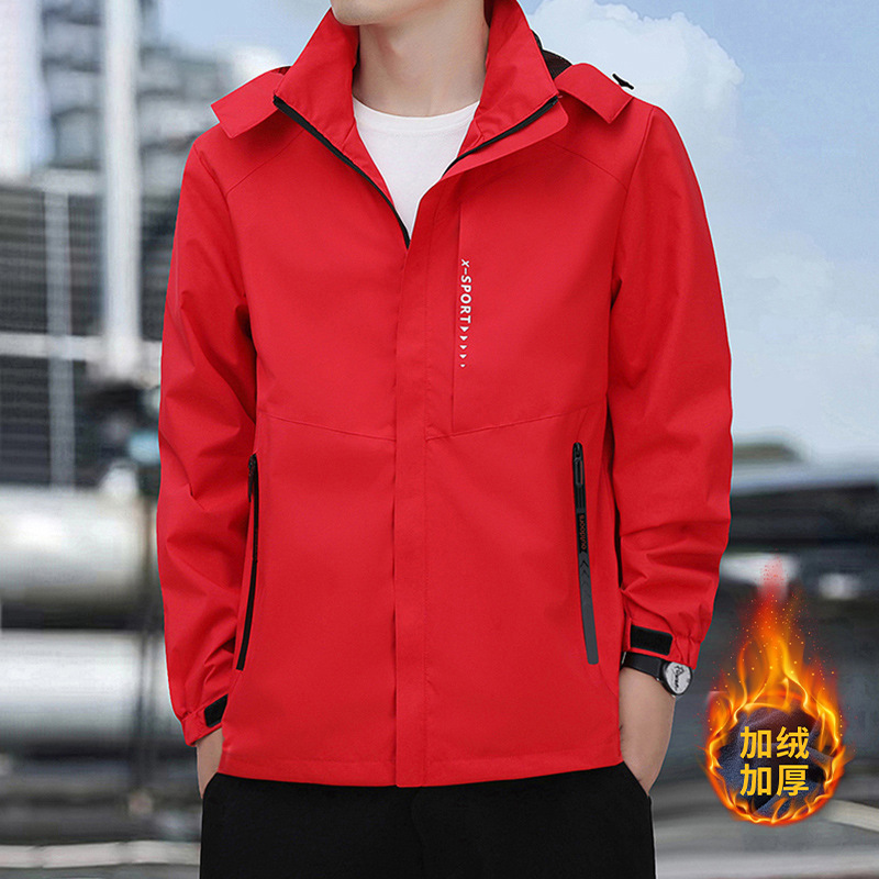 가을/겨울 2024 기모 새로운 등산 후드 재킷 남성용 루즈 패션 캐주얼 재킷 풍수 방지 재킷
