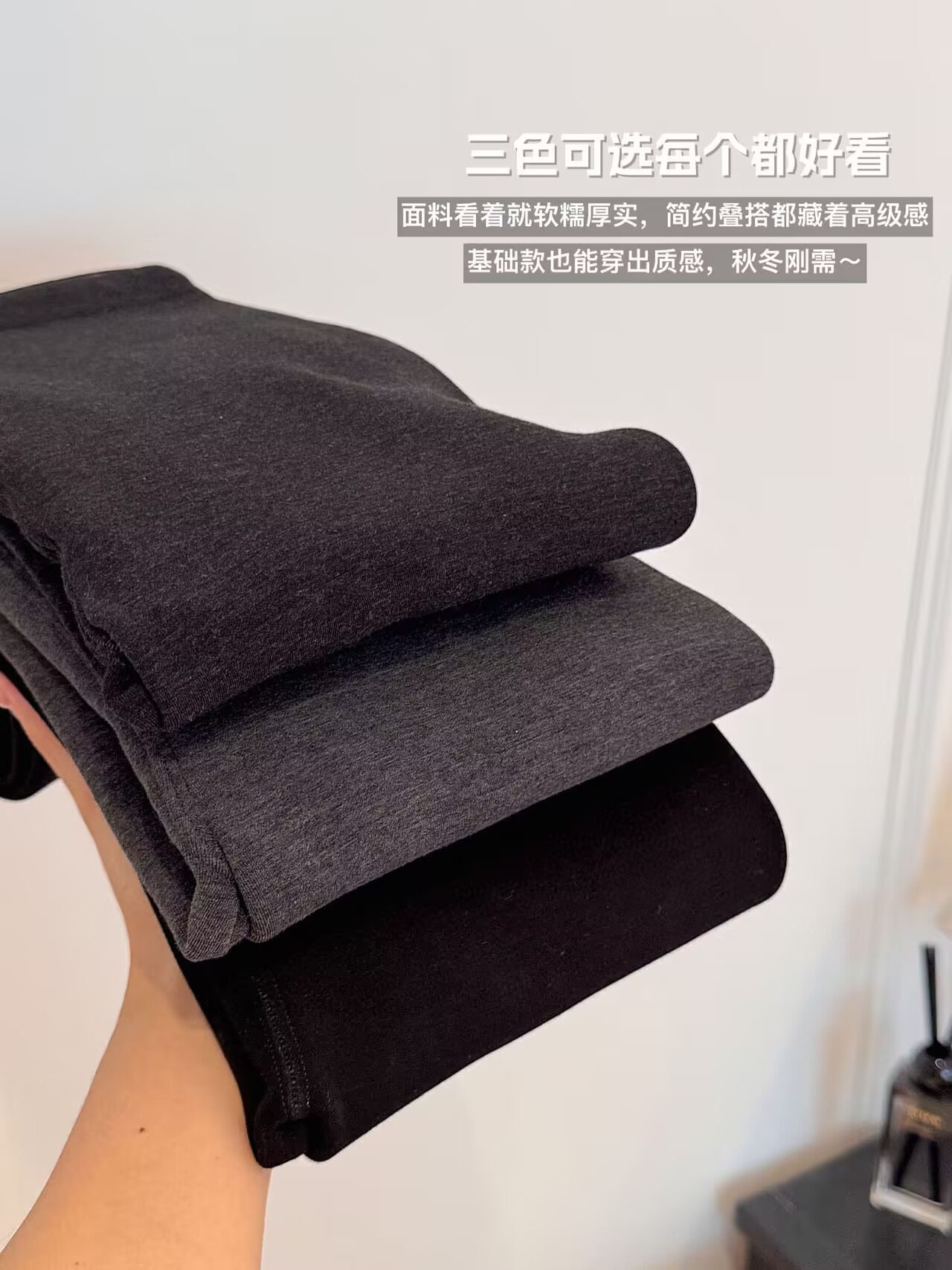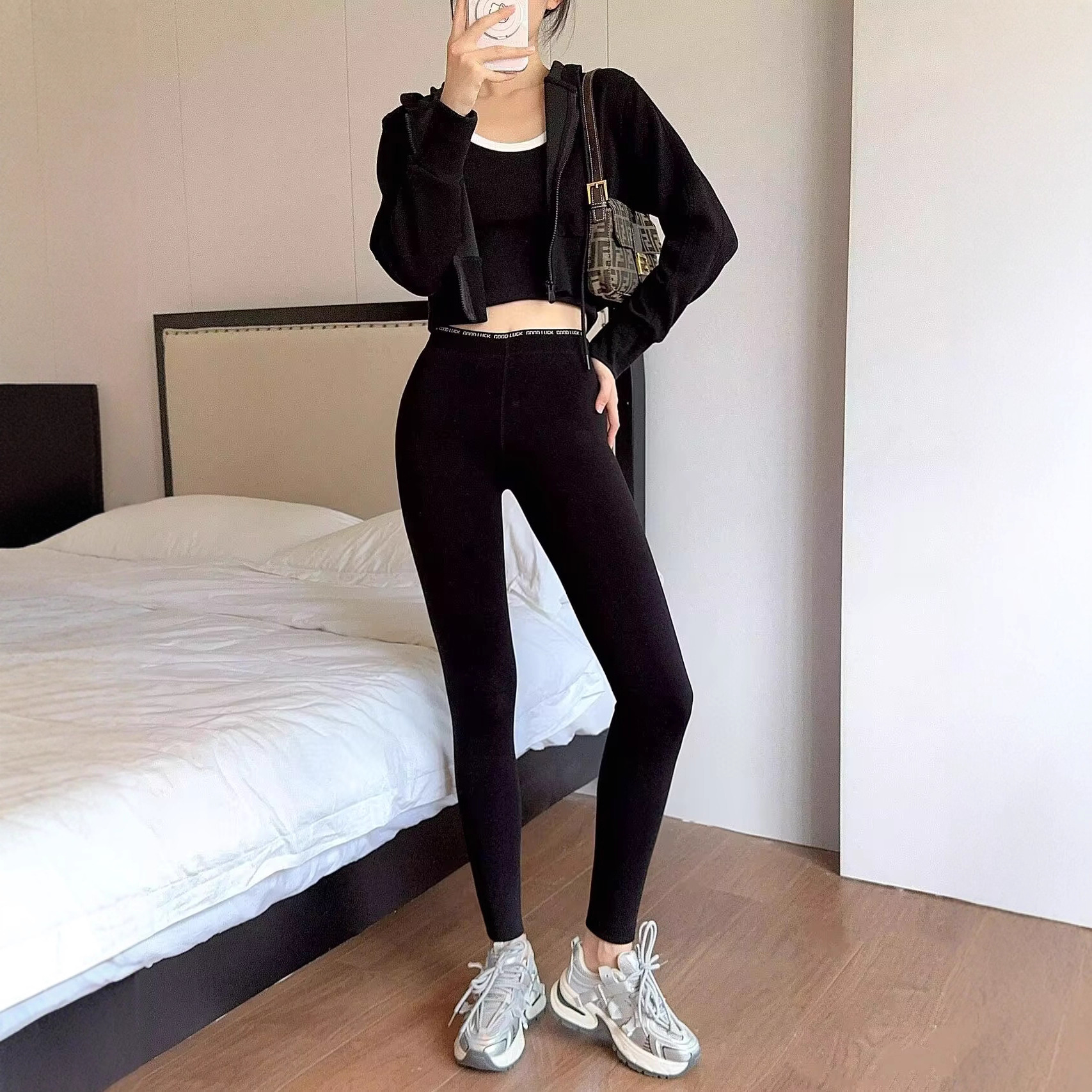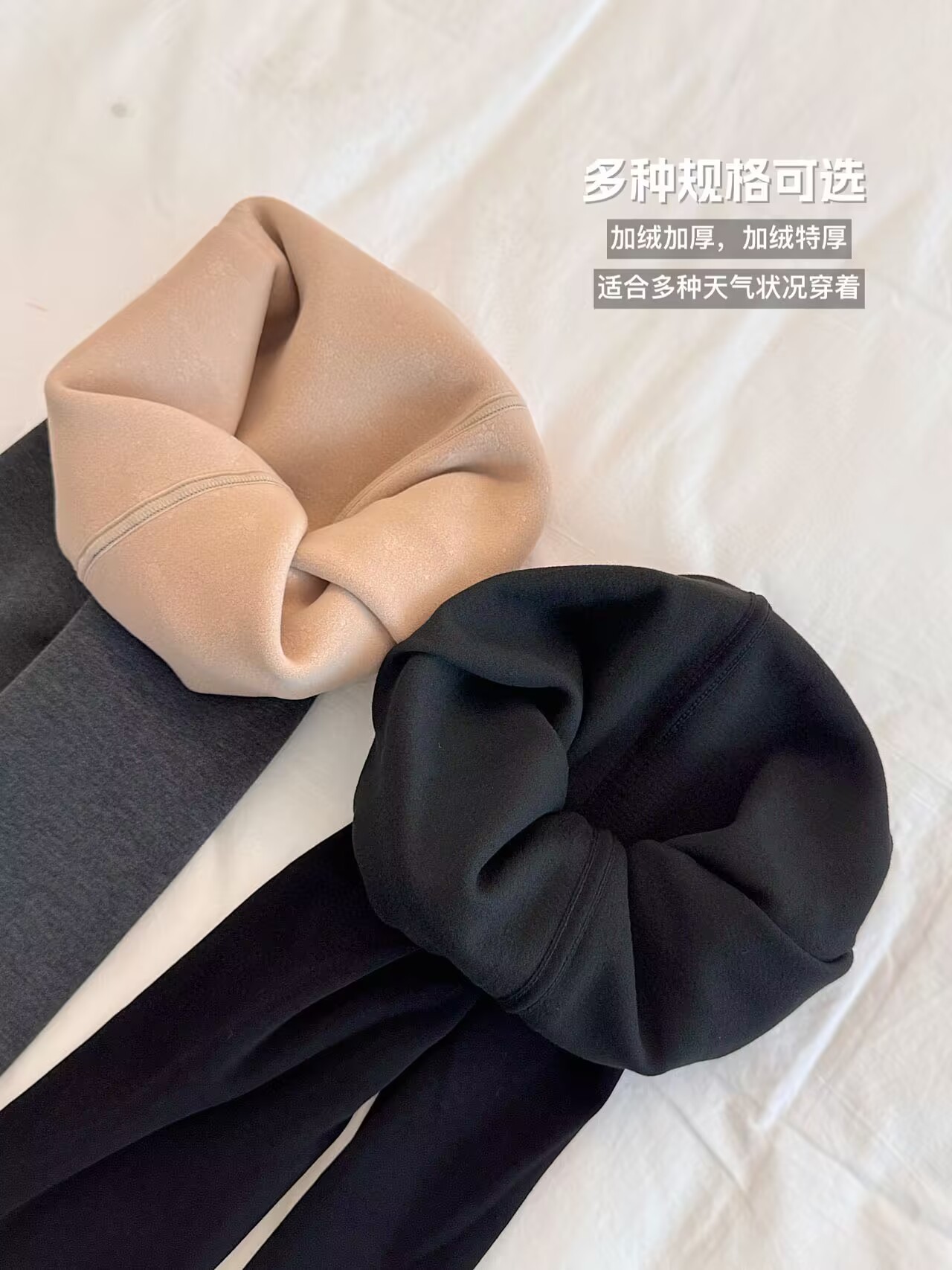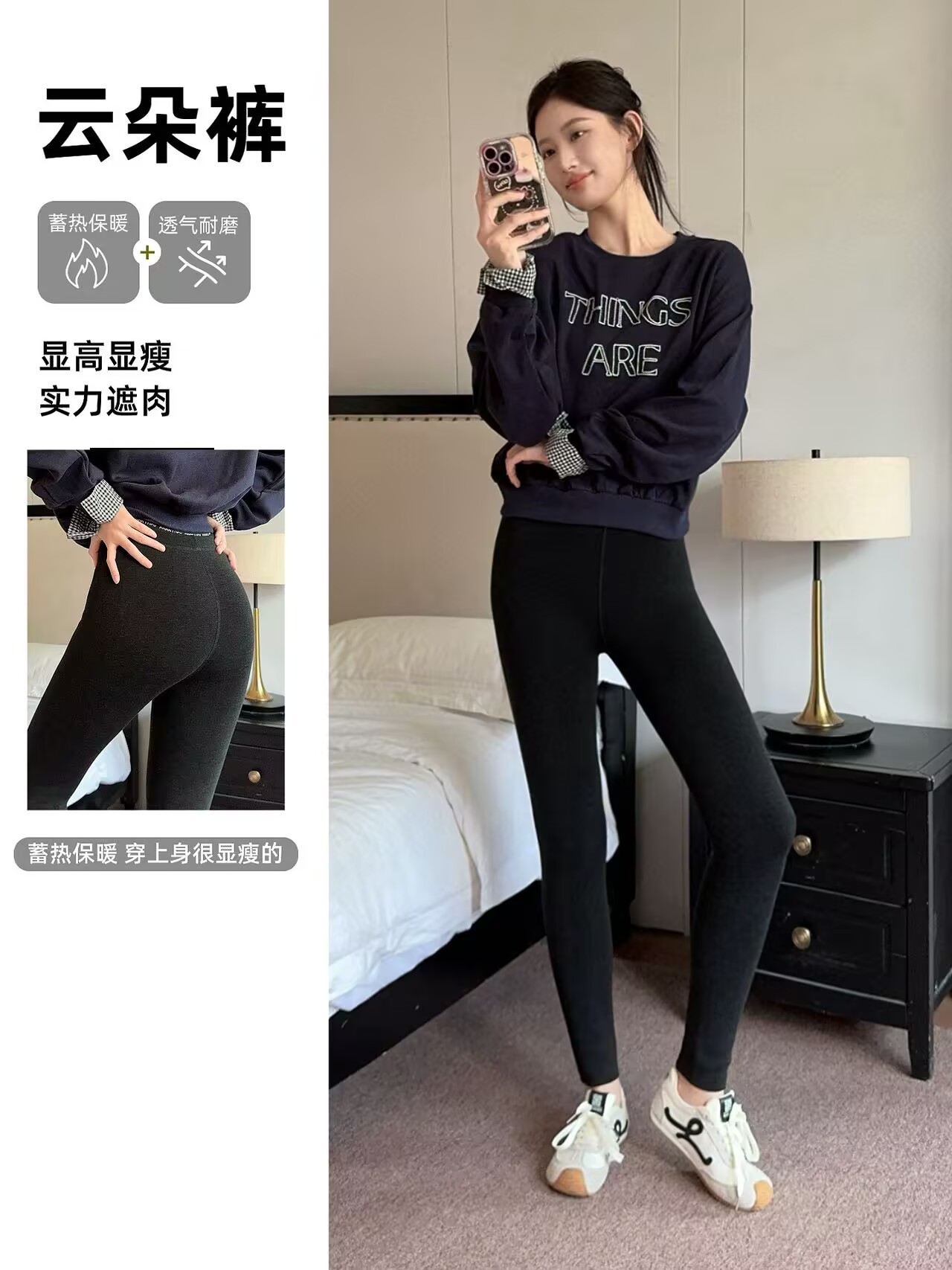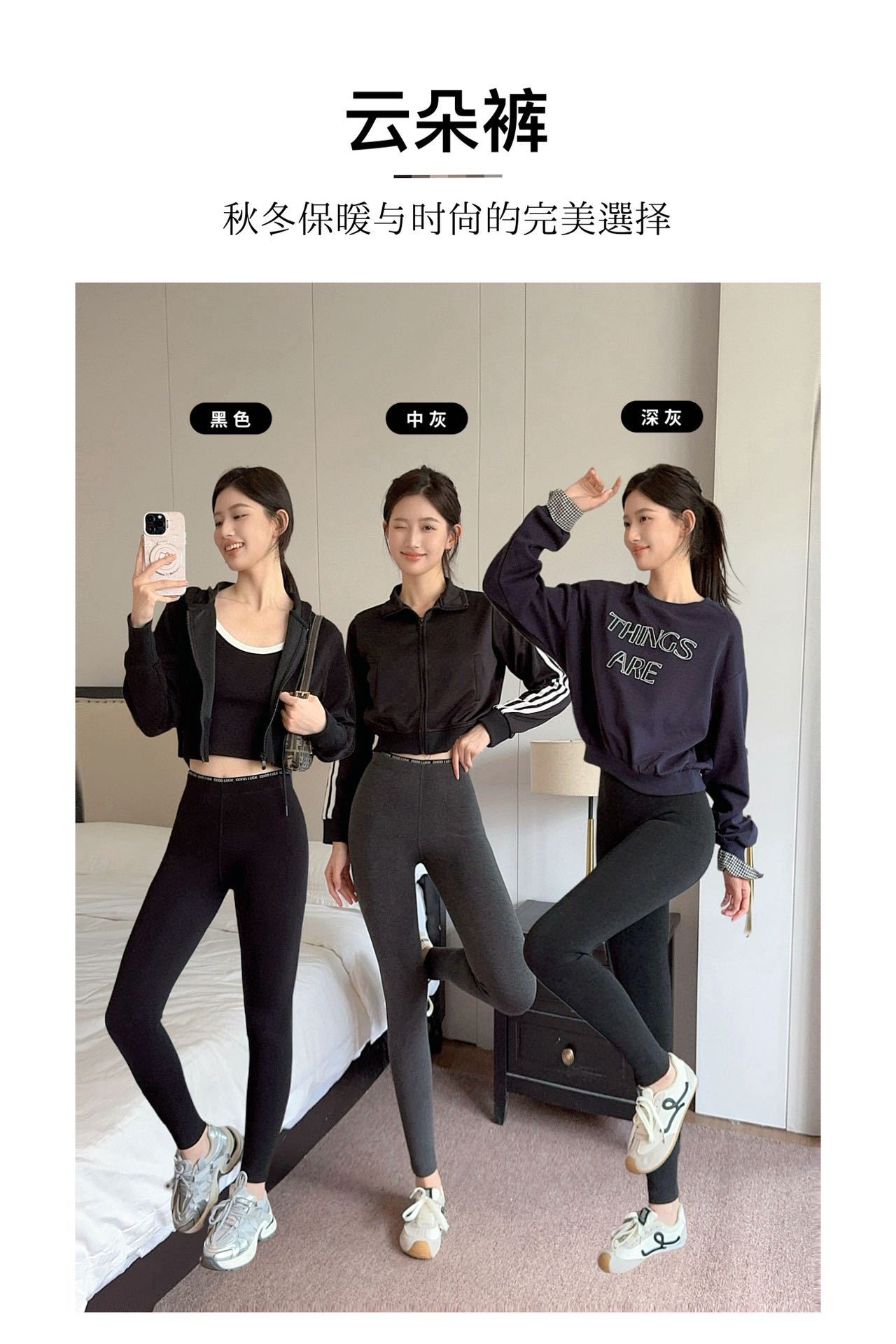 재물운이 좋은 구름바지 하이웨이스트 심리스 기모 안감 보온 레깅스 여성용 가을 겨울 아우터웨어 슬림핏 9부 블랙 팬츠