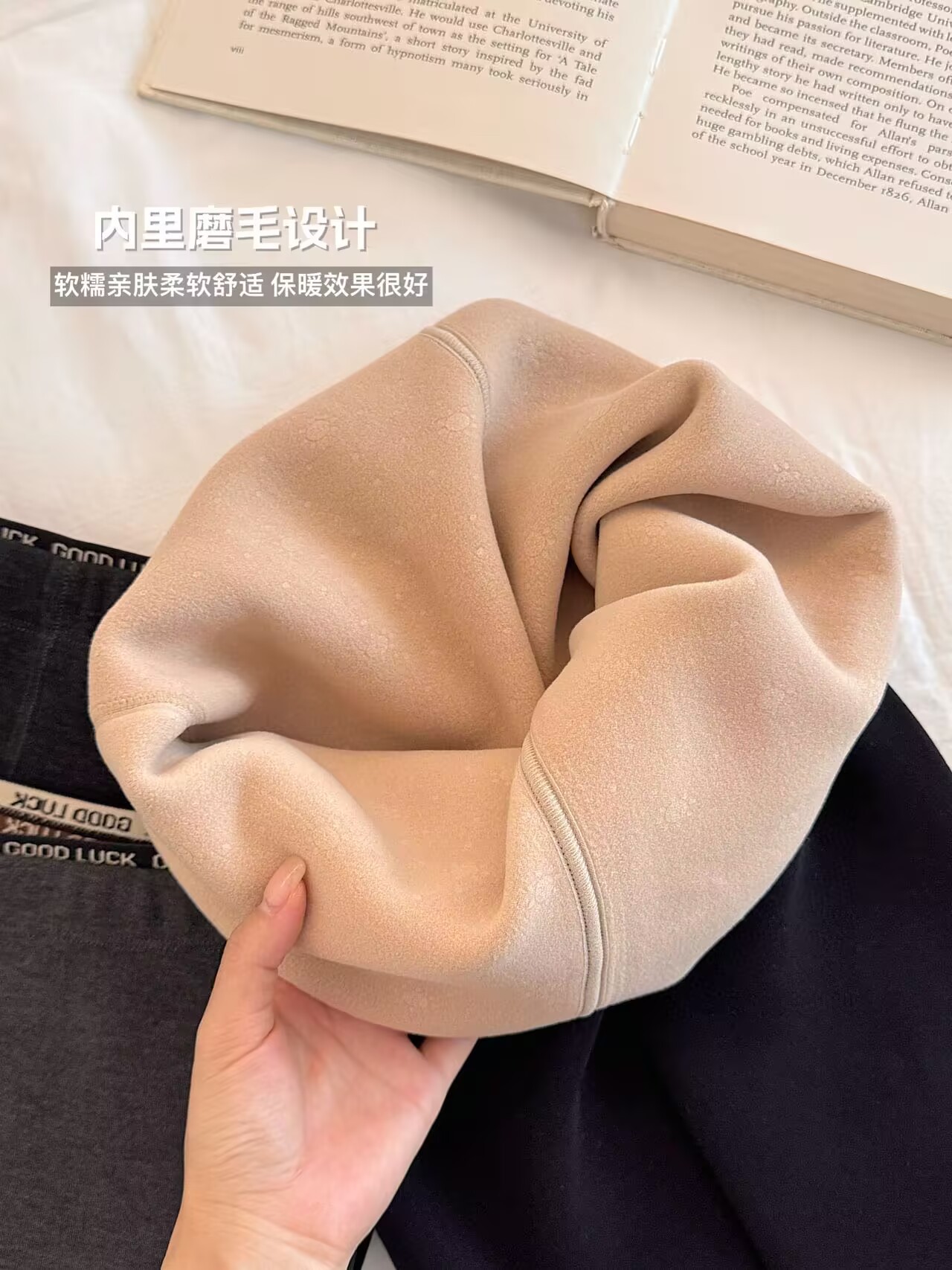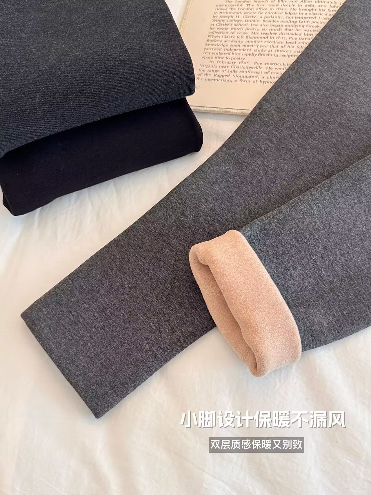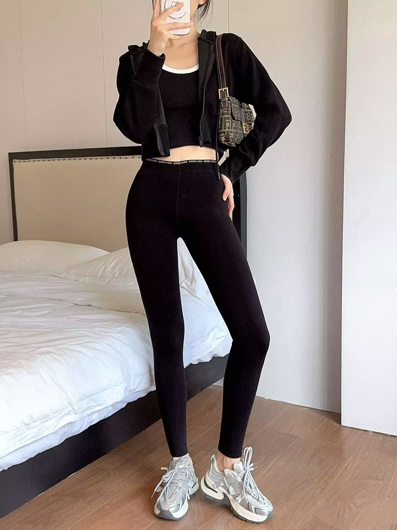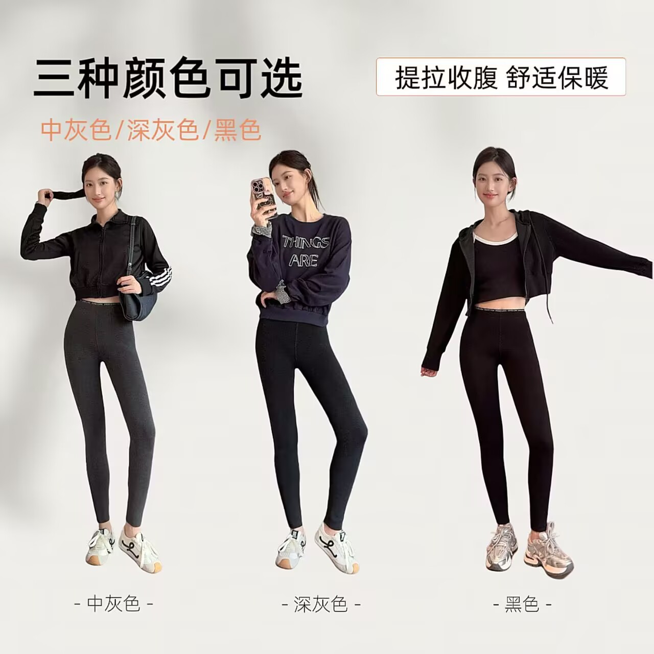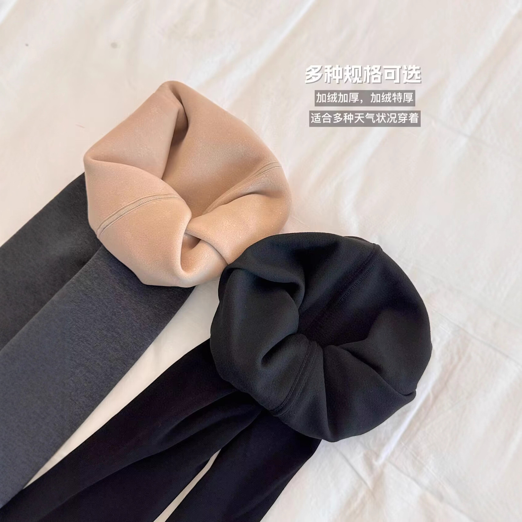 재물운이 좋은 구름바지 하이웨이스트 심리스 기모 안감 보온 레깅스 여성용 가을 겨울 아우터웨어 슬림핏 9부 블랙 팬츠