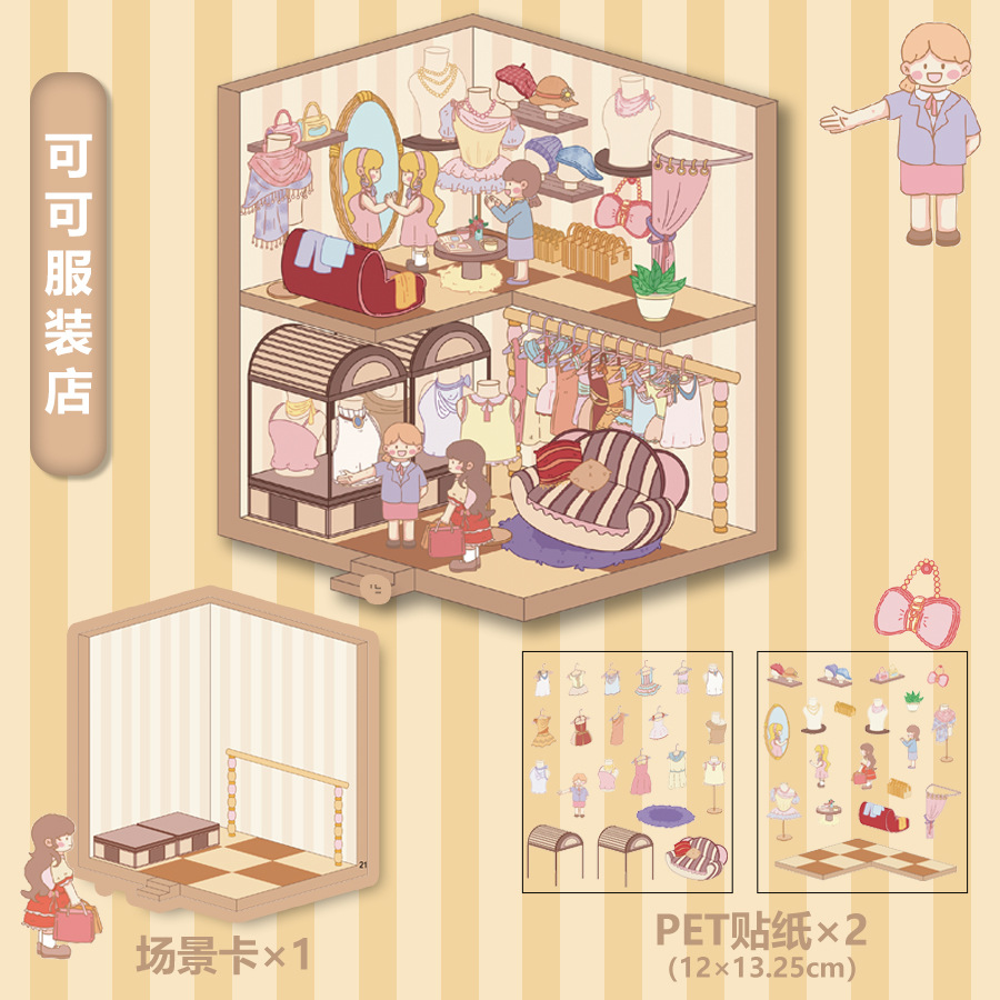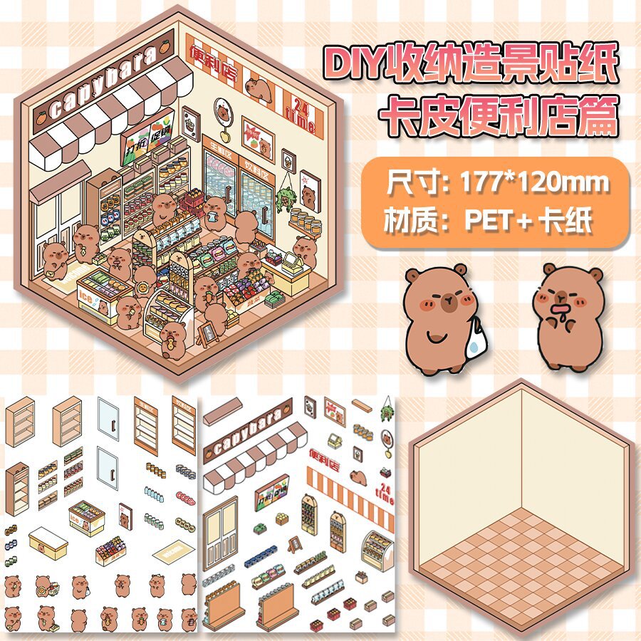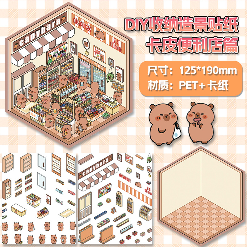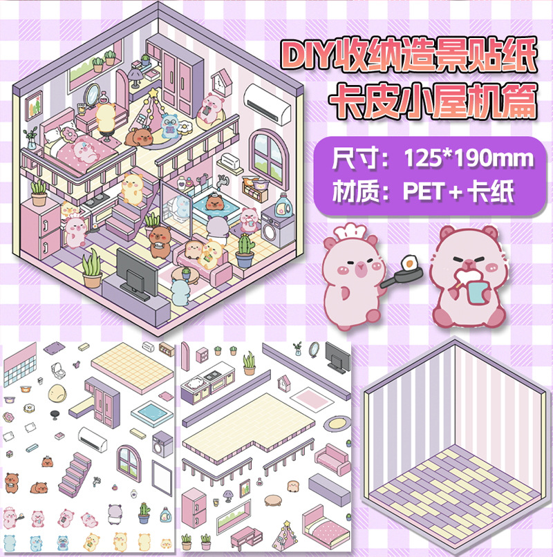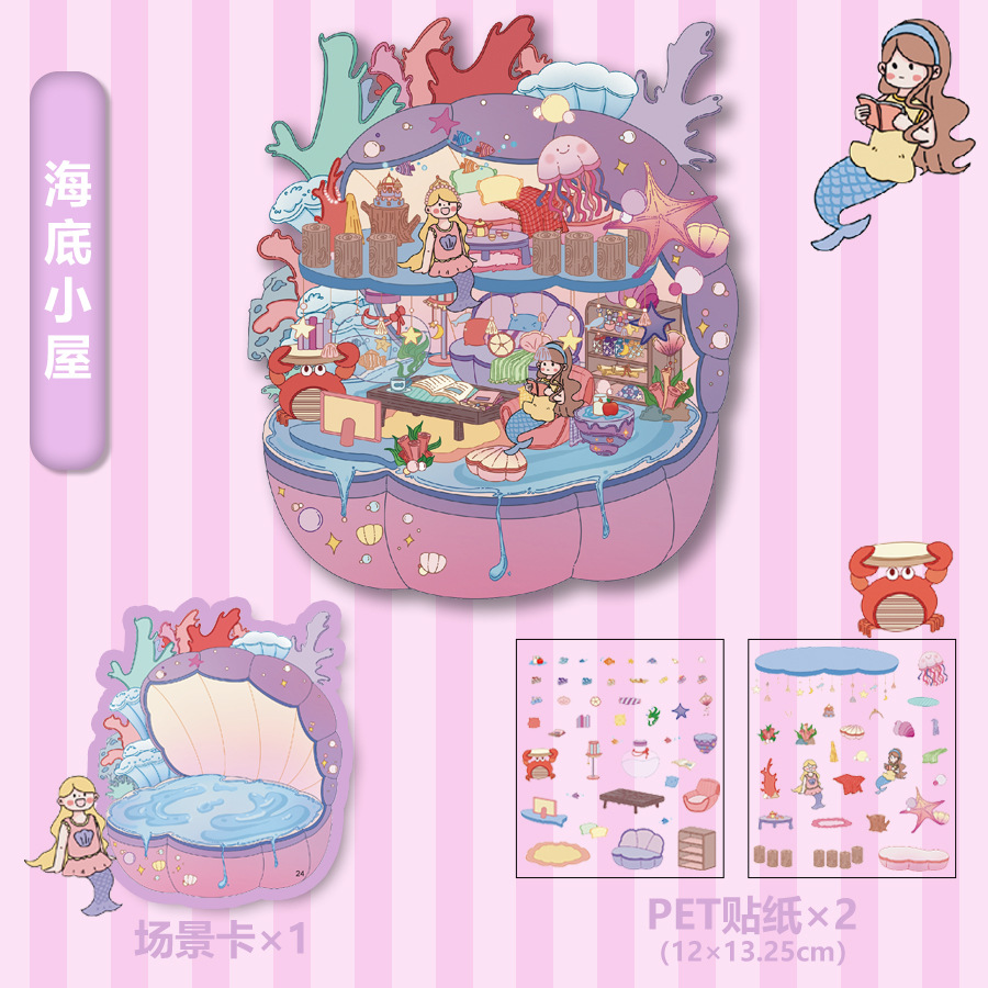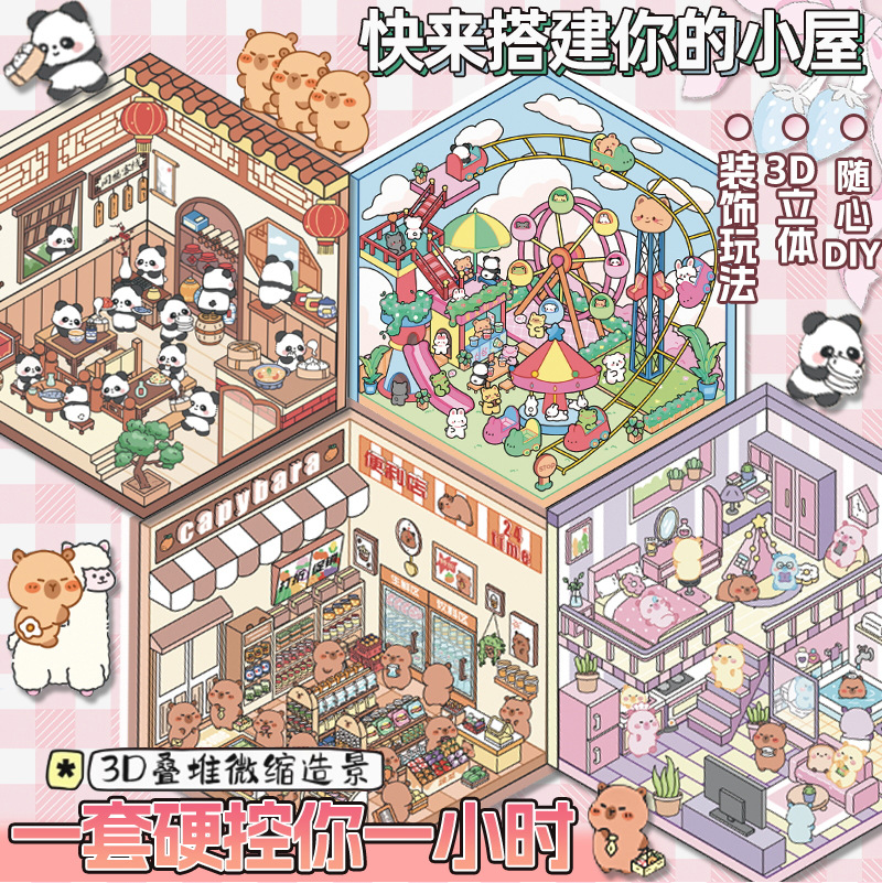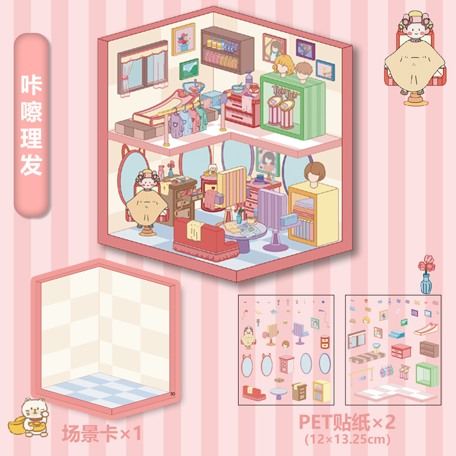 한국 만화 조경 스티커 귀여운 시각적 3D 입체 오두막 작은 빨간 책 감압 조경 장면 손 계정 스티커스토어 가기
