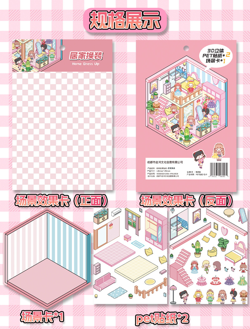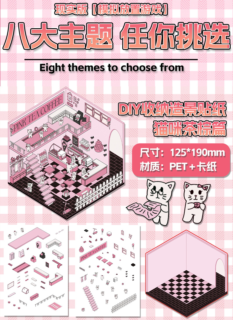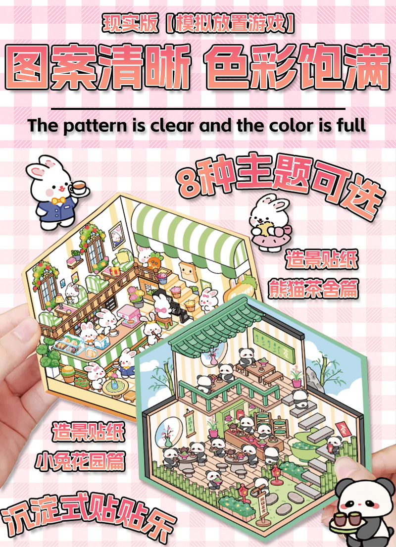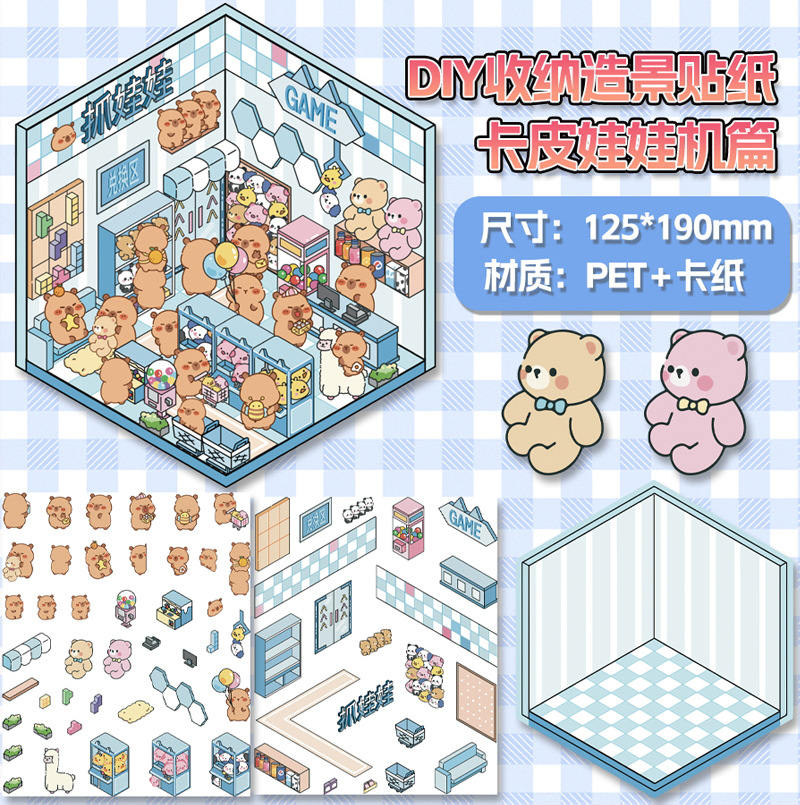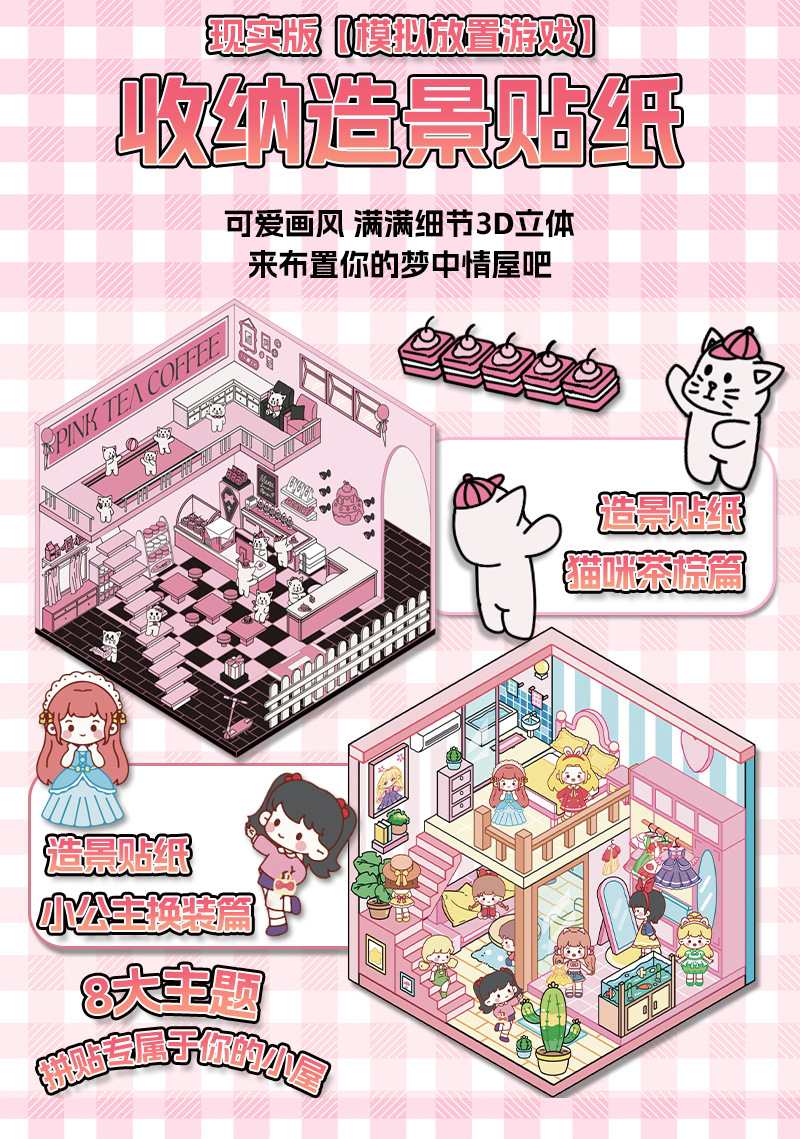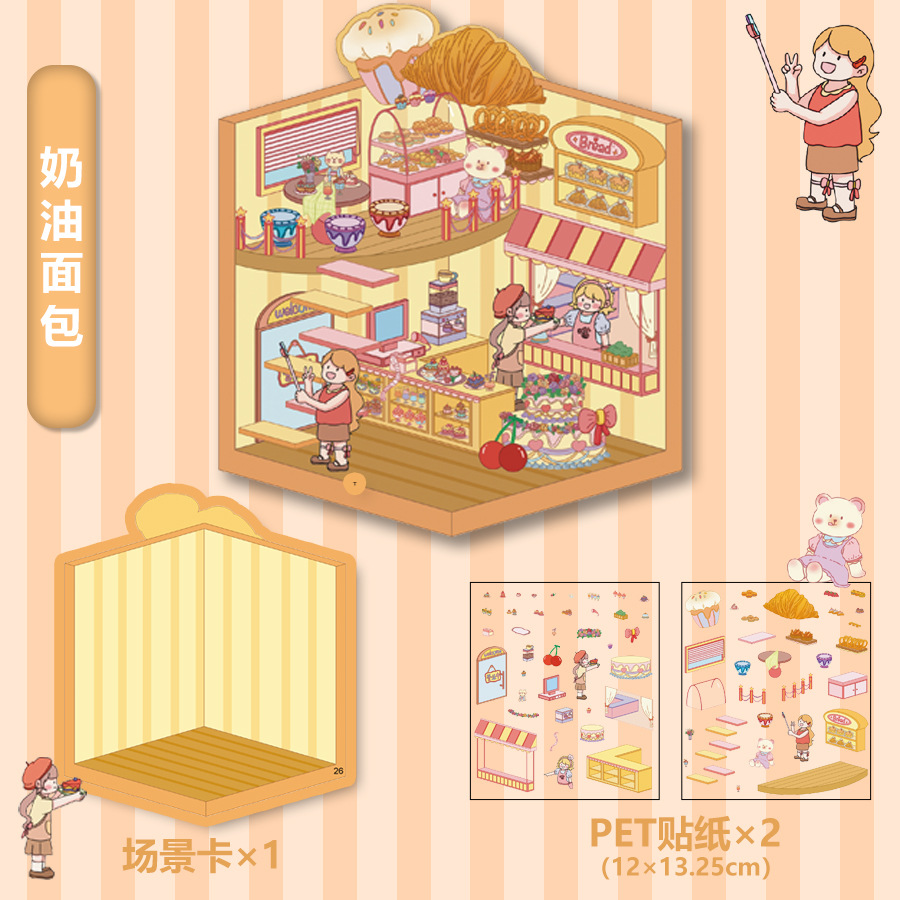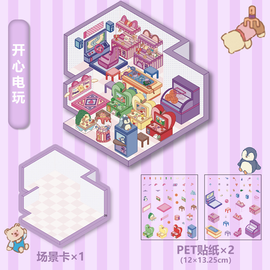 한국 만화 조경 스티커 귀여운 시각적 3D 입체 오두막 작은 빨간 책 감압 조경 장면 손 계정 스티커스토어 가기