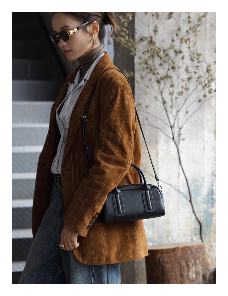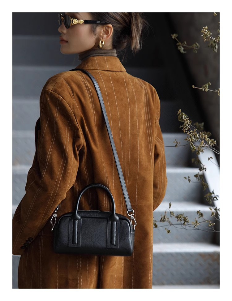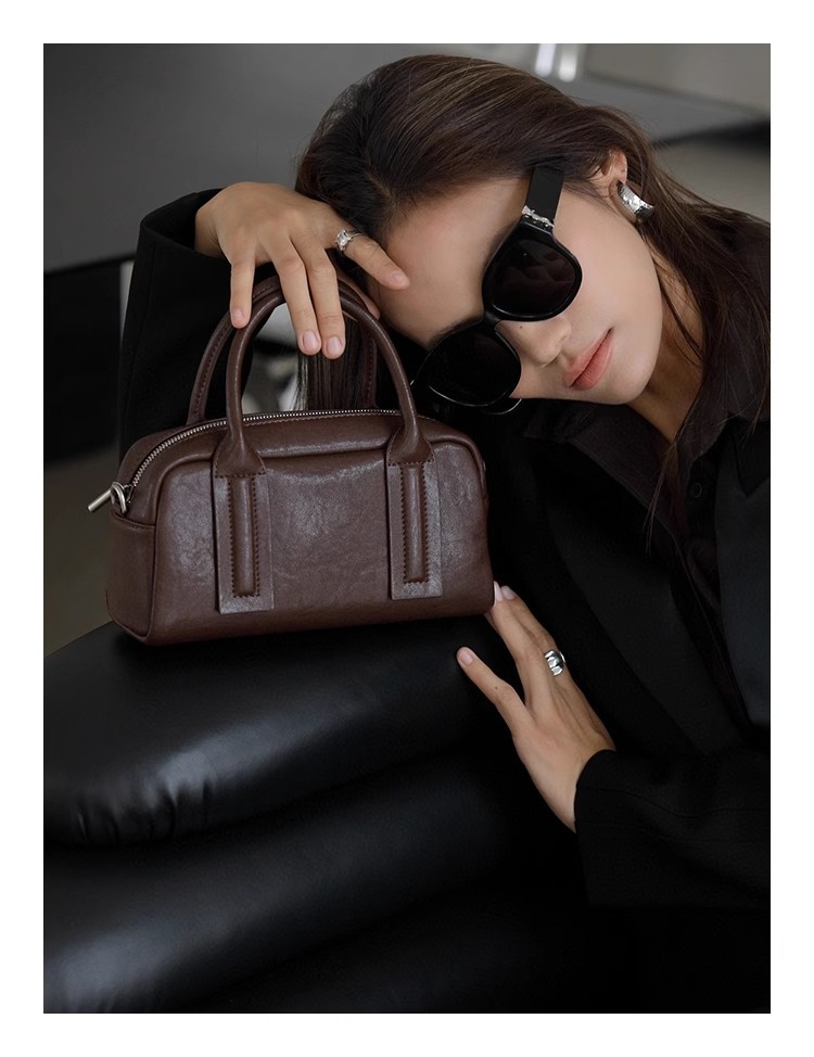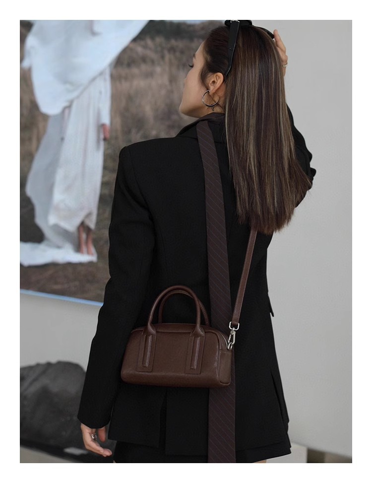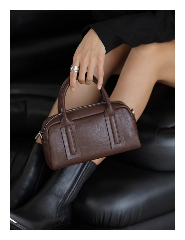 가방 여성용 크로스 바디 정품 가죽 핸드백 식물성 소가죽 복고풍 보스턴 백 볼링 백 숄더백