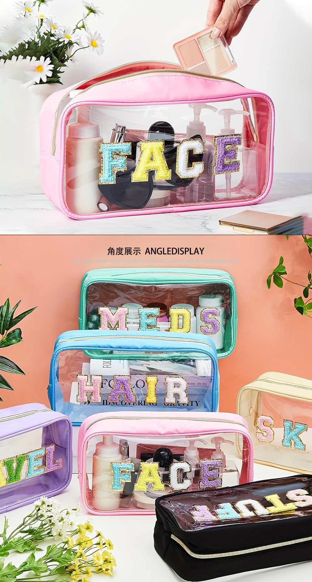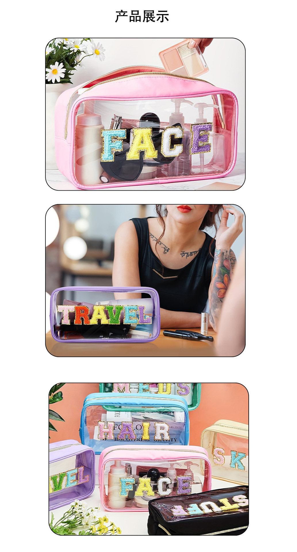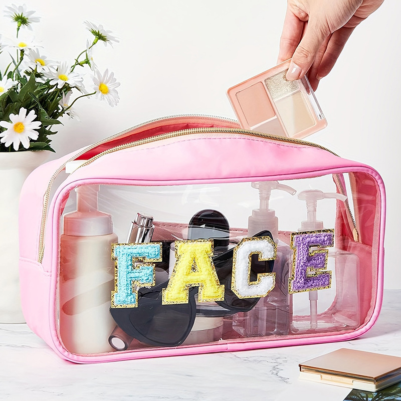 아마존 크로스 국경 자수 편지 투명 화장품 가방 PVC 화장실 가방 대용량 휴대용 여행 보관 가방
