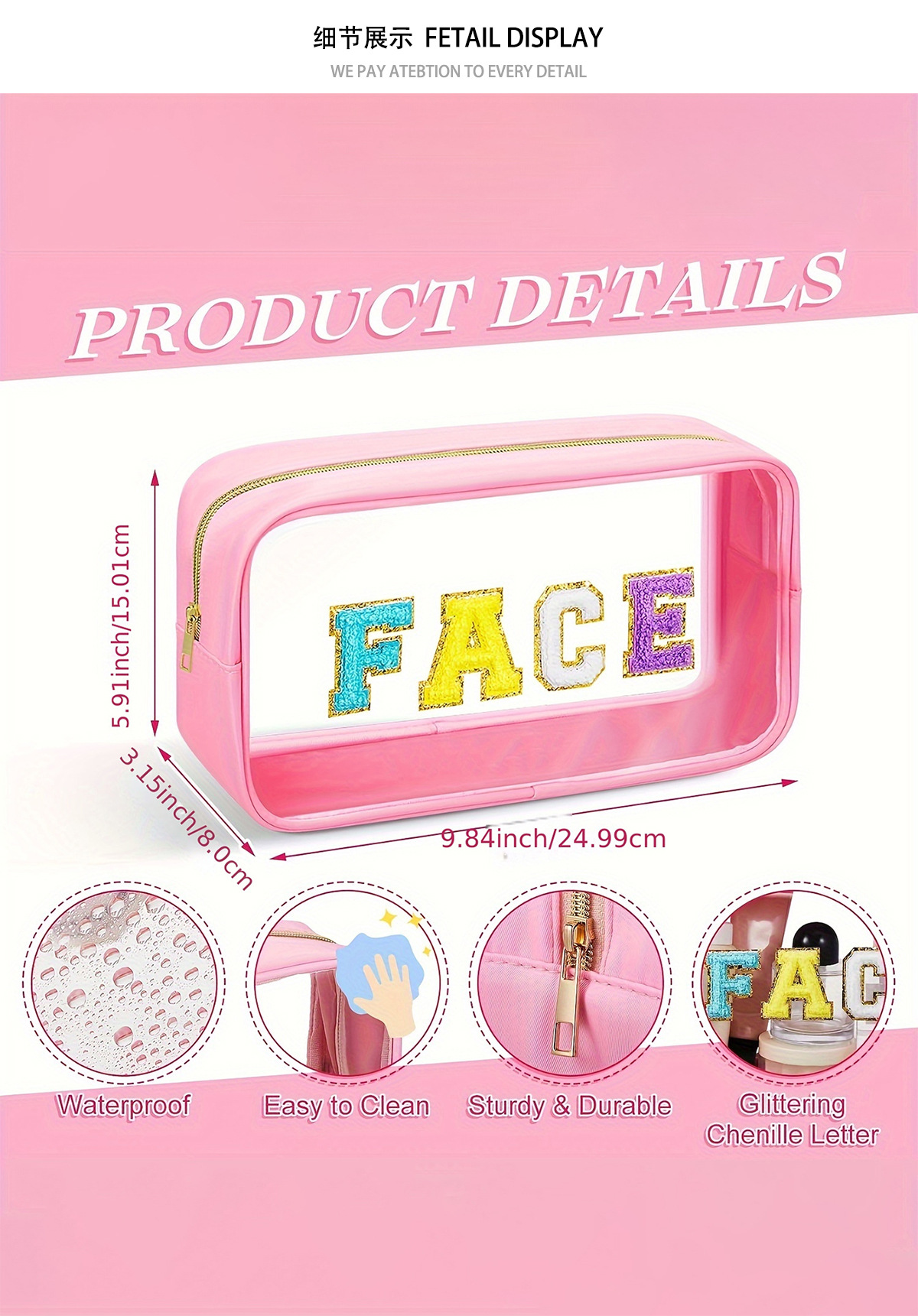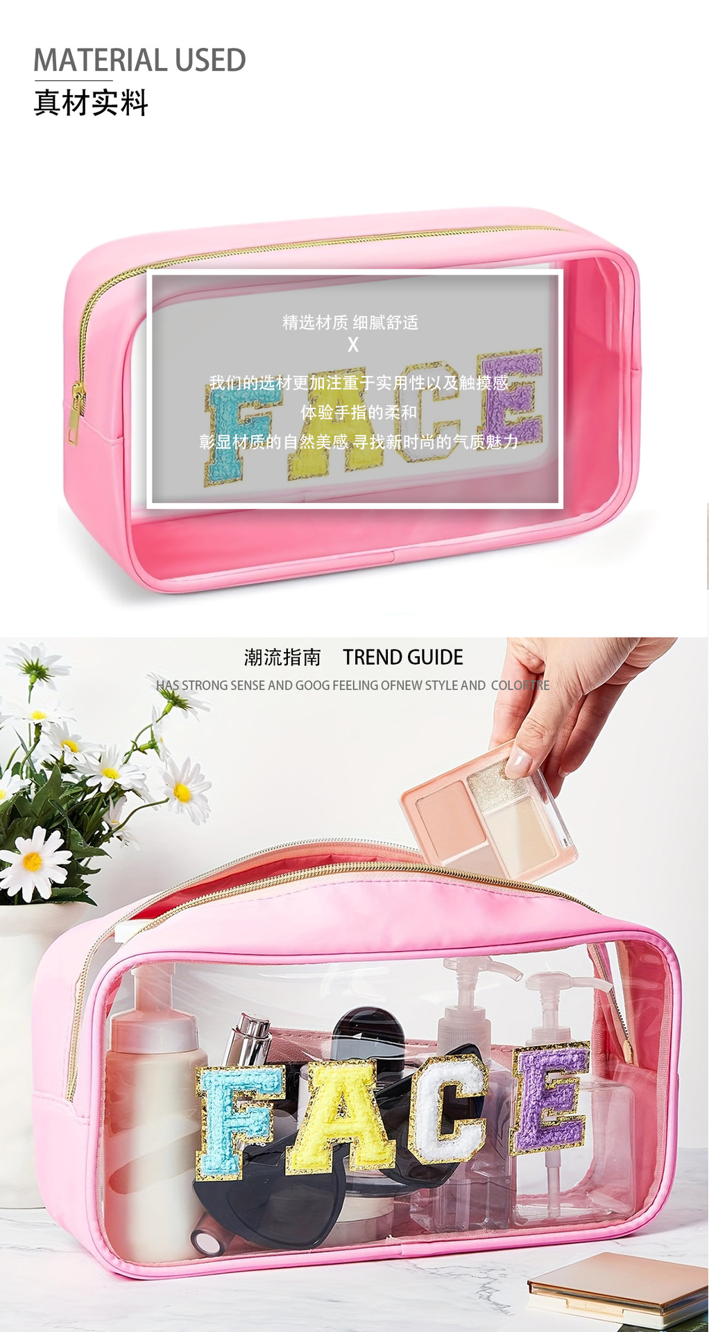 아마존 크로스 국경 자수 편지 투명 화장품 가방 PVC 화장실 가방 대용량 휴대용 여행 보관 가방스토어 가기