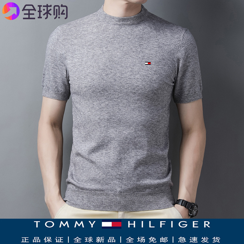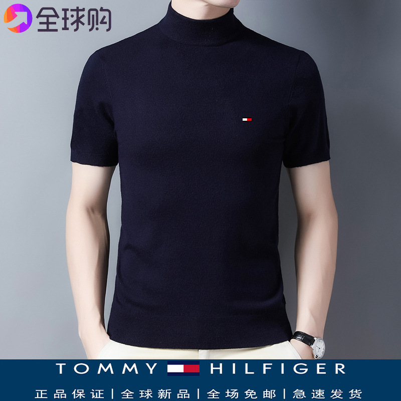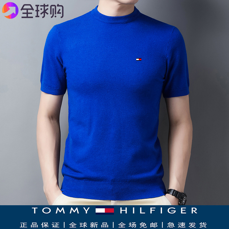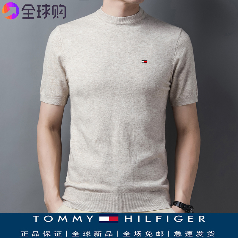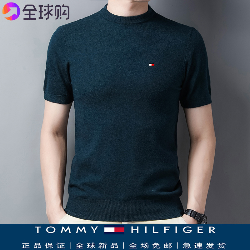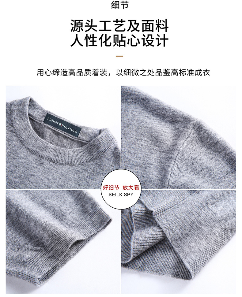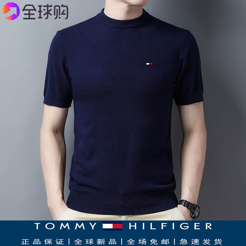 정품 아메리칸 토미 반팔 티셔츠 남성용 젊고 중년 가을과 겨울 캐주얼 크루 넥 니트 스웨터베이스 셔츠 트렌디스토어 가기