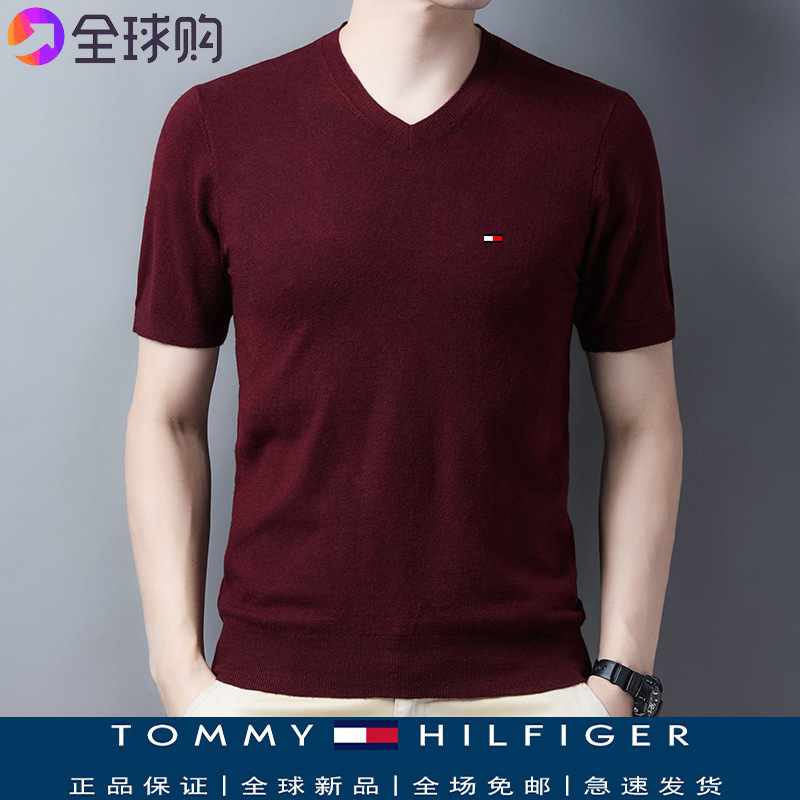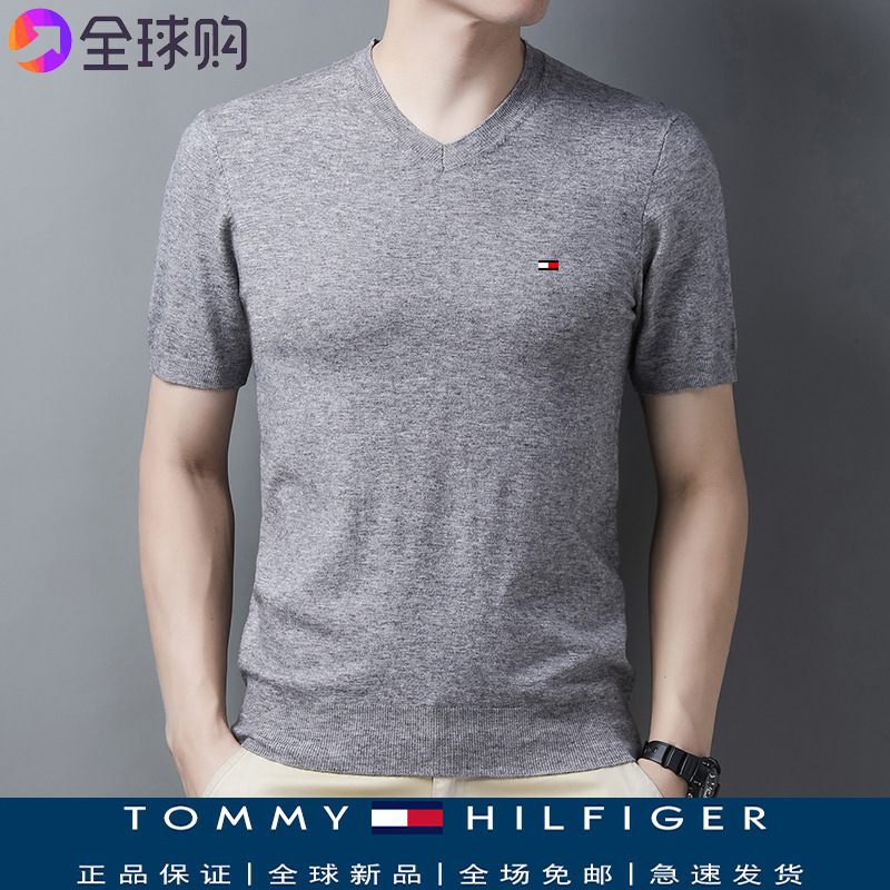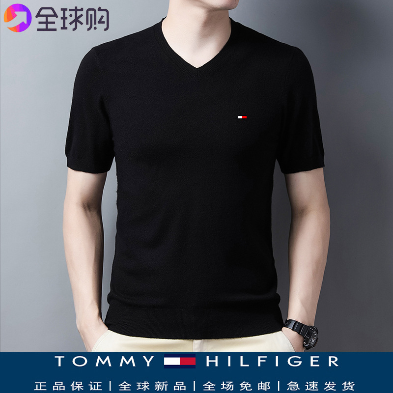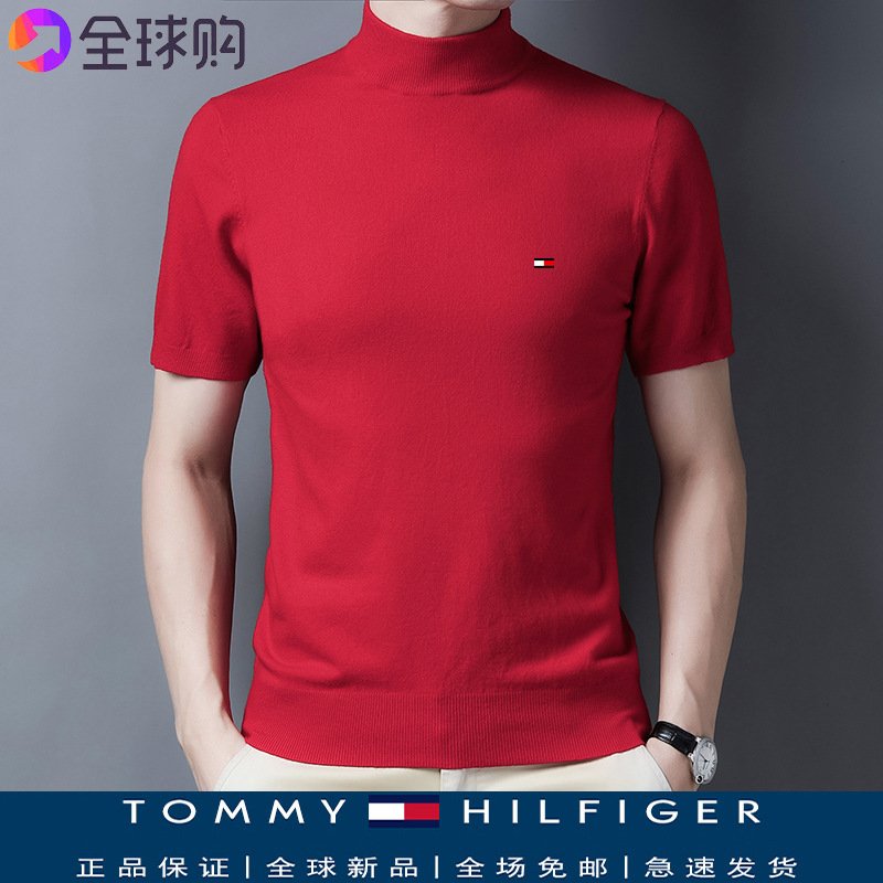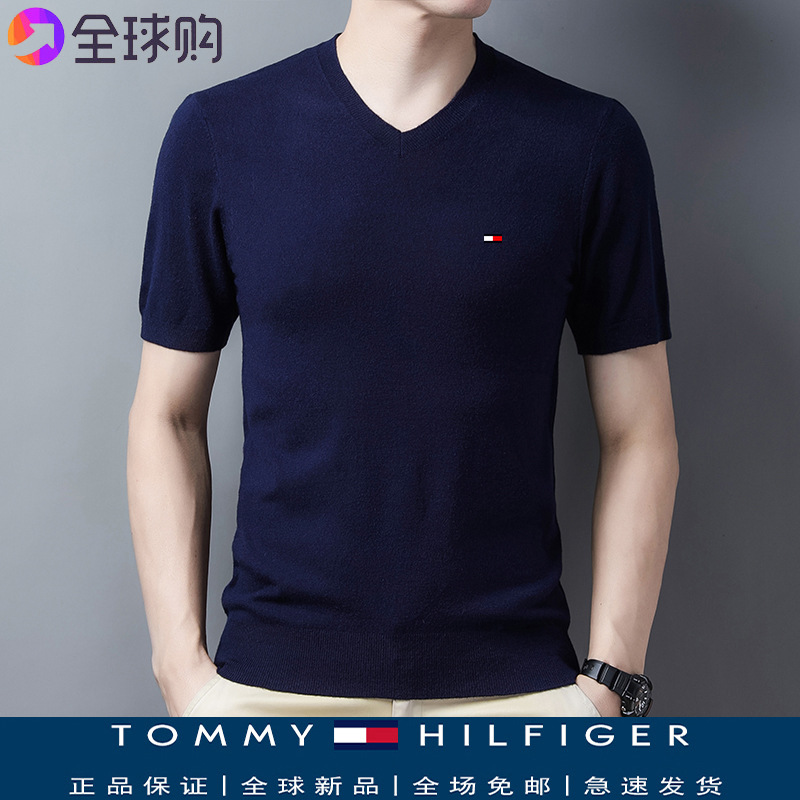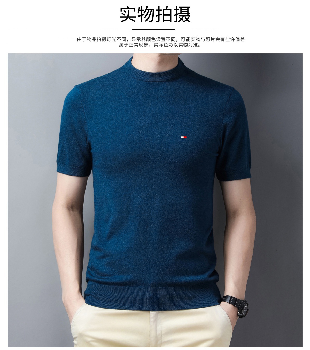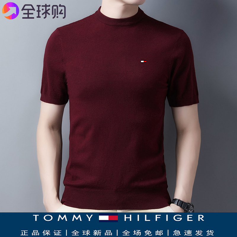 정품 아메리칸 토미 반팔 티셔츠 남성용 젊고 중년 가을과 겨울 캐주얼 크루 넥 니트 스웨터베이스 셔츠 트렌디스토어 가기