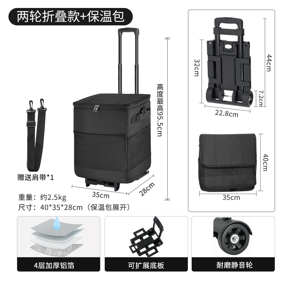 접이식 트롤리 열 보존 쇼핑 카트 조용한 방수 열 보존 가방 대용량 캠핑 저장 트롤리스토어 가기