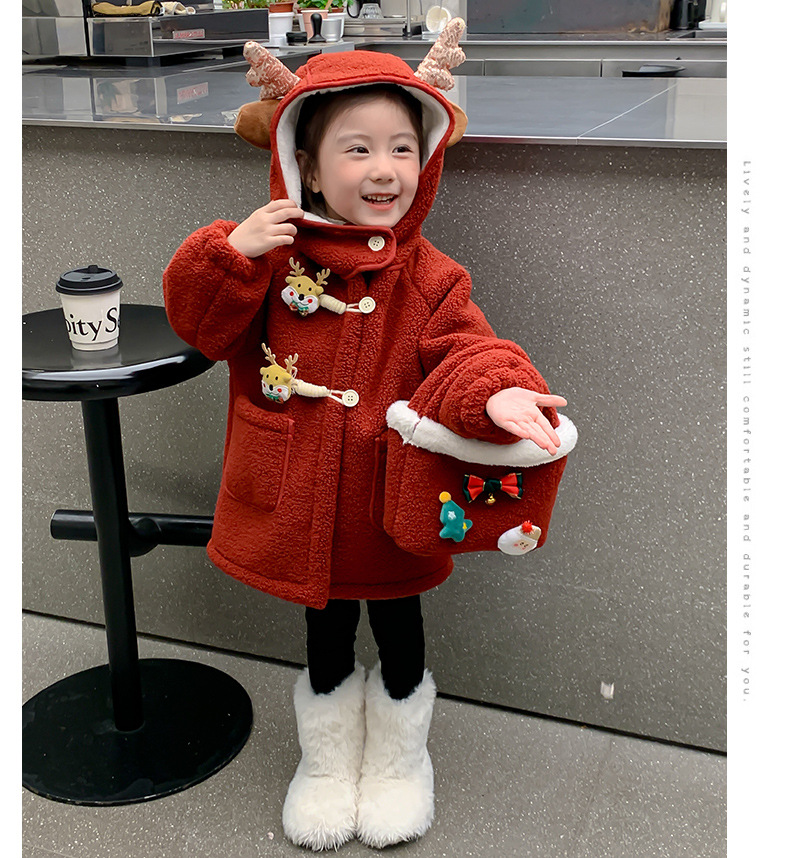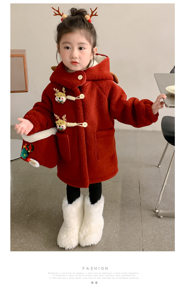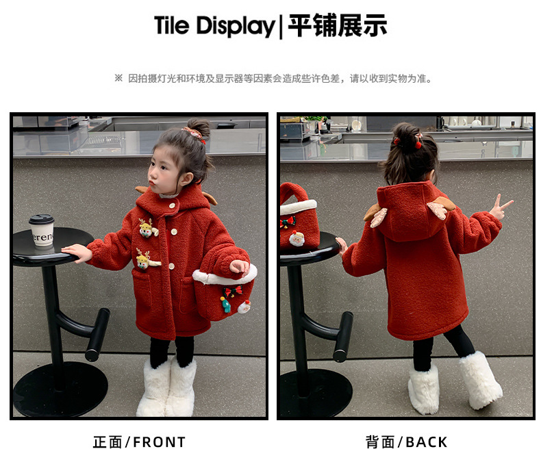 소녀의 코트 가을과 겨울 2024 새로운 스타일 아기 소녀의 겨울 코트 서양식 어린이 겨울 코트 양고기 양모 스웨터스토어 가기