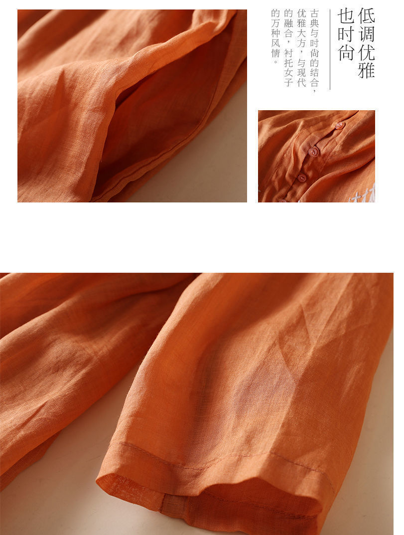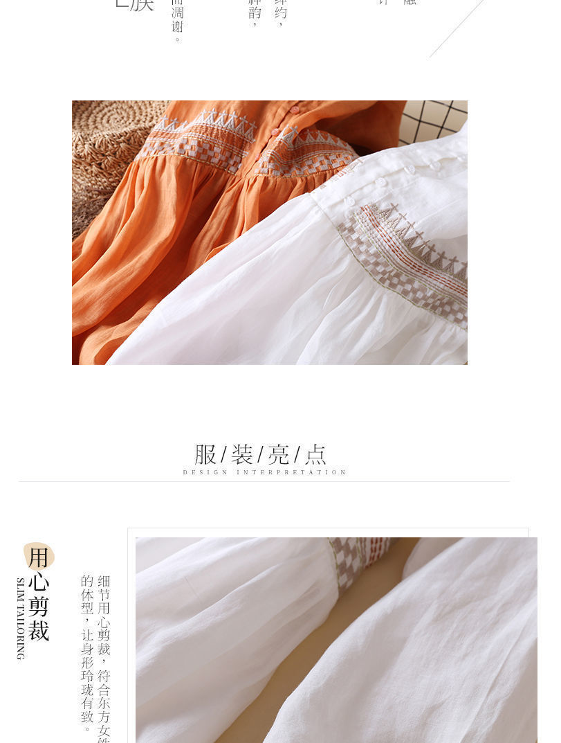 2024 면 및 리넨 민족 자수 자수 원피스 예술적 기질 둥근 목 9 점 소매 중간 길이 스커트스토어 가기