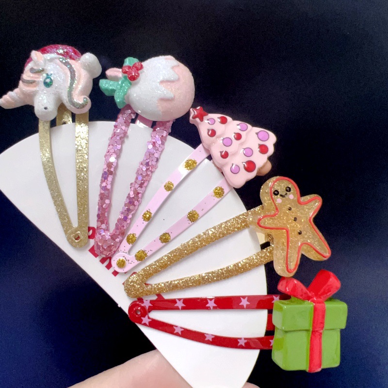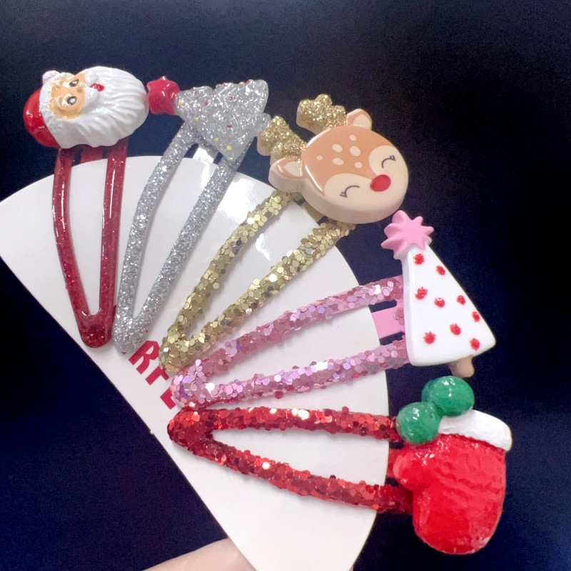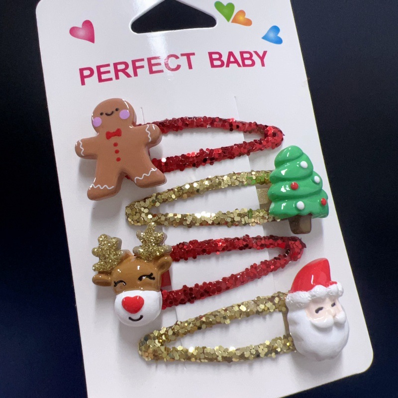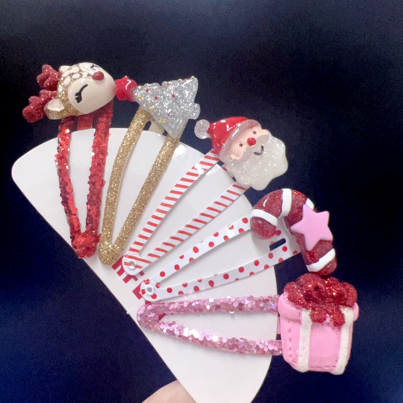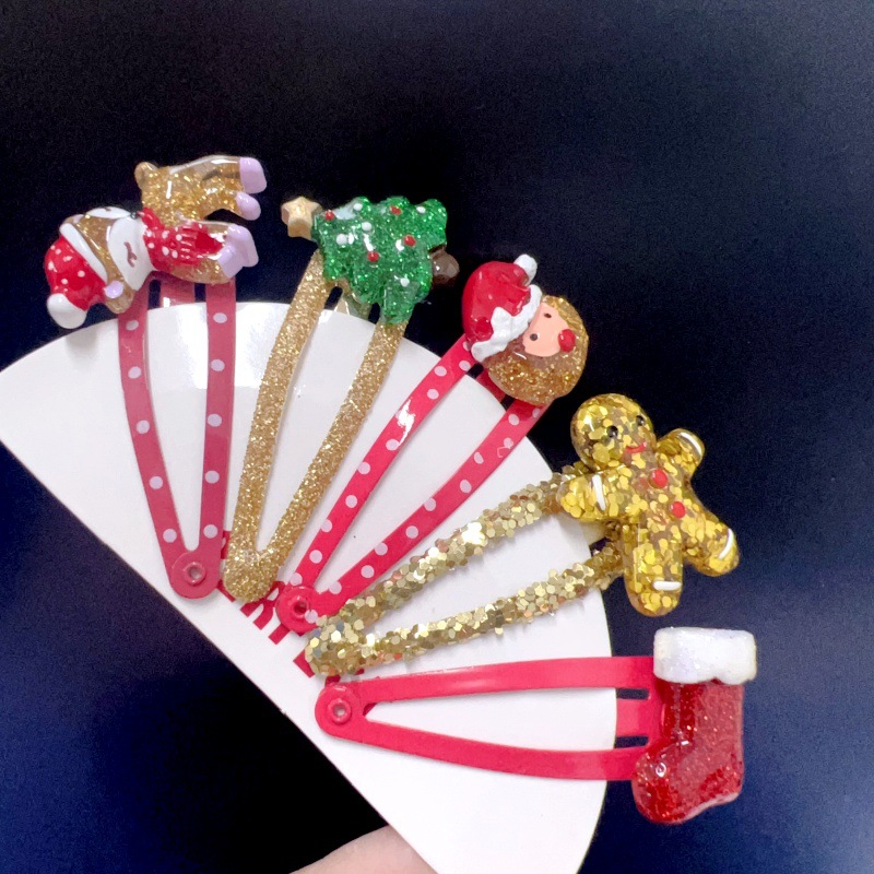 귀여운 크리스마스 장식 만화 노인 헤어핀 선물 사이드 클립 헤어 쥬얼리 헤드웨어 소녀 크리스마스 트리 헤어핀스토어 가기