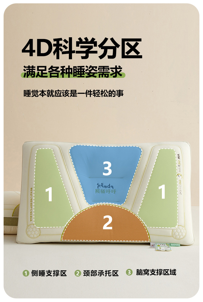 귀엽고 부드러운 팬더 수면베개, 경추 보호 및 수면에 도움을 주는 베개심, 가정 및 학생 기숙사용, 중간층 포함스토어 가기