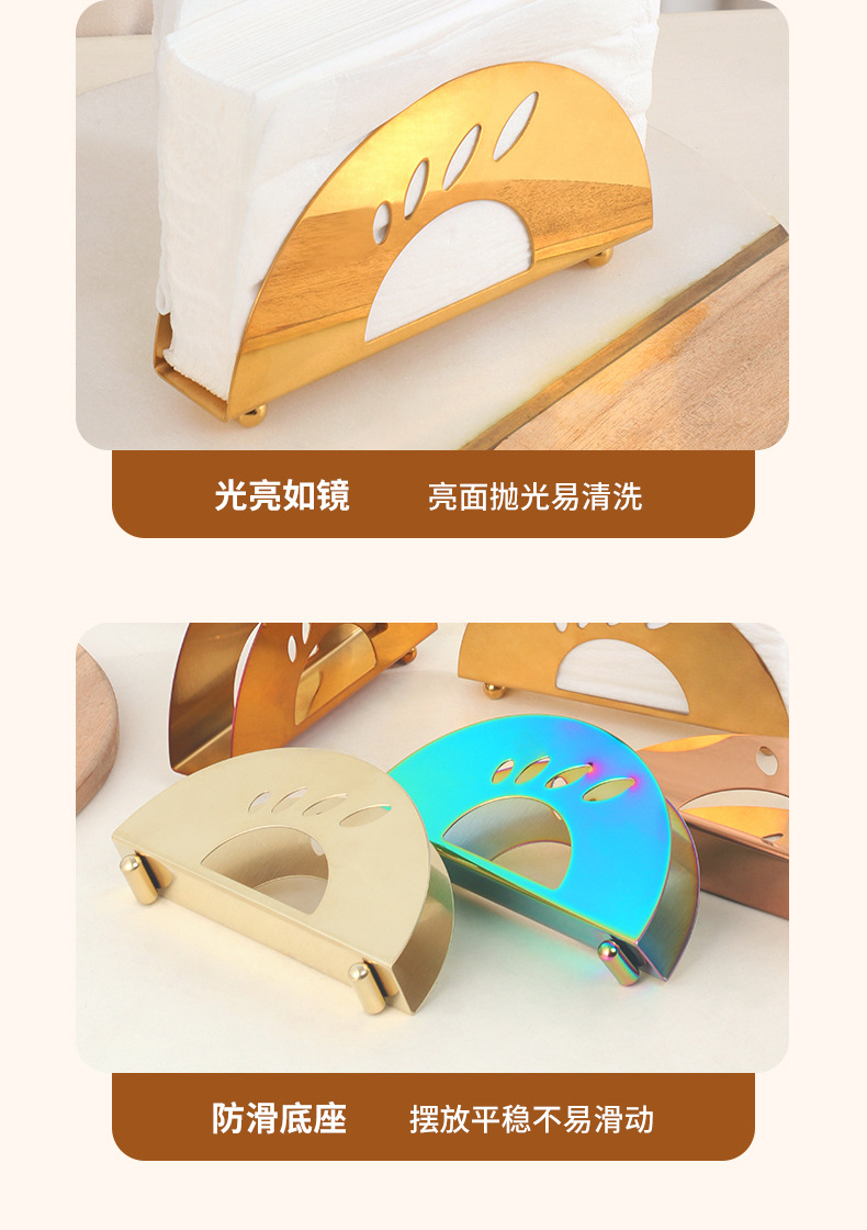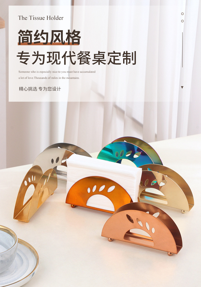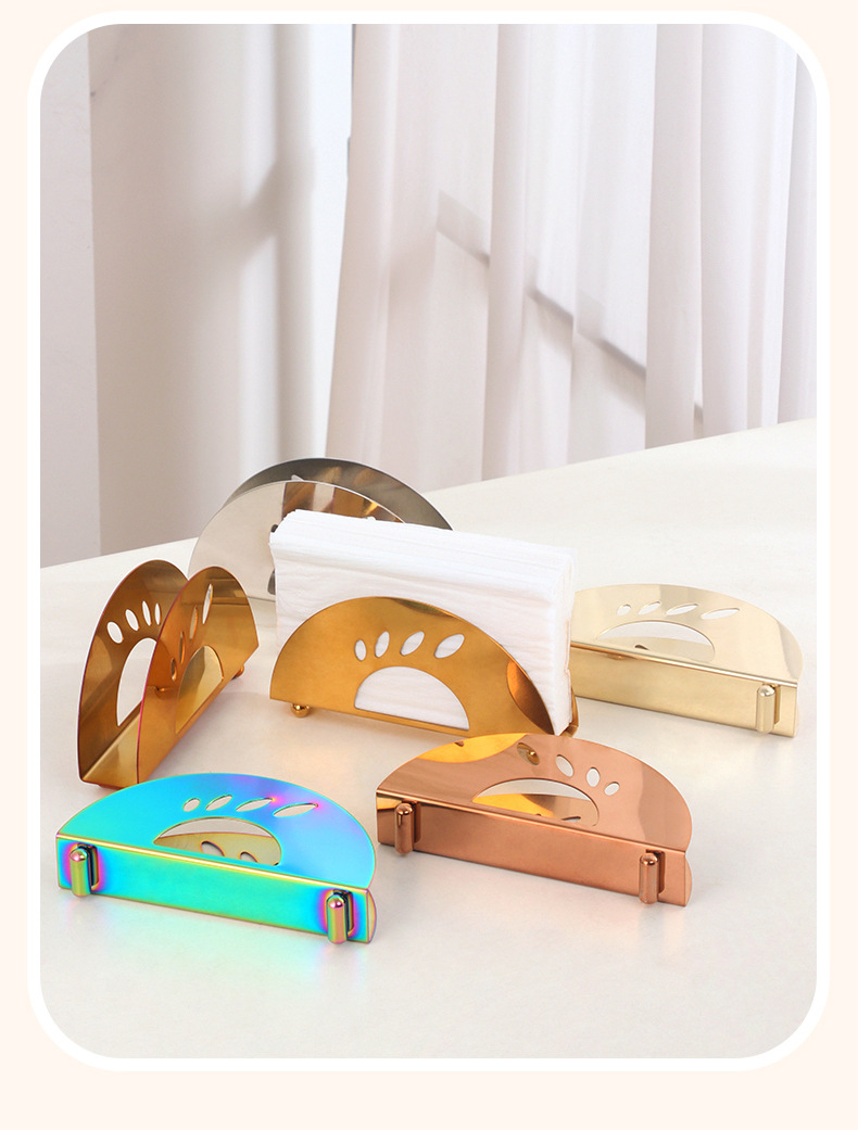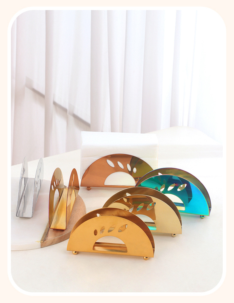 스테인레스 스틸 다공성 반원형 티슈 홀더 크리에이티브 호텔 레스토랑 카페 종이 클립 가정용 스퀘어 타월 보관 조직 홀더