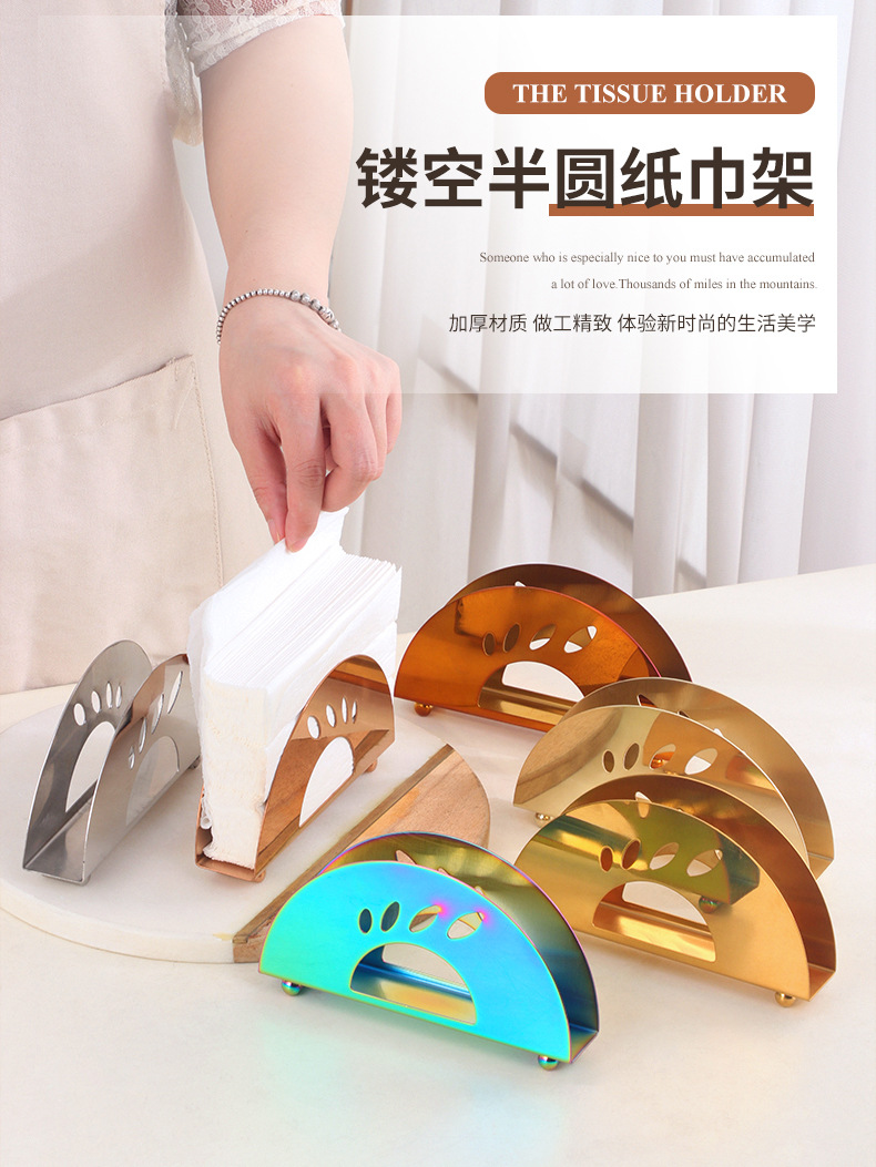 스테인레스 스틸 다공성 반원형 티슈 홀더 크리에이티브 호텔 레스토랑 카페 종이 클립 가정용 스퀘어 타월 보관 조직 홀더스토어 가기