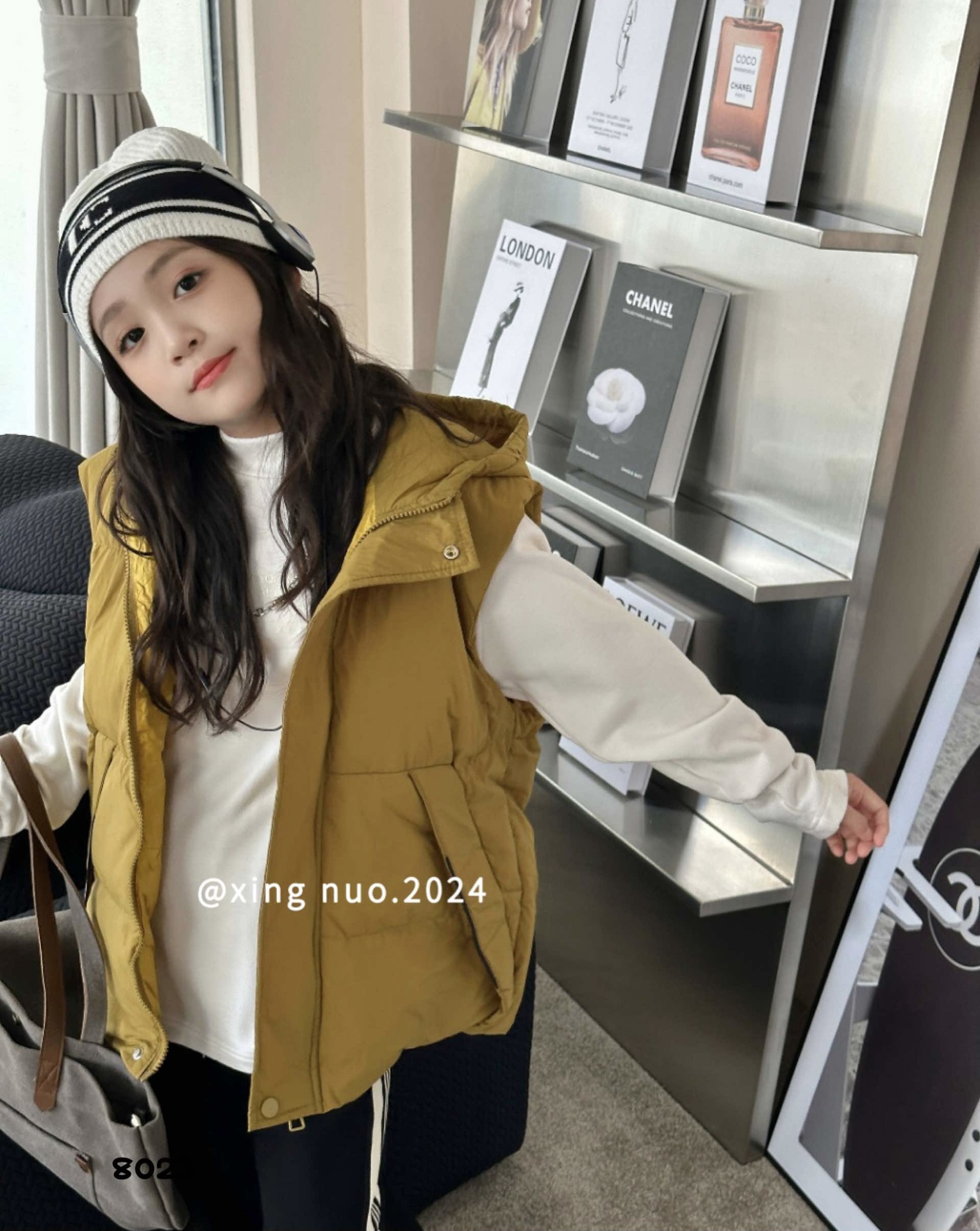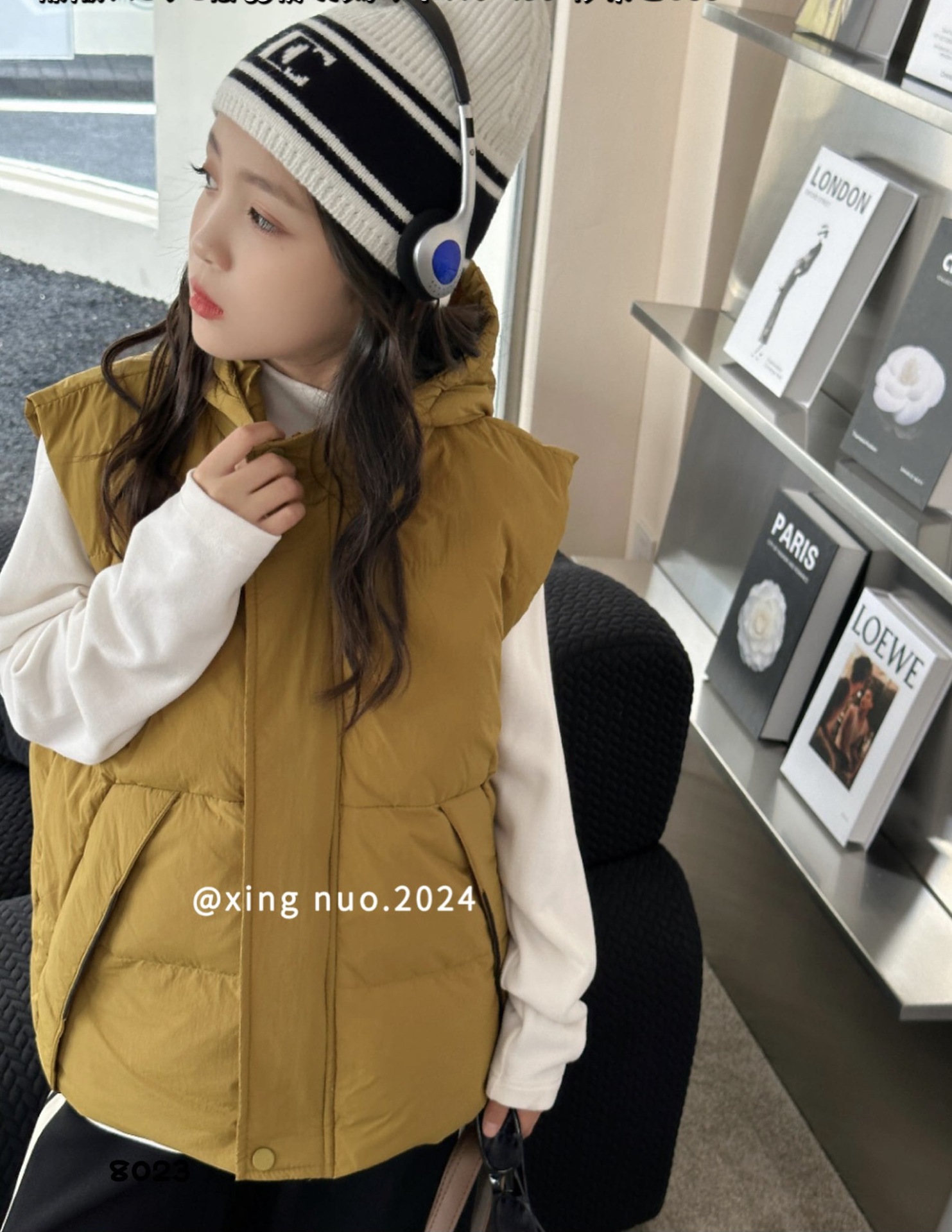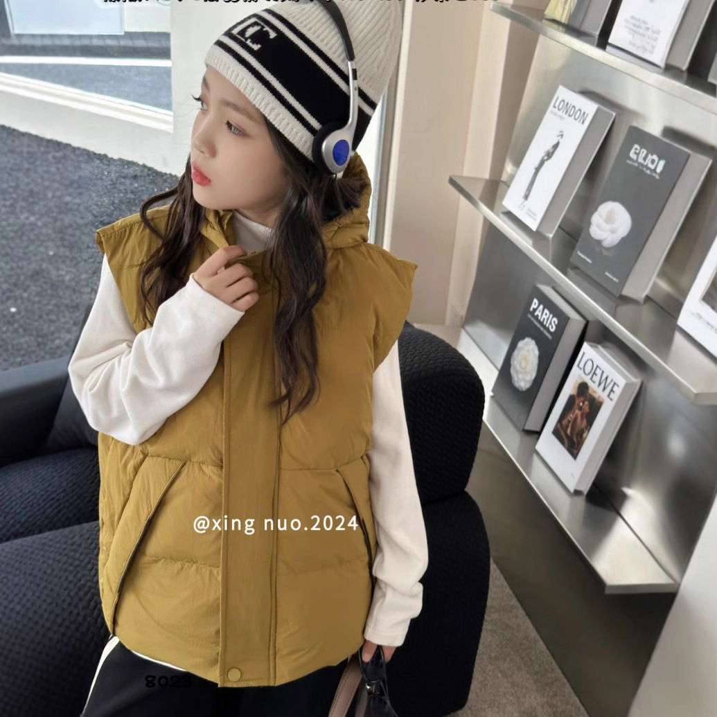 【8023】여아 사이즈 110-130 중대형 아동용 후드 다운 조끼