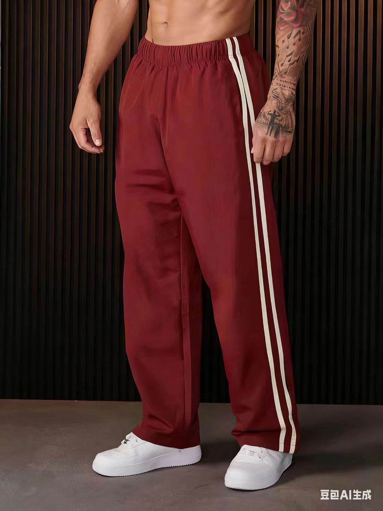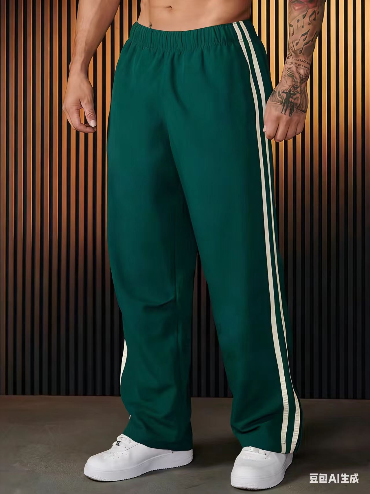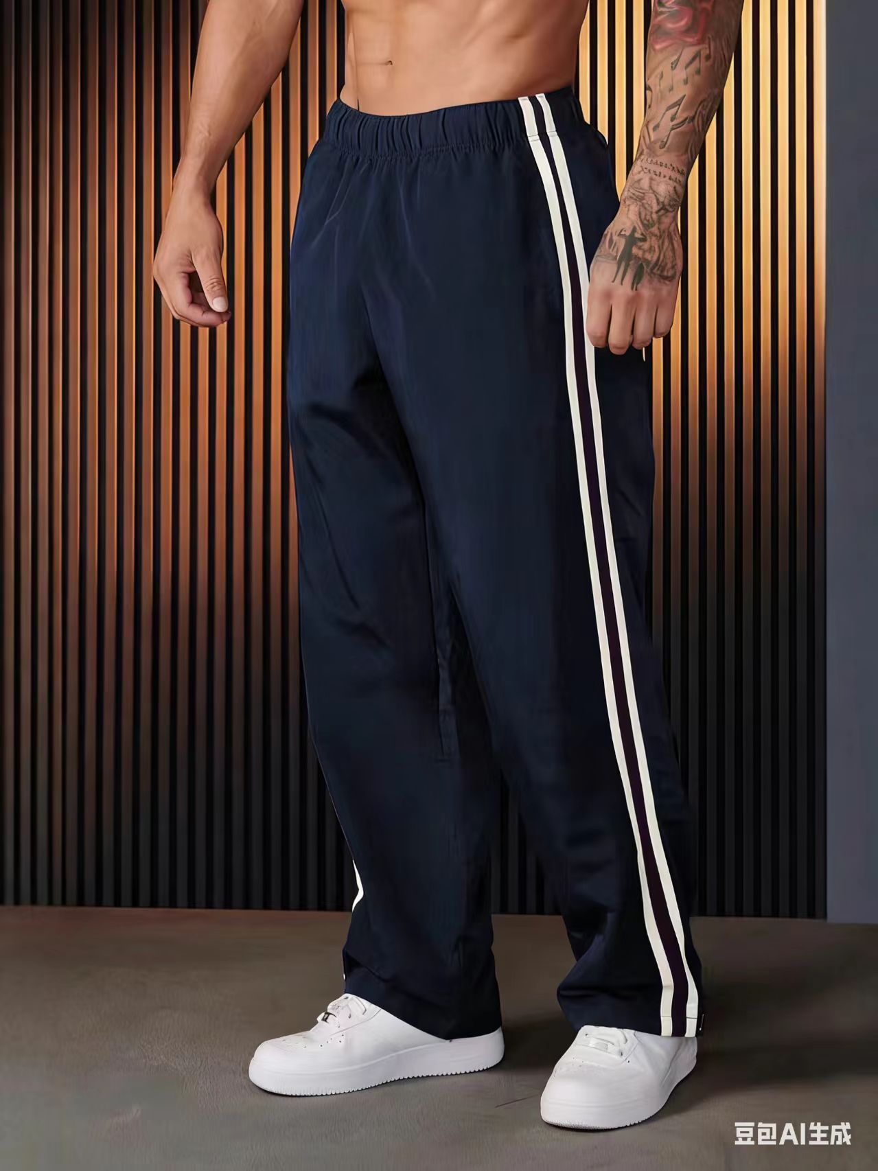 YOUNGLA 남자 스포츠 바지 더블 패치 워크 인쇄 캐주얼 바지 체육관 스포츠 피트니스 중간 허리 스트레이트 바지