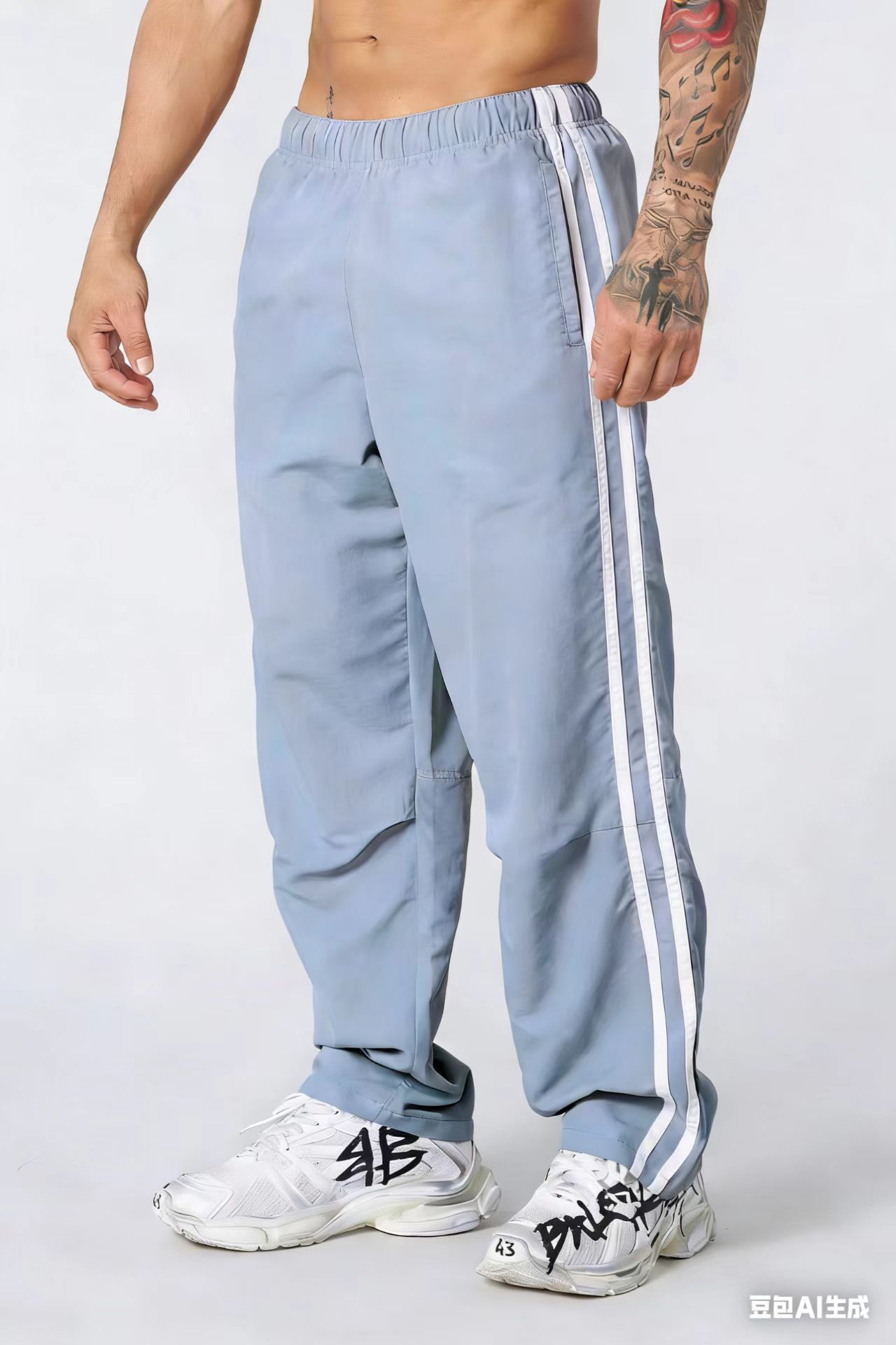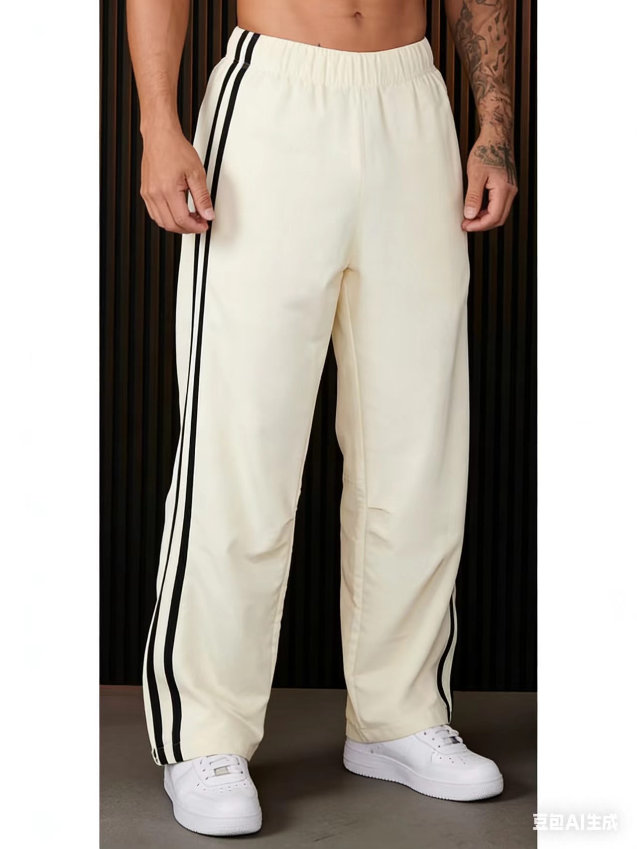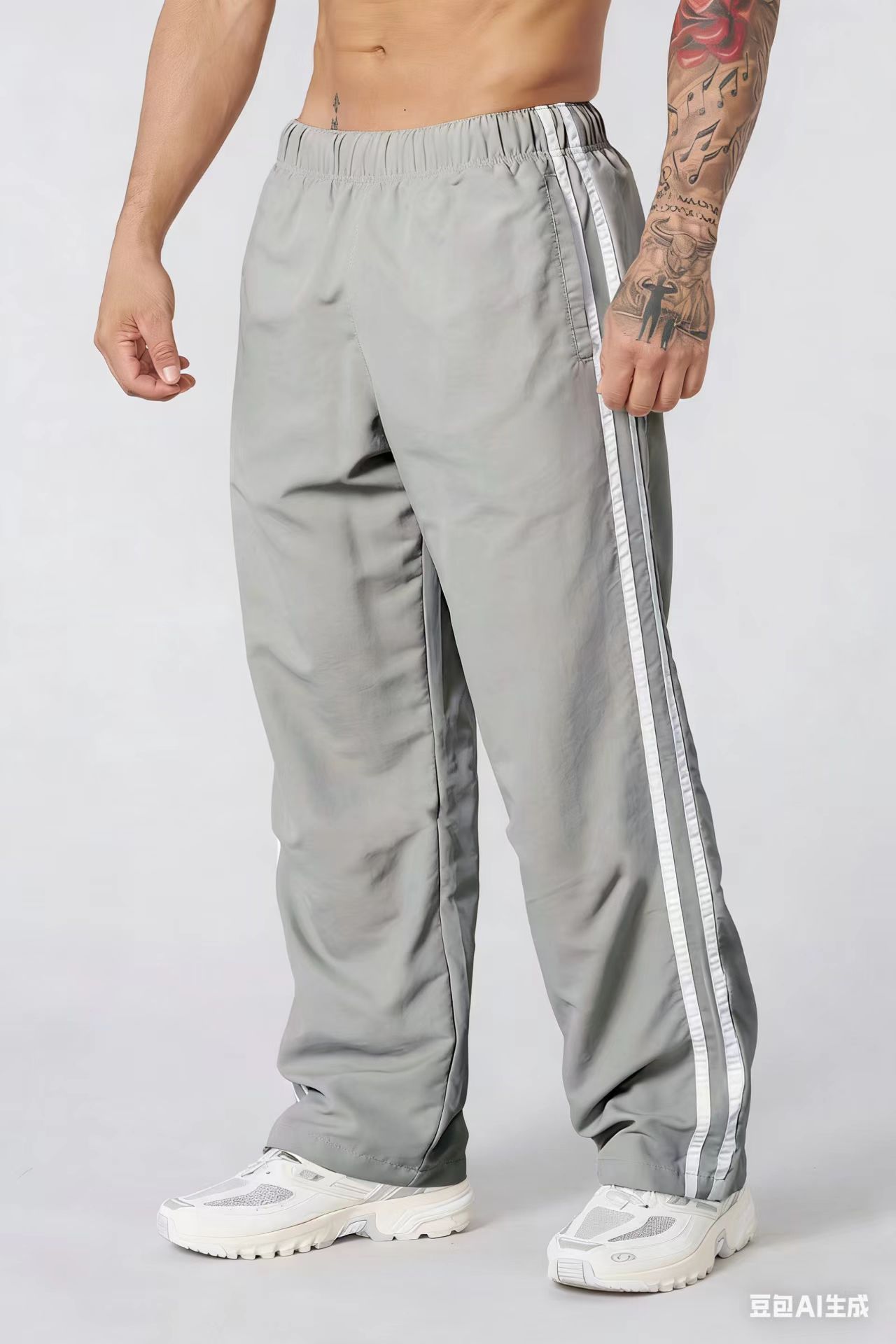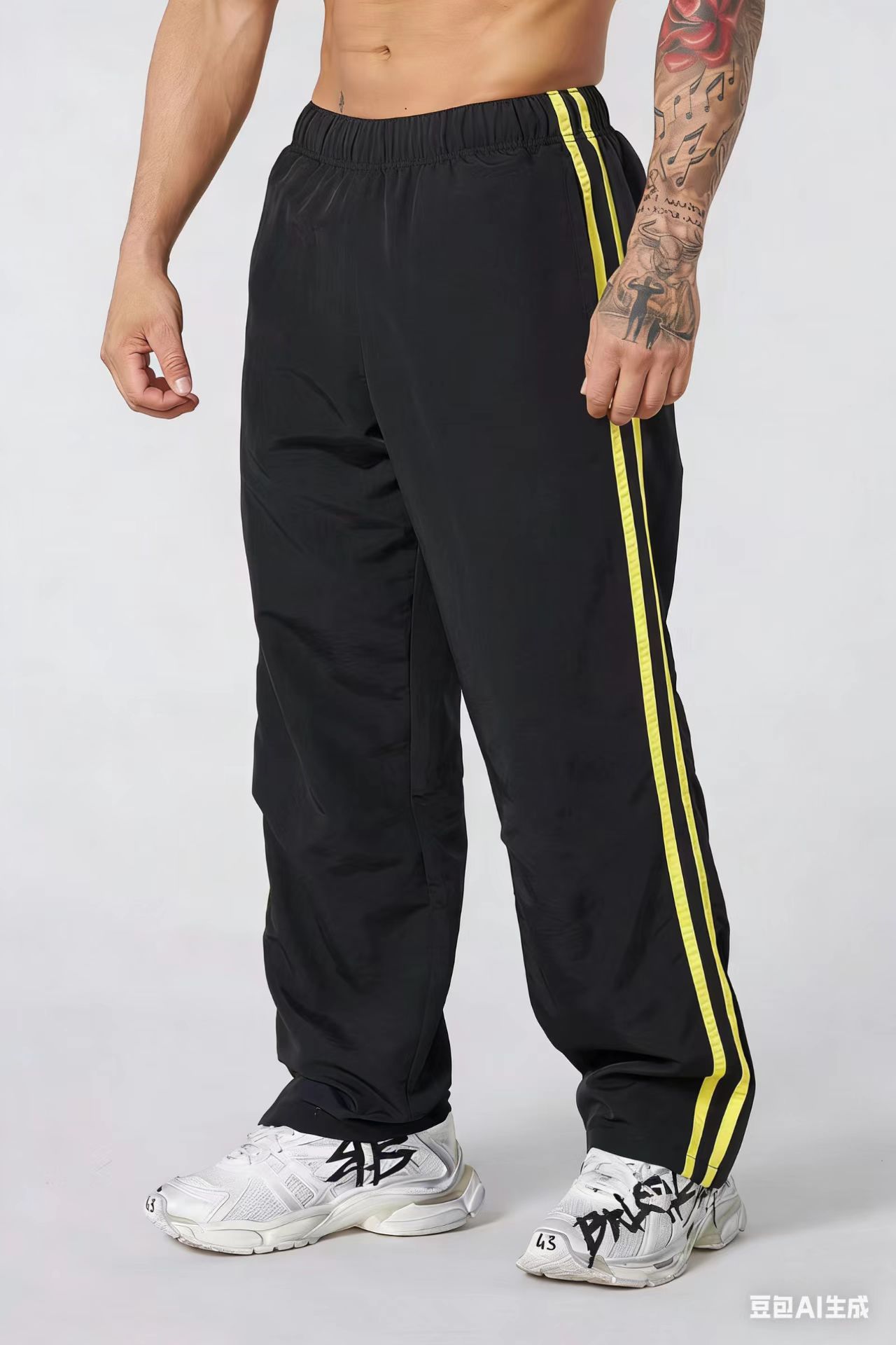 YOUNGLA 남자 스포츠 바지 더블 패치 워크 인쇄 캐주얼 바지 체육관 스포츠 피트니스 중간 허리 스트레이트 바지