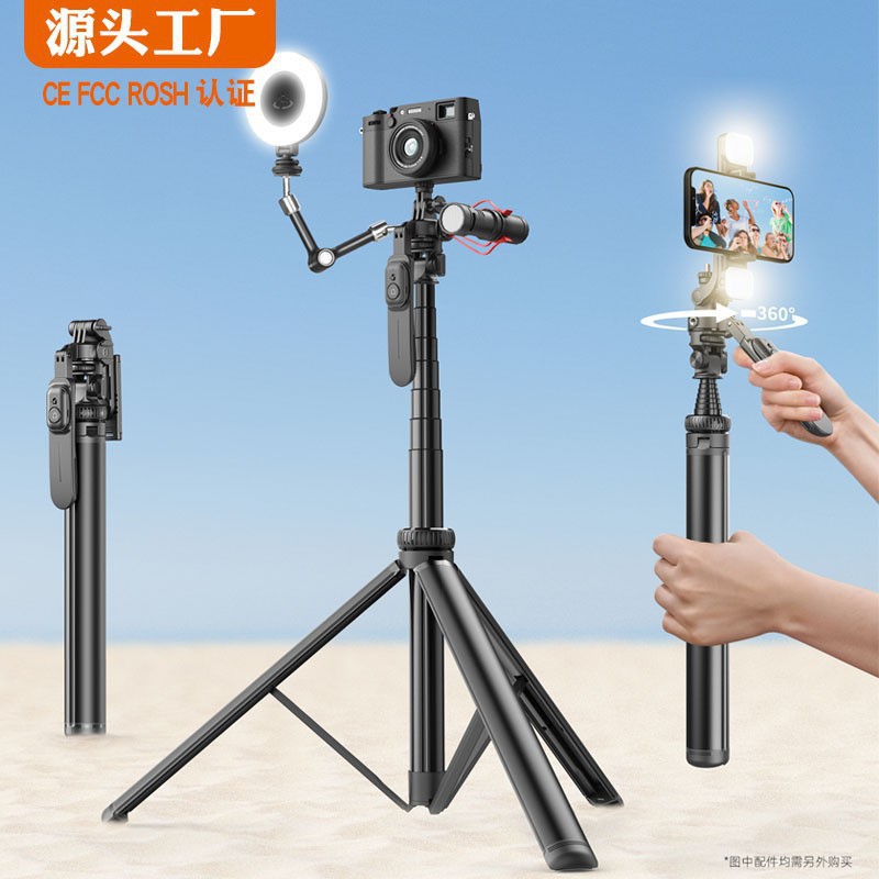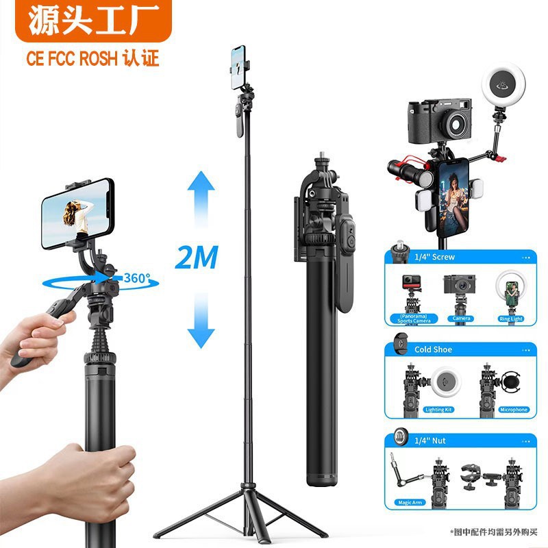새로운 데스크탑 휴대 전화 스탠드 2 미터 금속 셀카 스틱 트레몰로 야외 라이브 스탠드 삼각대 머리