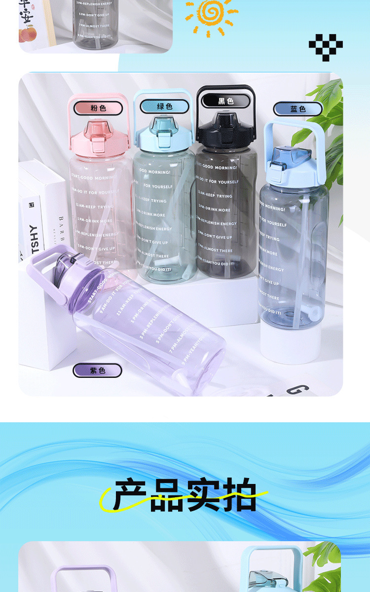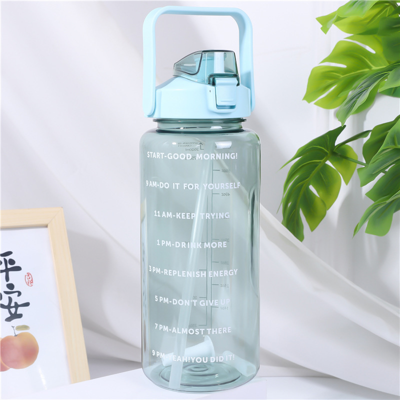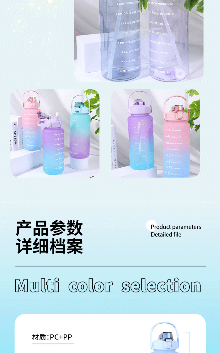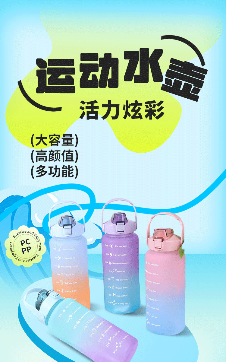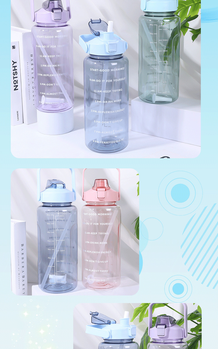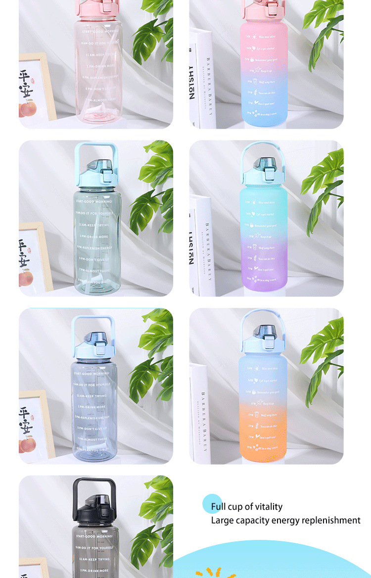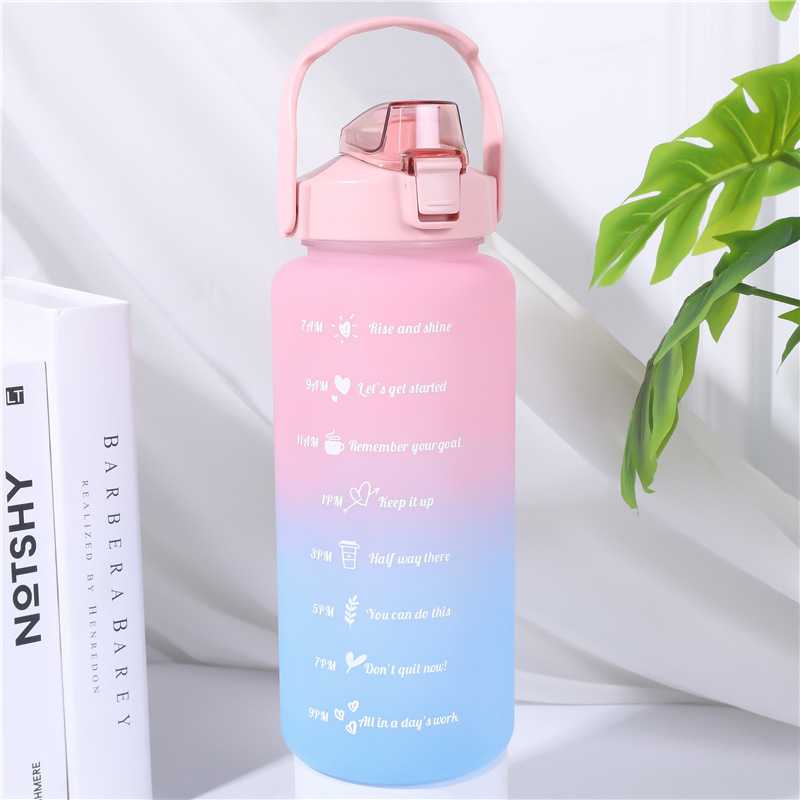 2000ml 대용량 스포츠 주전자 국경 간 손잡이 물 컵 플라스틱 물 컵 젖빛 그라디언트 직접 마시는 피펫 컵스토어 가기