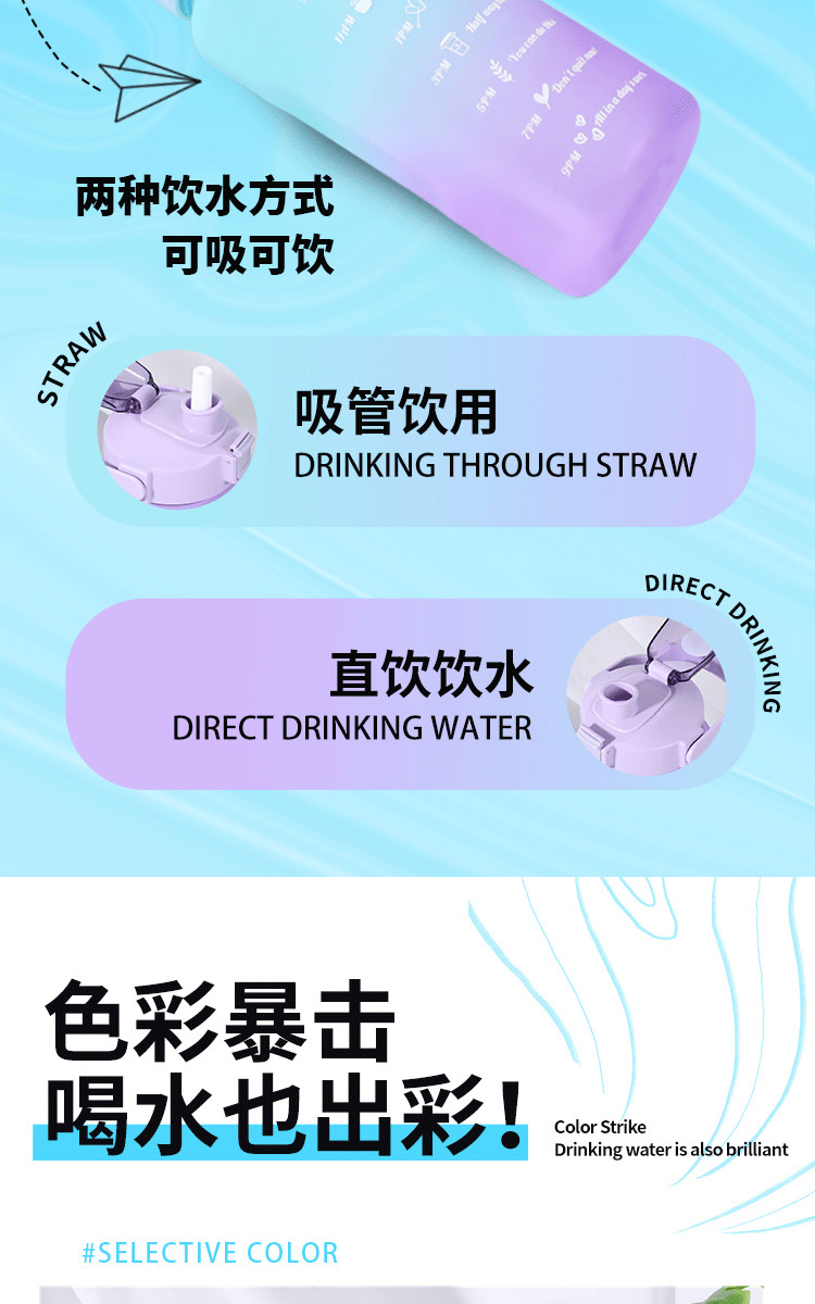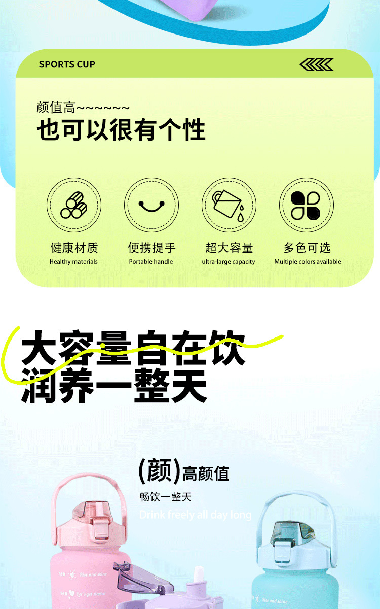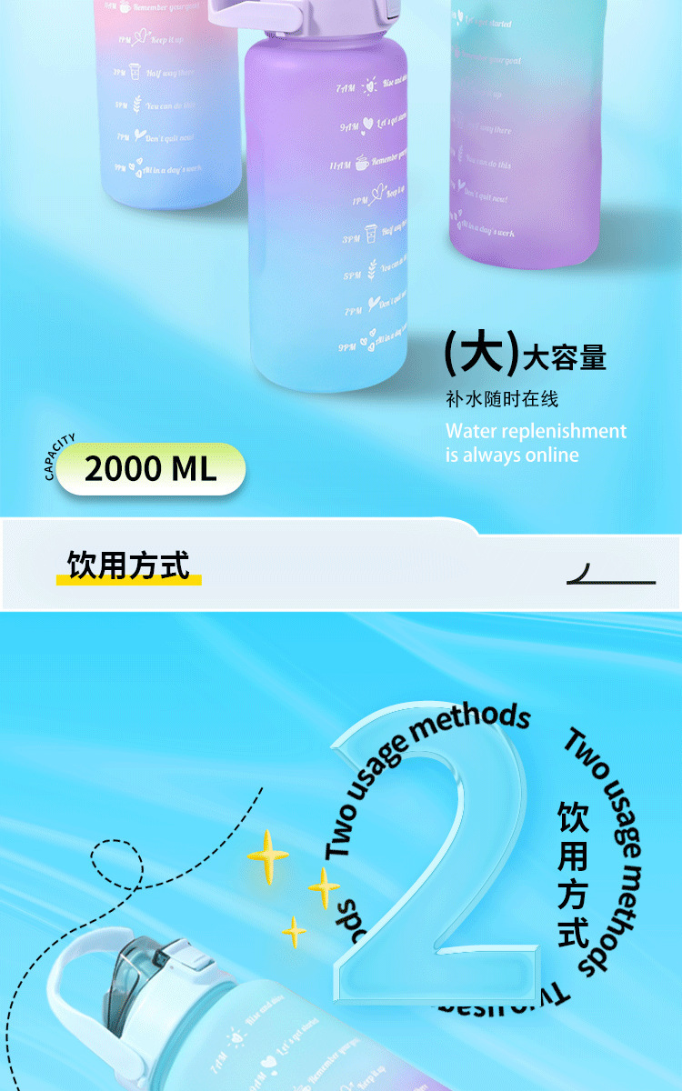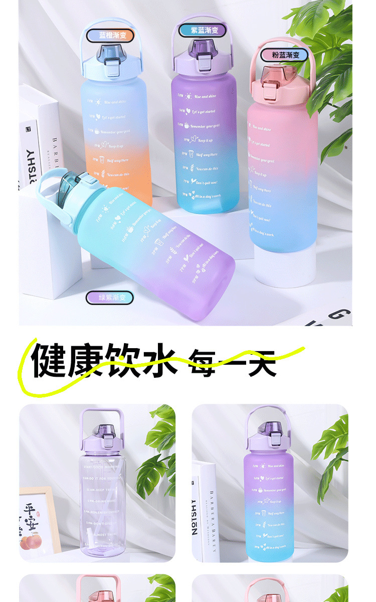 2000ml 대용량 스포츠 주전자 국경 간 손잡이 물 컵 플라스틱 물 컵 젖빛 그라디언트 직접 마시는 피펫 컵