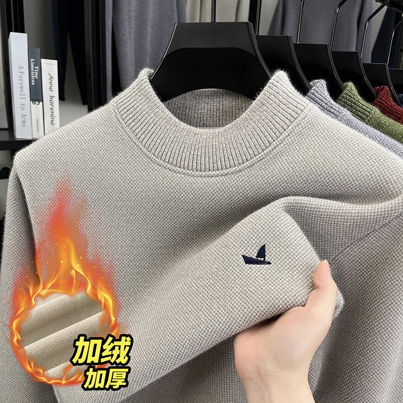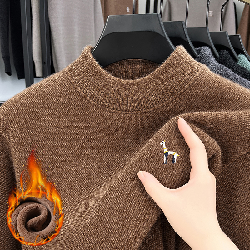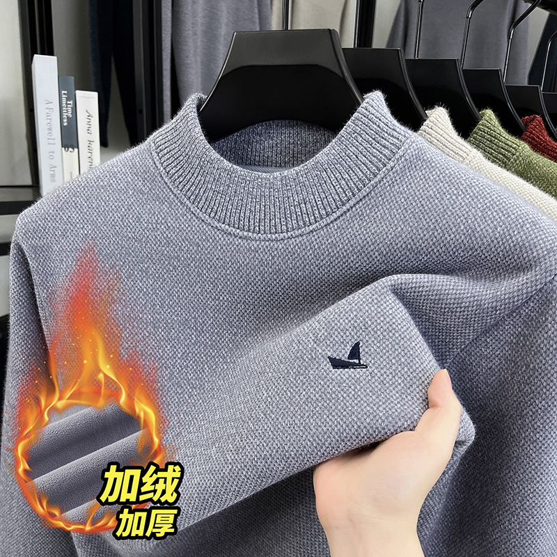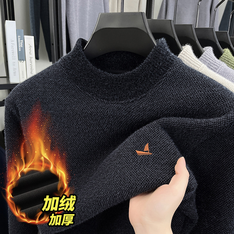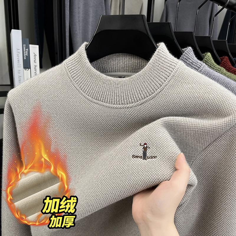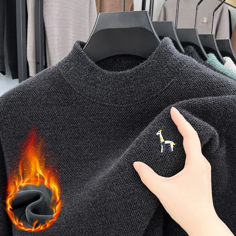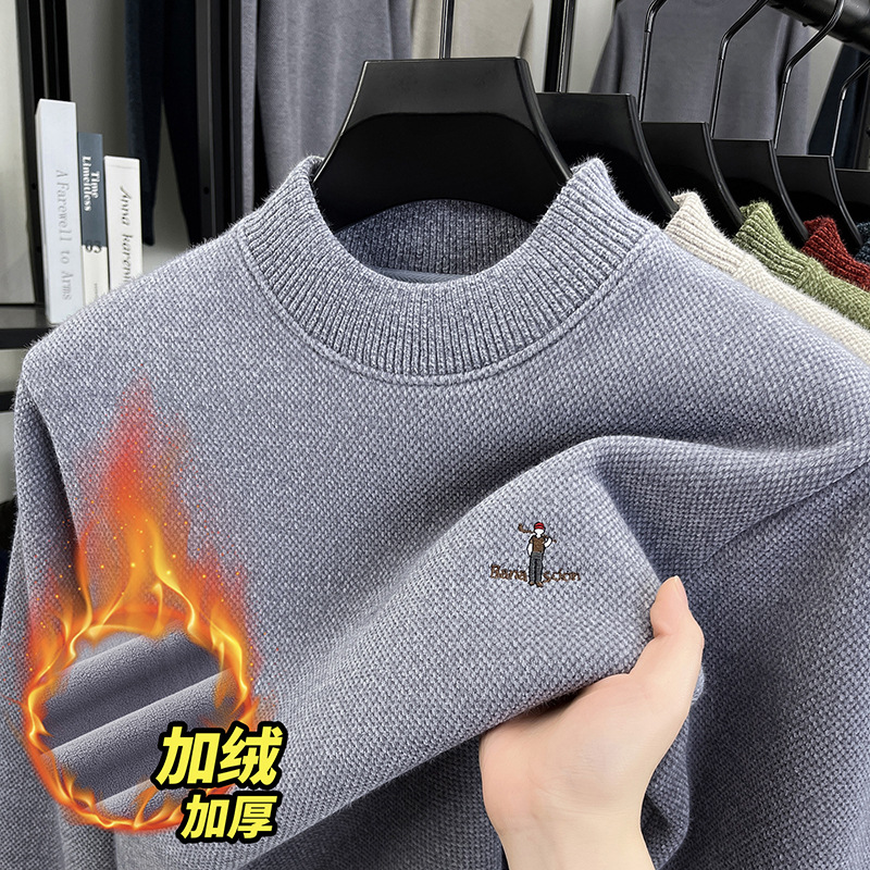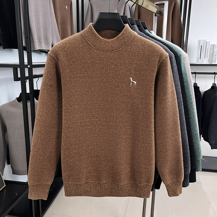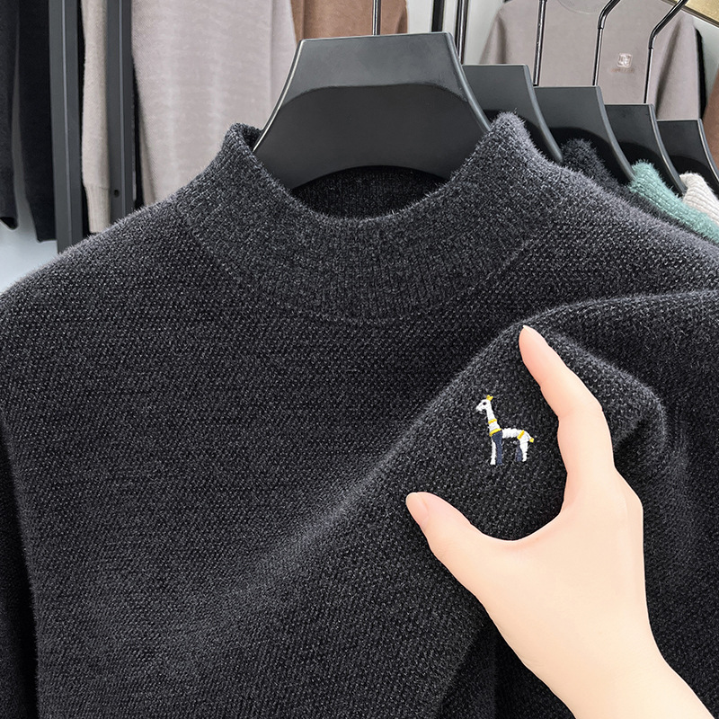 2025년 신상 겨울용 남성용 두꺼운 스웨터, 하프 터틀넥 자수 패션 따뜻한 고급 남성 스웨터스토어 가기