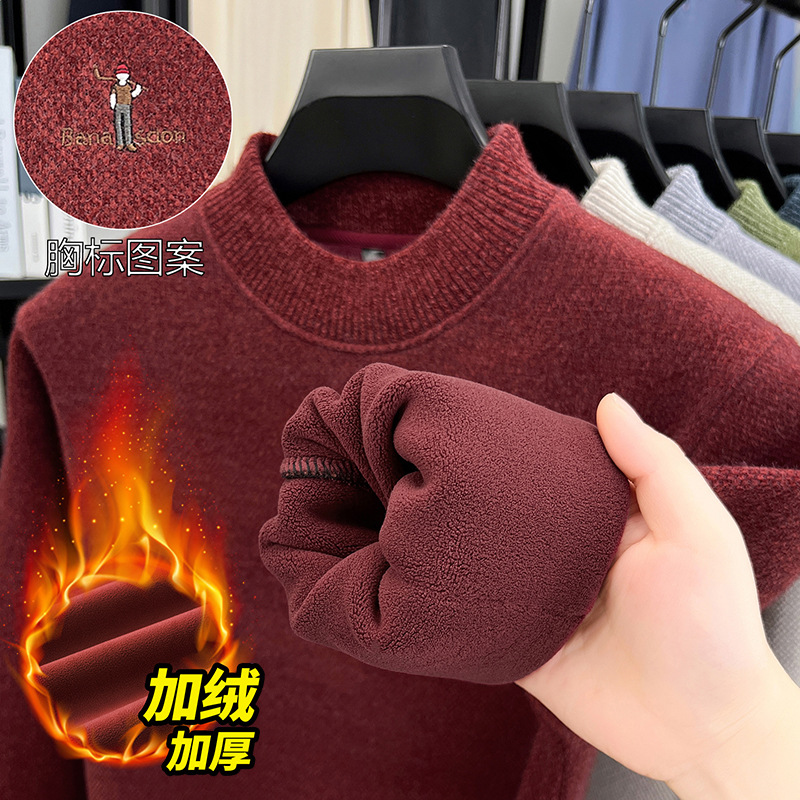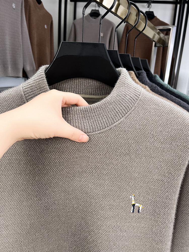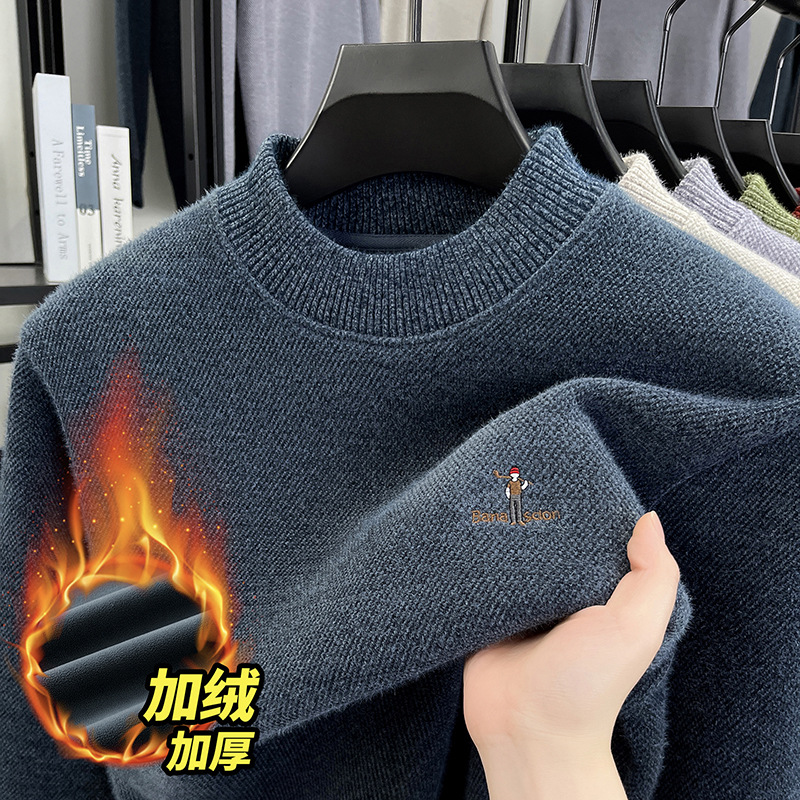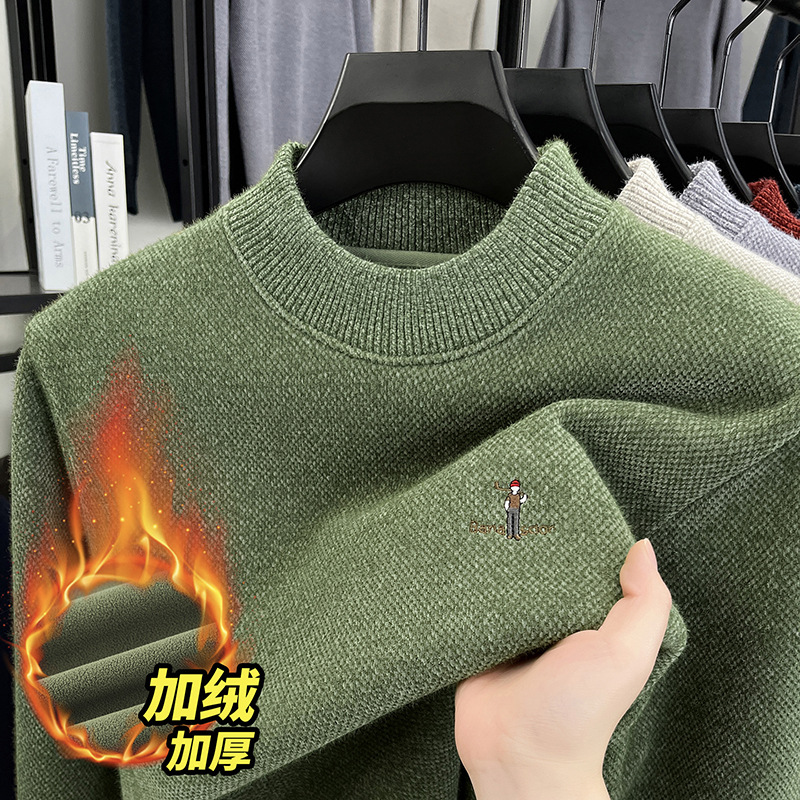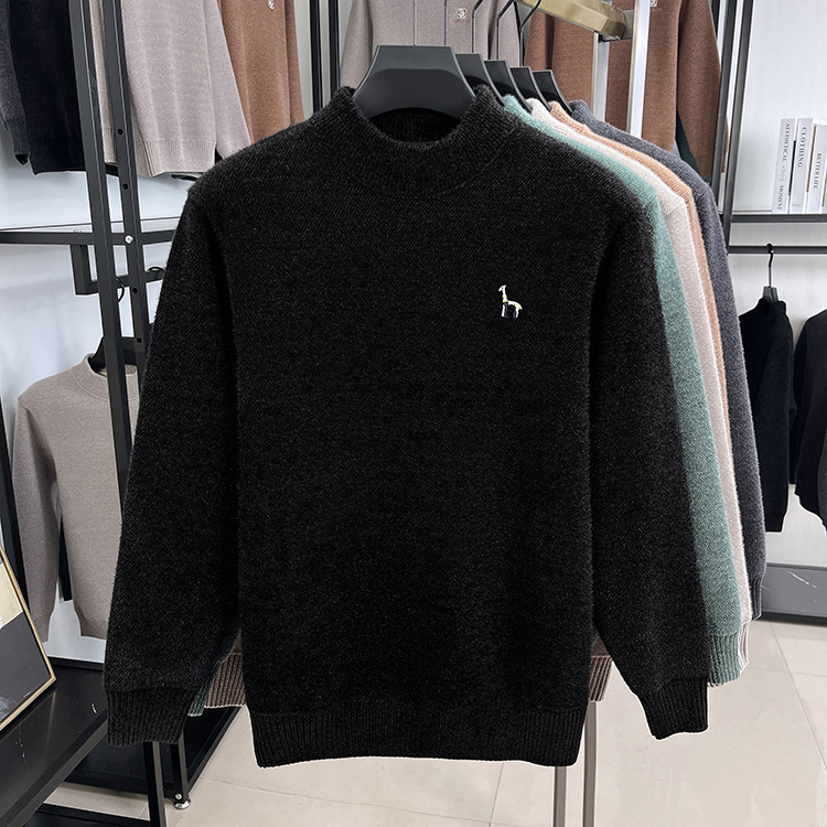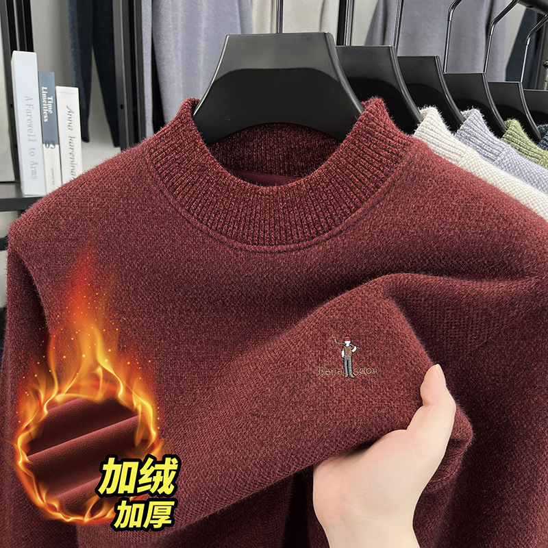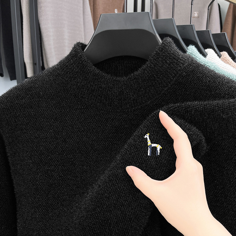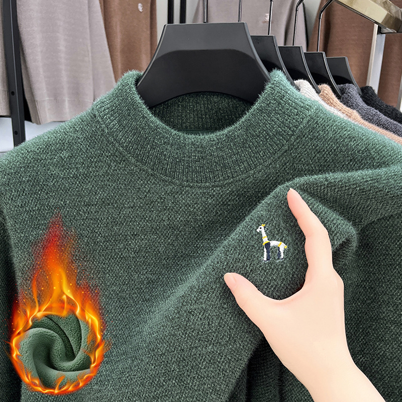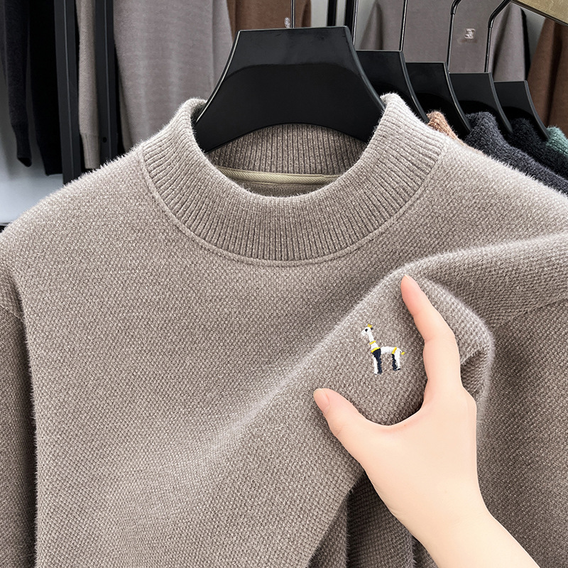 2025년 신상 겨울용 남성용 두꺼운 스웨터, 하프 터틀넥 자수 패션 따뜻한 고급 남성 스웨터스토어 가기