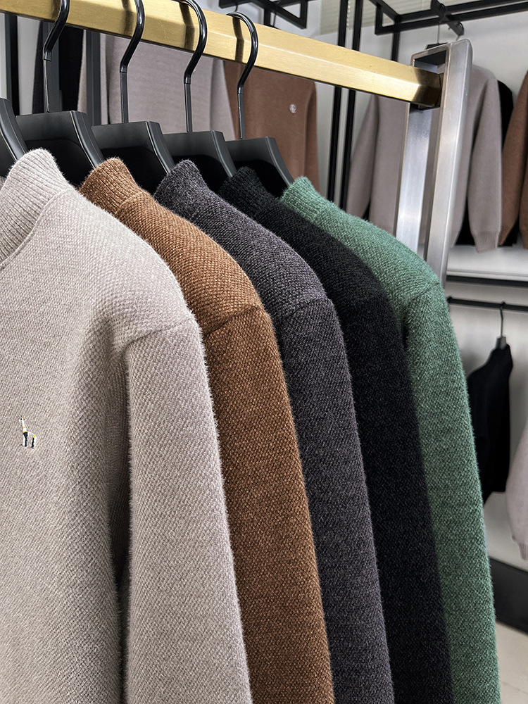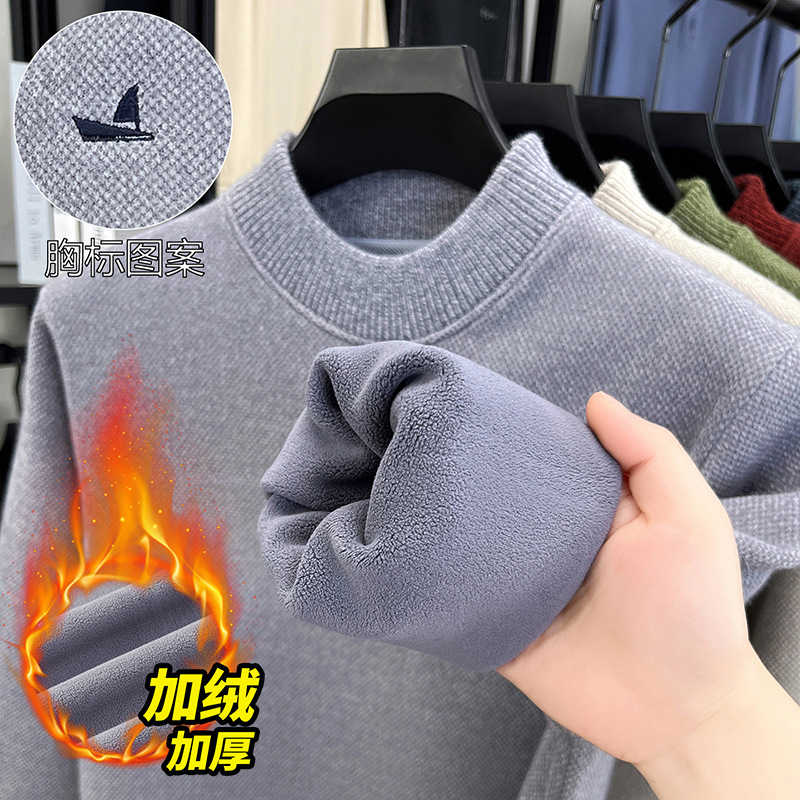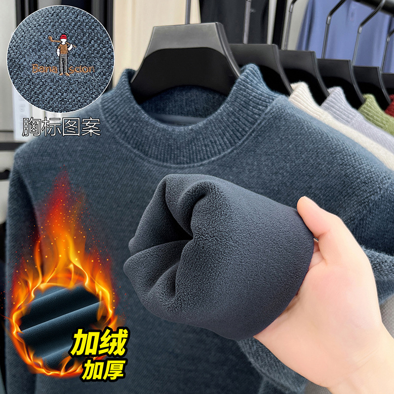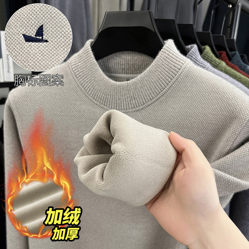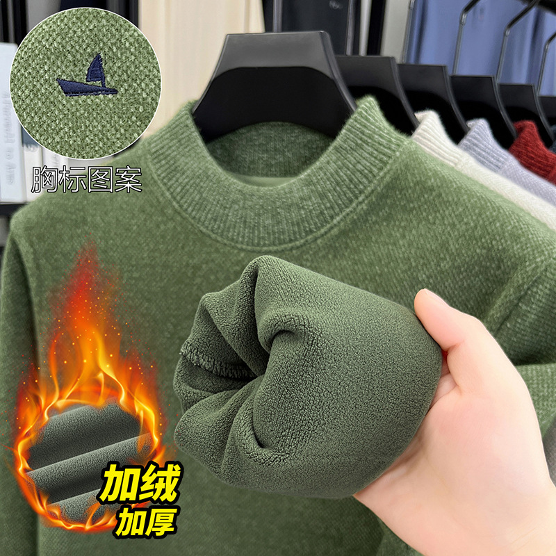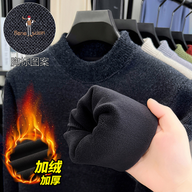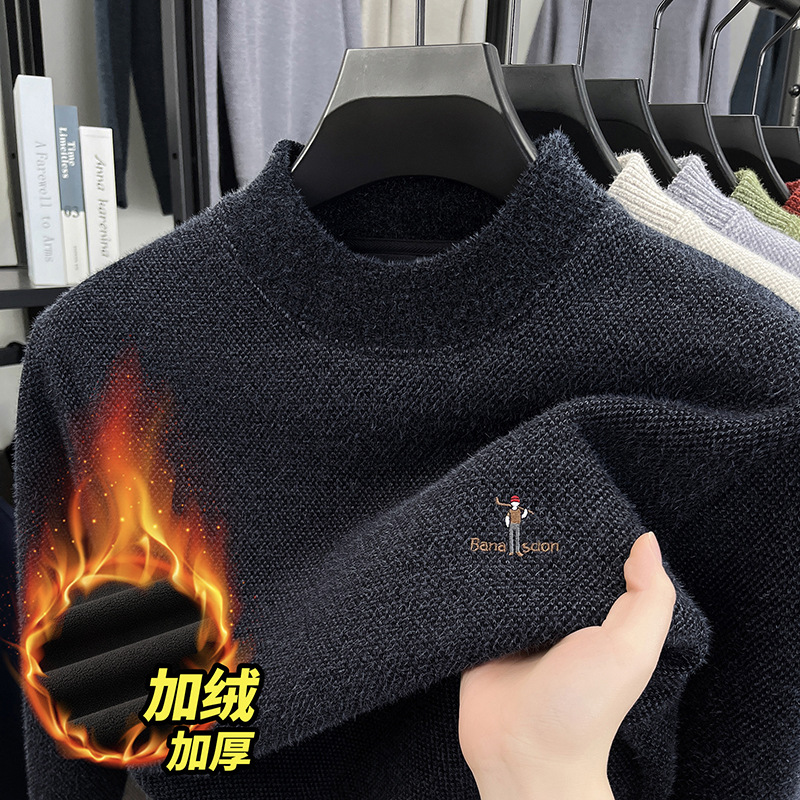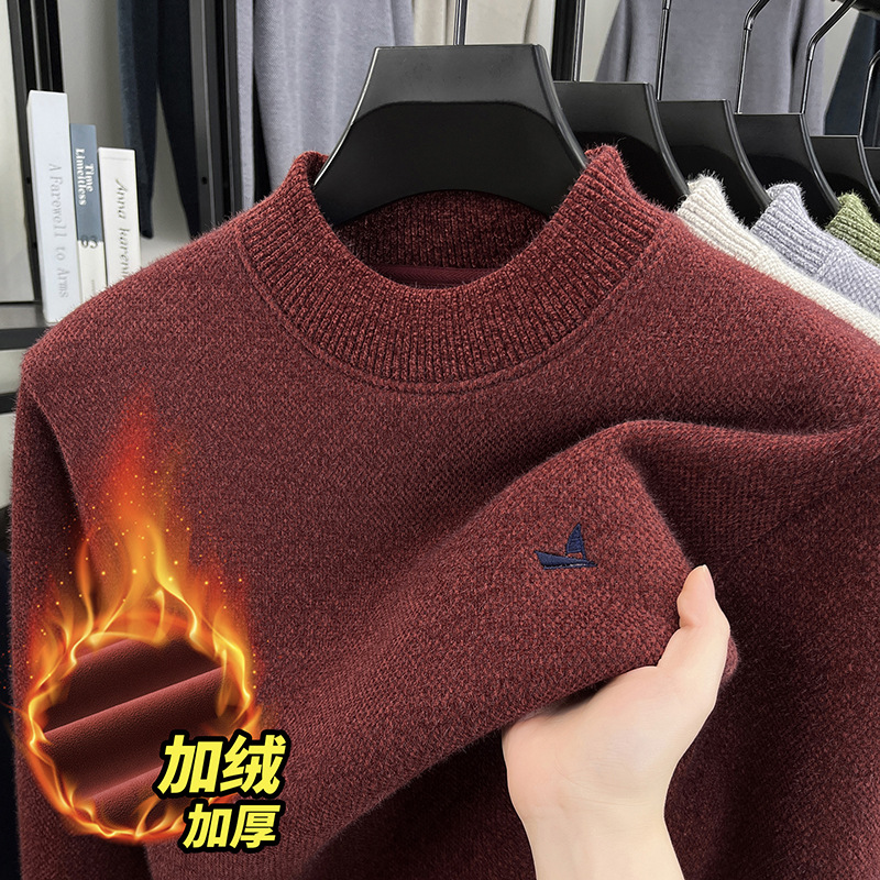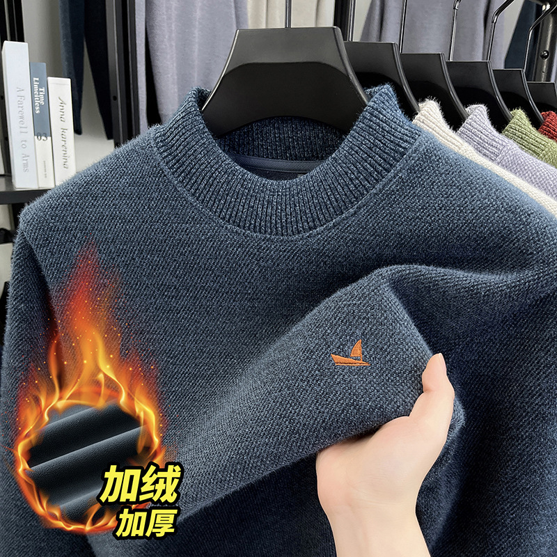 2025년 신상 겨울용 남성용 두꺼운 스웨터, 하프 터틀넥 자수 패션 따뜻한 고급 남성 스웨터스토어 가기