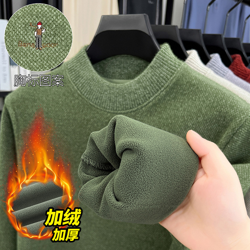 2025년 신상 겨울용 남성용 두꺼운 스웨터, 하프 터틀넥 자수 패션 따뜻한 고급 남성 스웨터