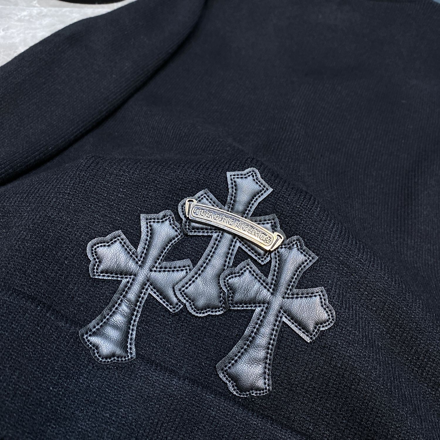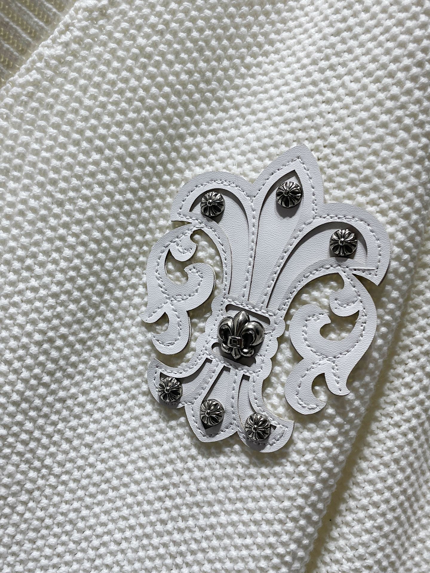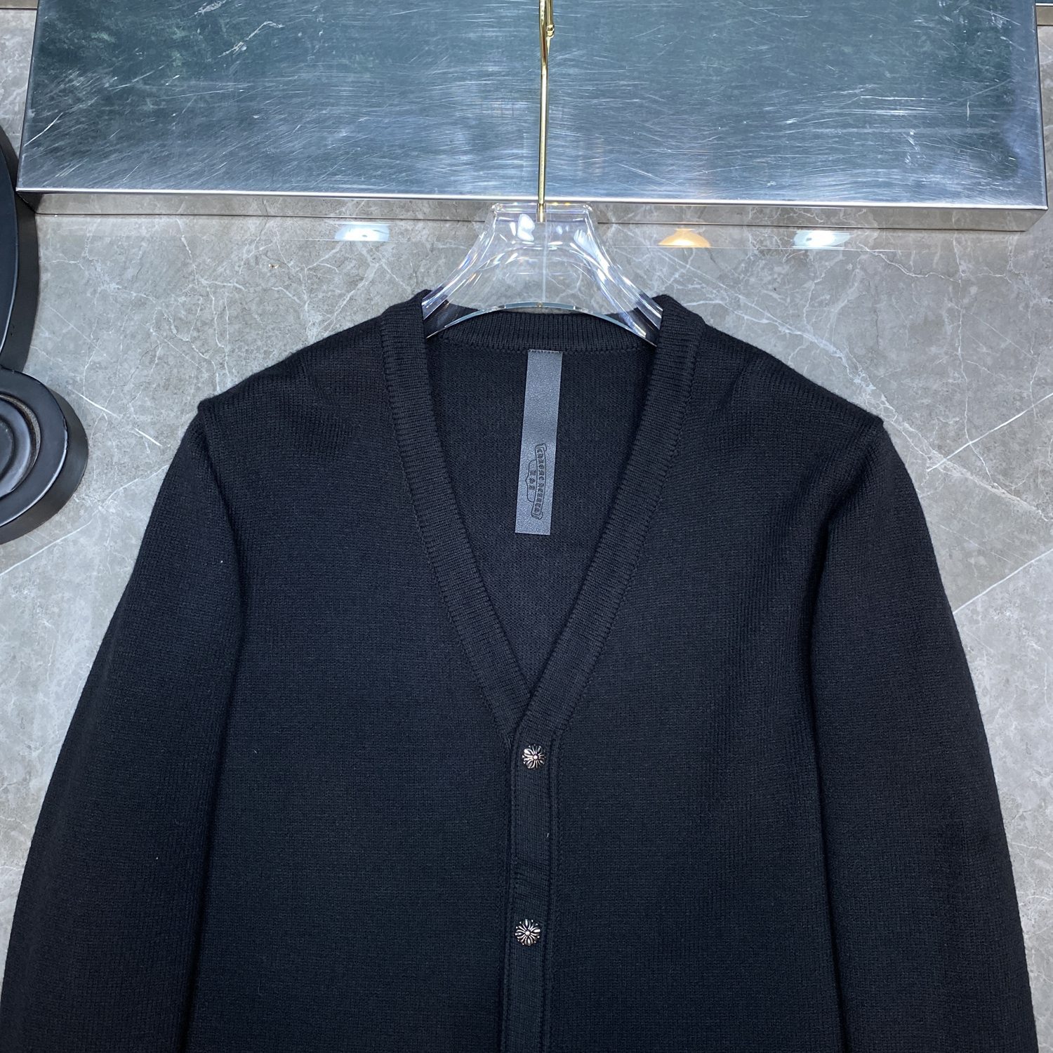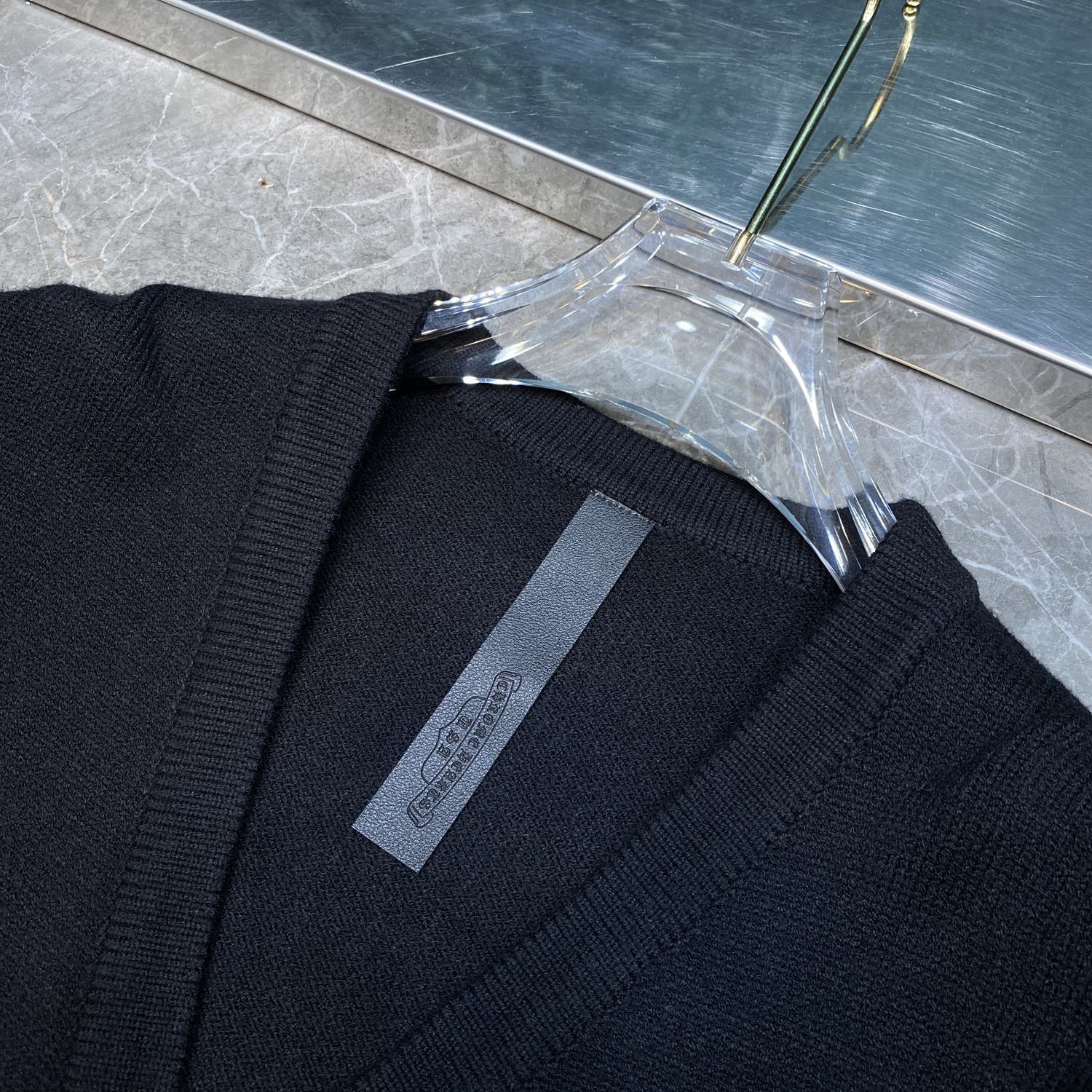 CH 크로우 2024 가을/겨울 새로운 하드웨어 버튼 가슴 가죽 라벨 남성과 여성을위한 자수 카디건 스웨터