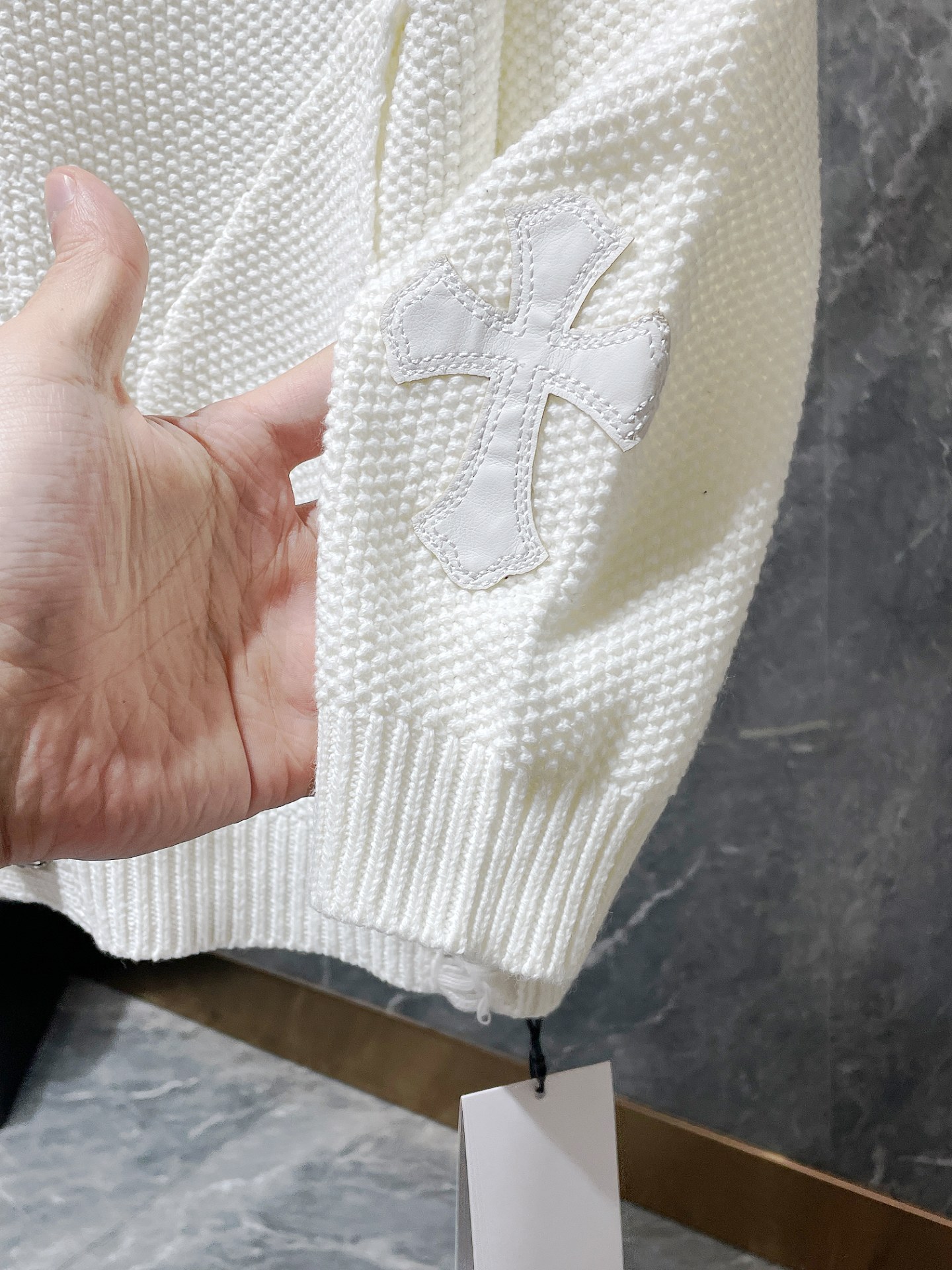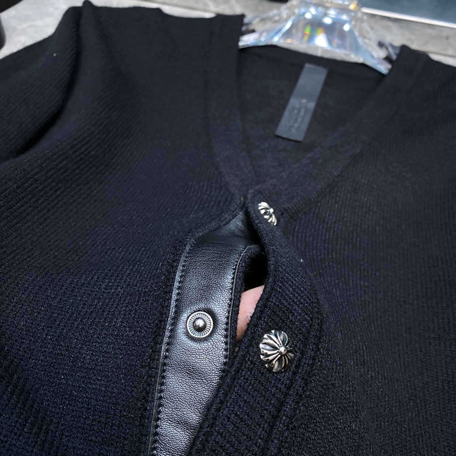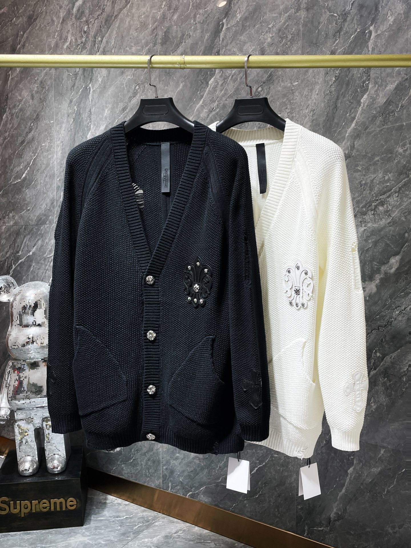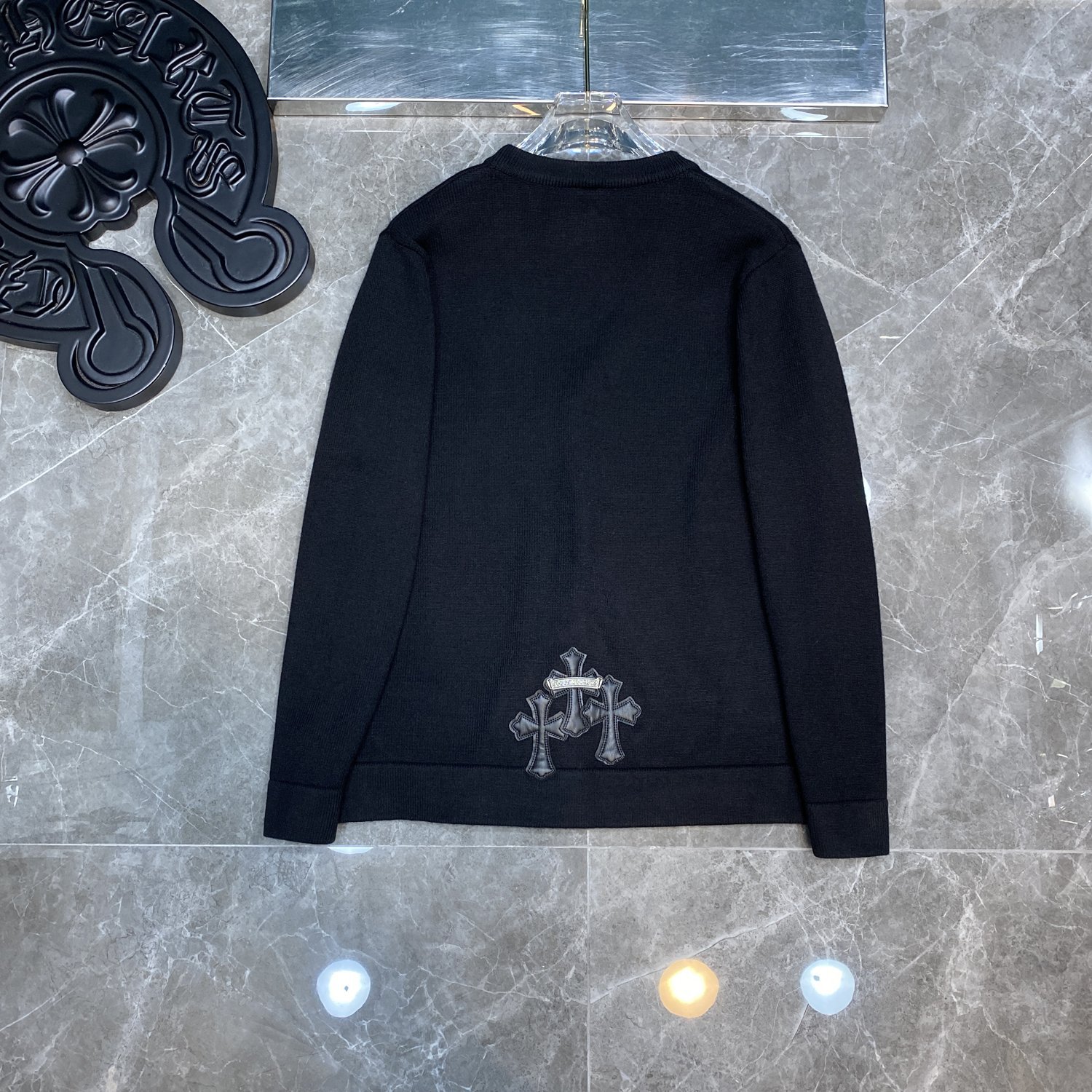 CH 크로우 2024 가을/겨울 새로운 하드웨어 버튼 가슴 가죽 라벨 남성과 여성을위한 자수 카디건 스웨터스토어 가기