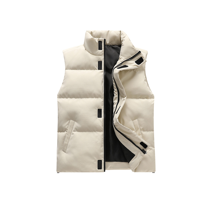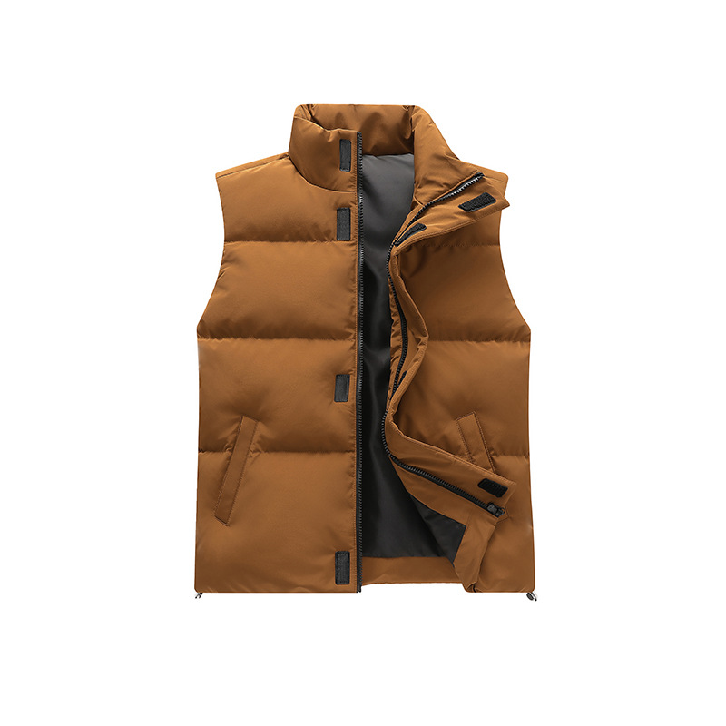 가을과 겨울 새로운 남성의 두꺼운 민소매 면화 코트 솔리드 컬러 캐주얼 빵 세트 수직 칼라 따뜻한 조끼스토어 가기