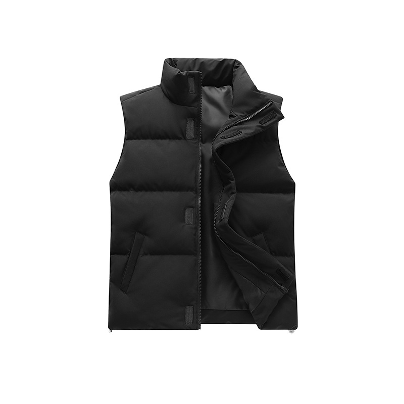 가을과 겨울 새로운 남성의 두꺼운 민소매 면화 코트 솔리드 컬러 캐주얼 빵 세트 수직 칼라 따뜻한 조끼