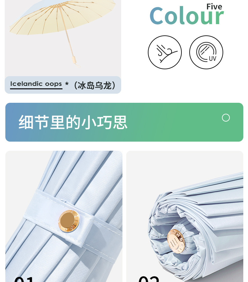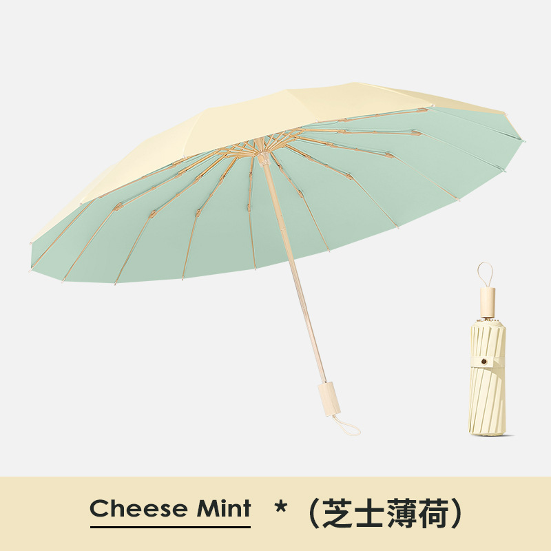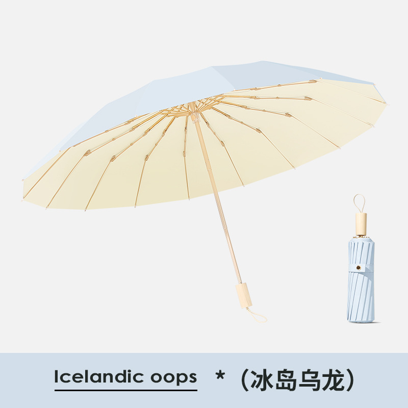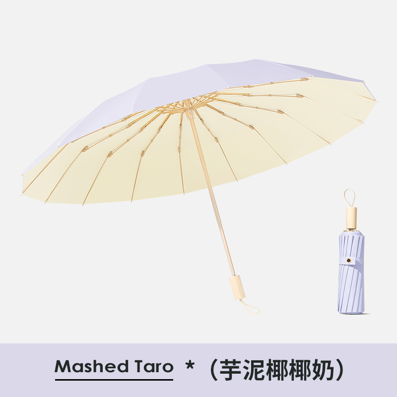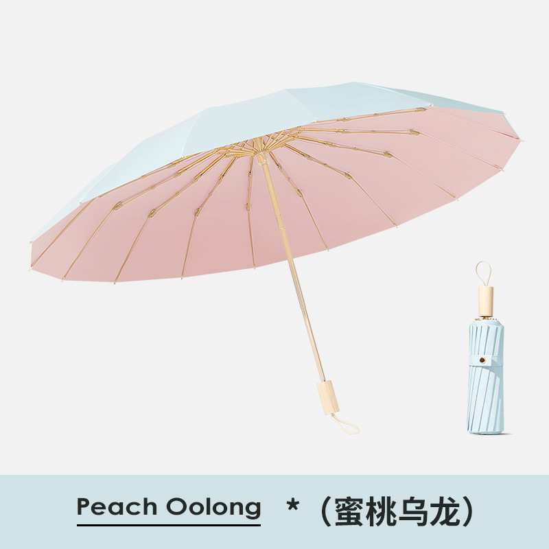 16 뼈 컬러 접착제 태양 우산 햇빛 태양 보호 자외선 보호 여성의 햇빛과 비 이중 목적 우산 접히는 큰 방풍 이중 우산