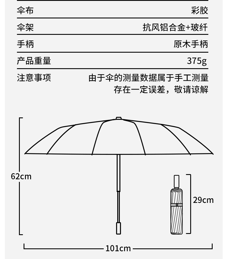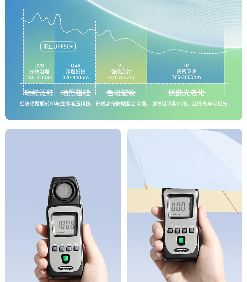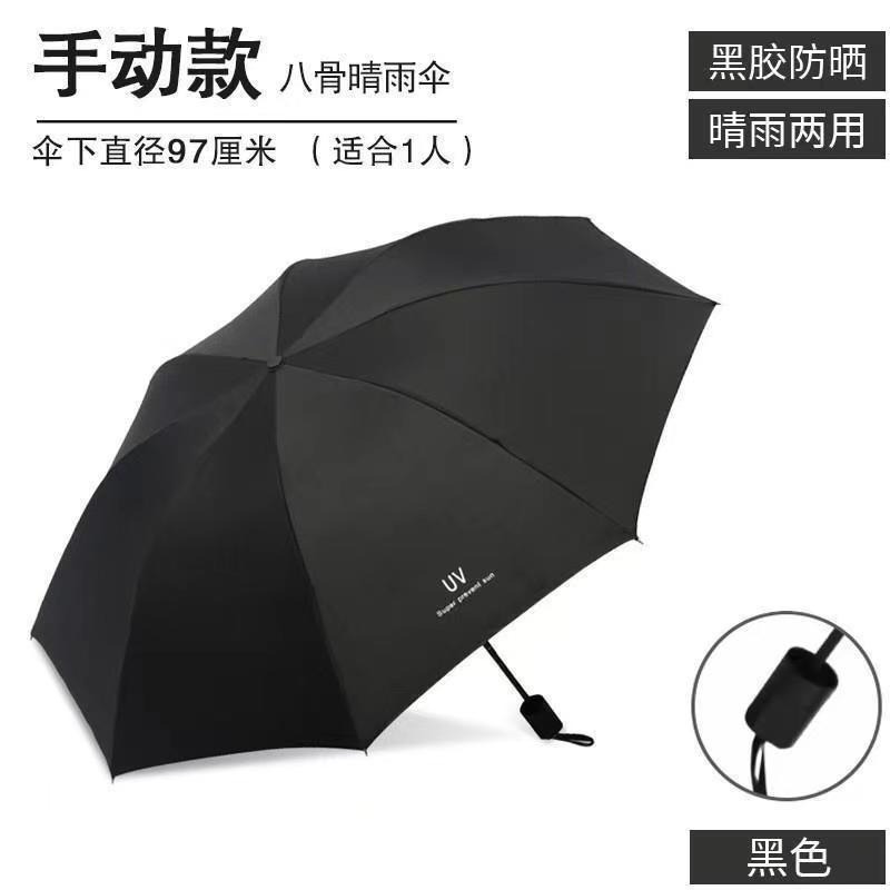 • 손으로 열 수 있는 일반 비닐 자외선 차단 우산 블랙