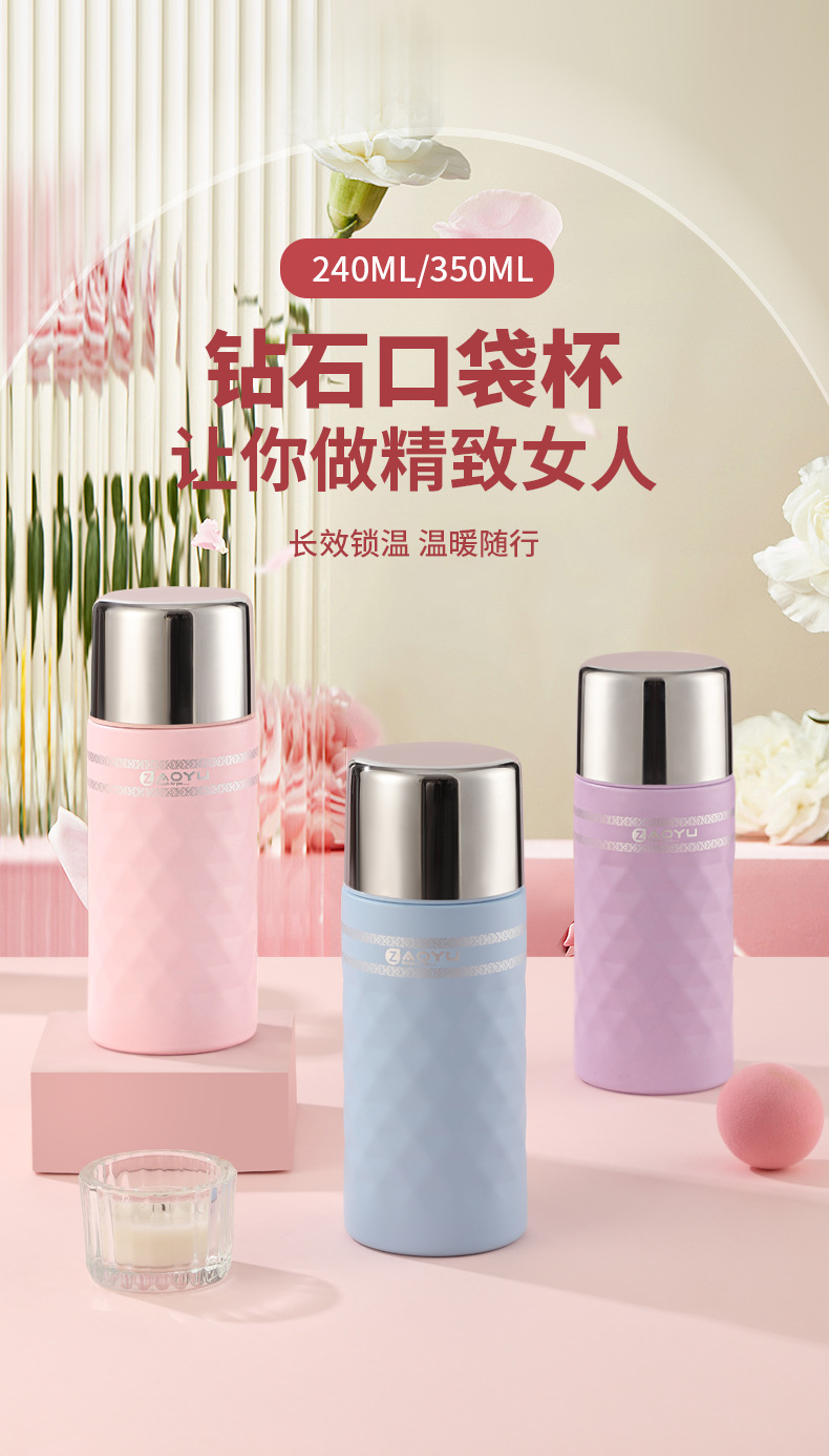 스테인레스 스틸 316 보온병 컵 소녀의 휴대용 차 분리 핸드 헬드 컵 높은 색상 가치 창조적 인 다이아몬드 포켓 컵