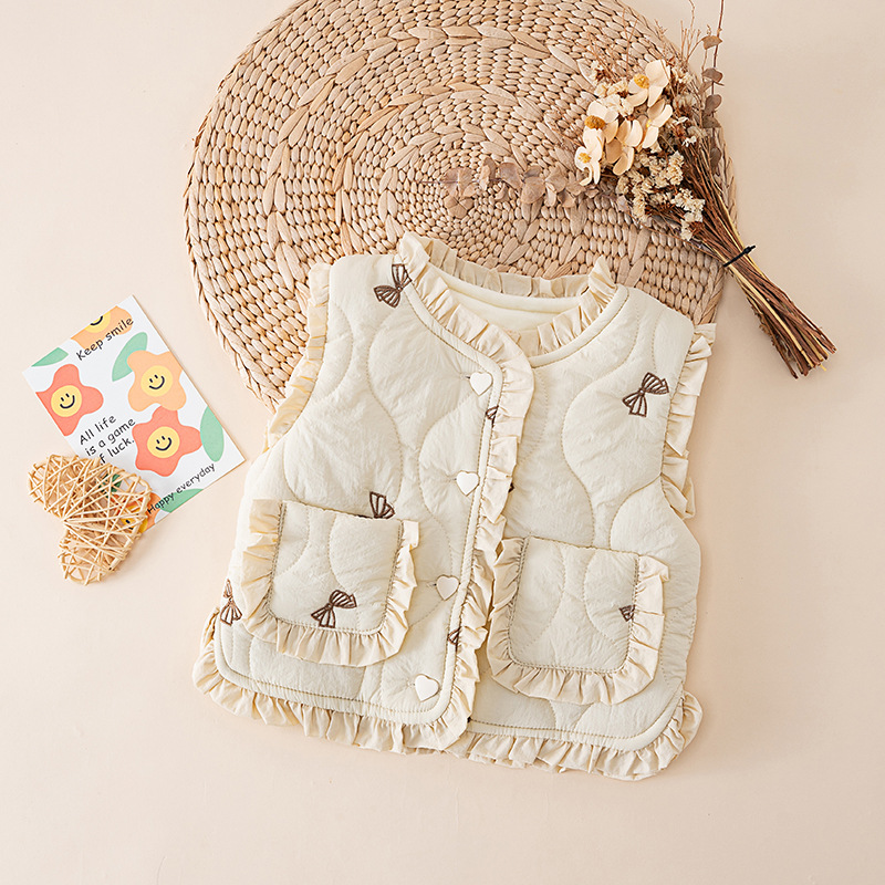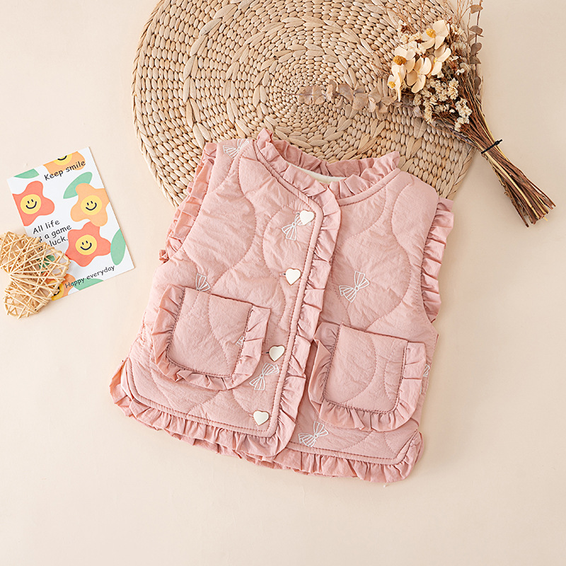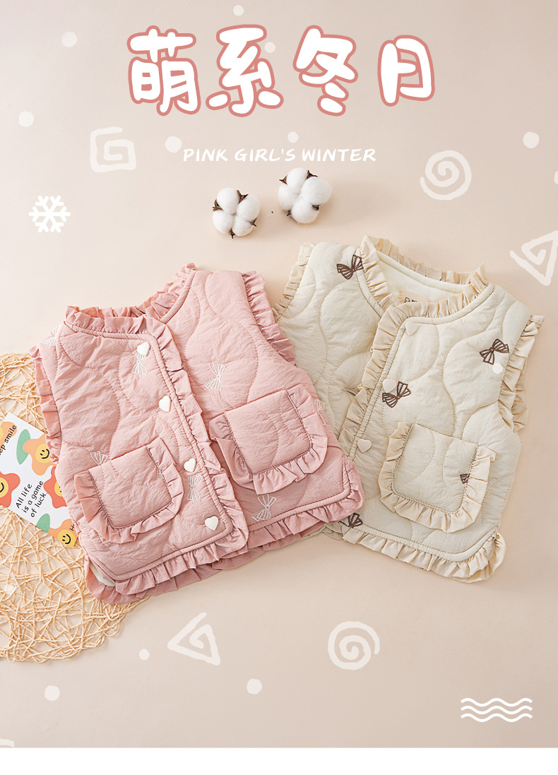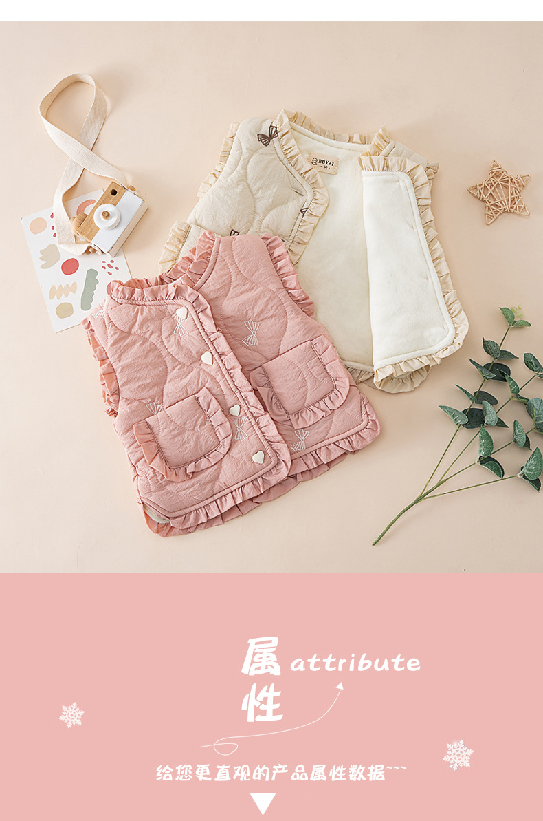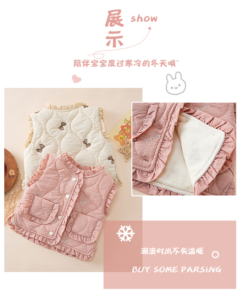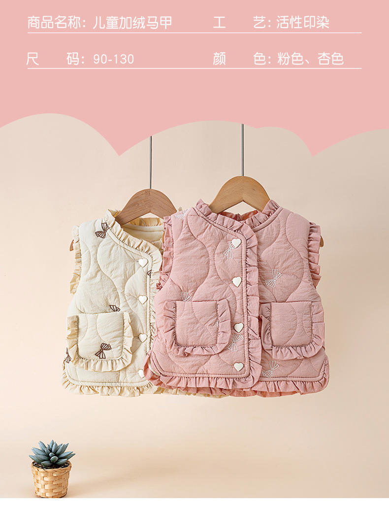 2024 새로운 여자 조끼 유행 서양식 어린이 겨울 착용 기모 아기 조끼 어린이 조끼스토어 가기