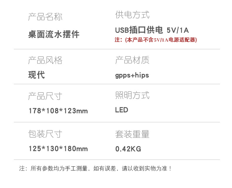 • 大水泵 水流更大 使用寿命长 无电池仓