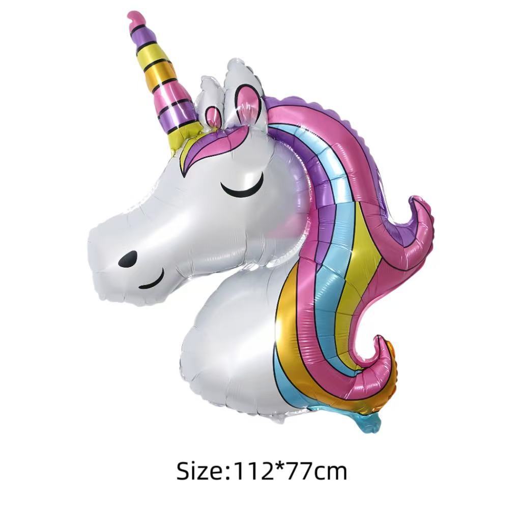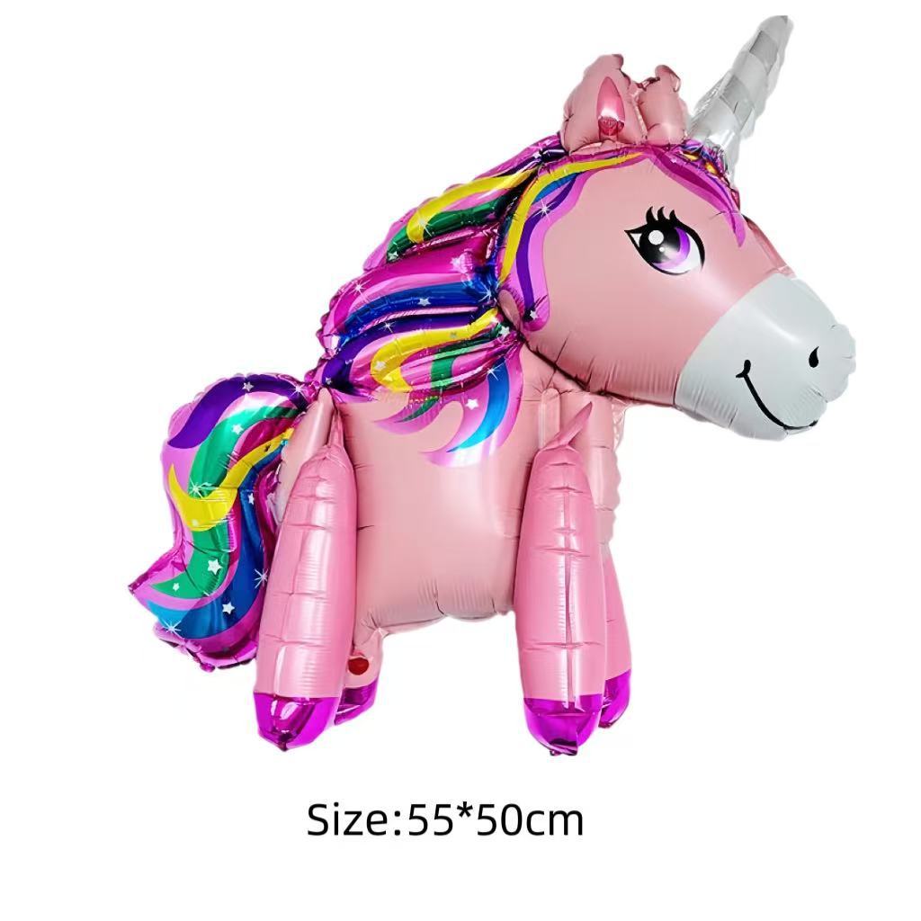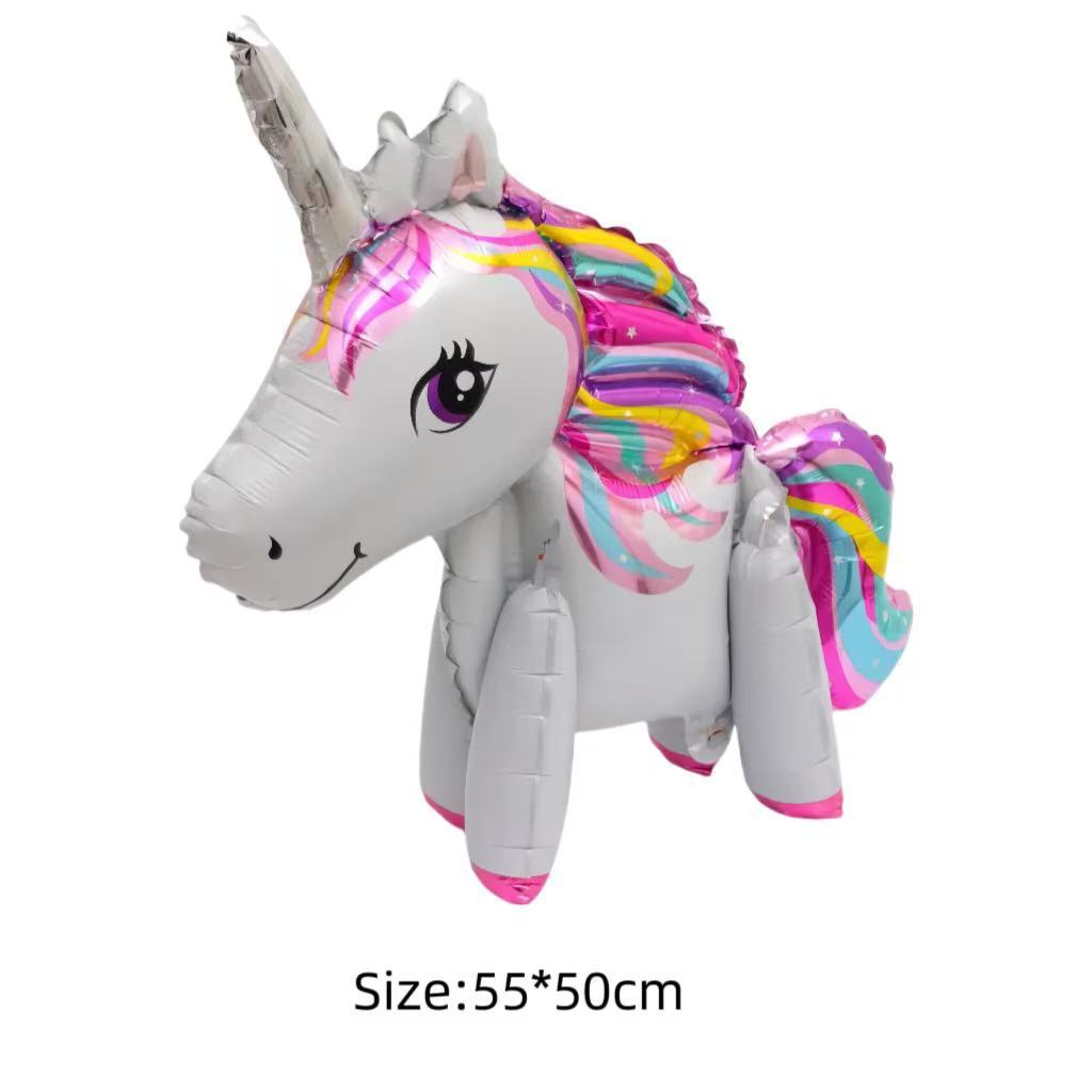 3D 무지개 말 풍선 유니콘 어린이 100일 생일 파티 장식 스탠딩 마법 만화 알루미늄 필름 풍선스토어 가기