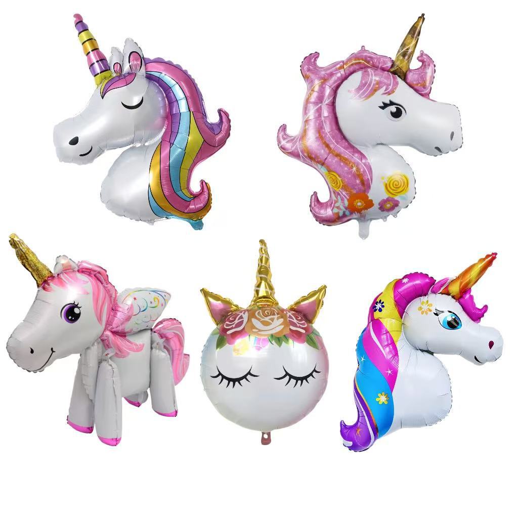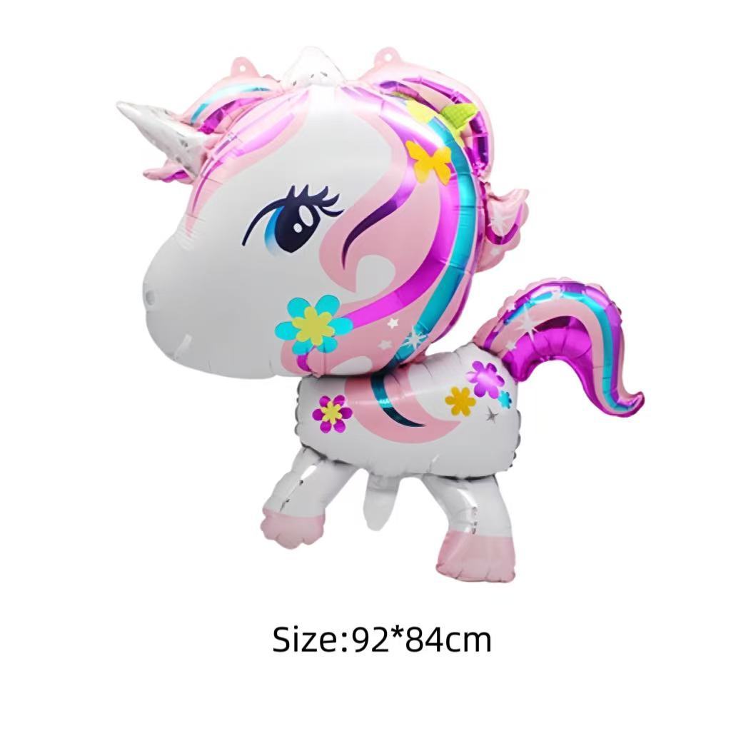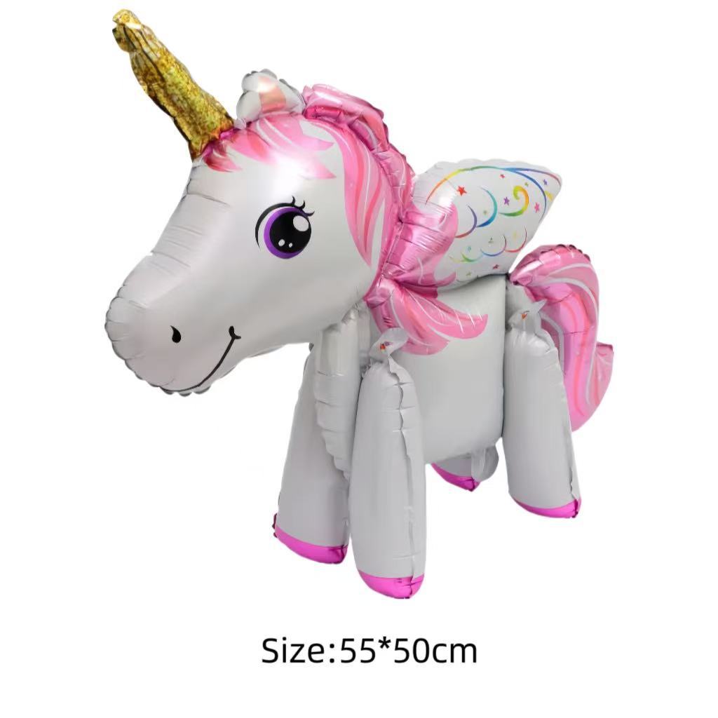 3D 무지개 말 풍선 유니콘 어린이 100일 생일 파티 장식 스탠딩 마법 만화 알루미늄 필름 풍선스토어 가기