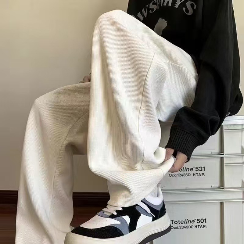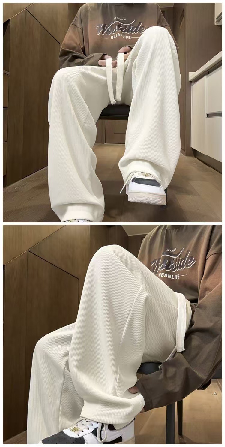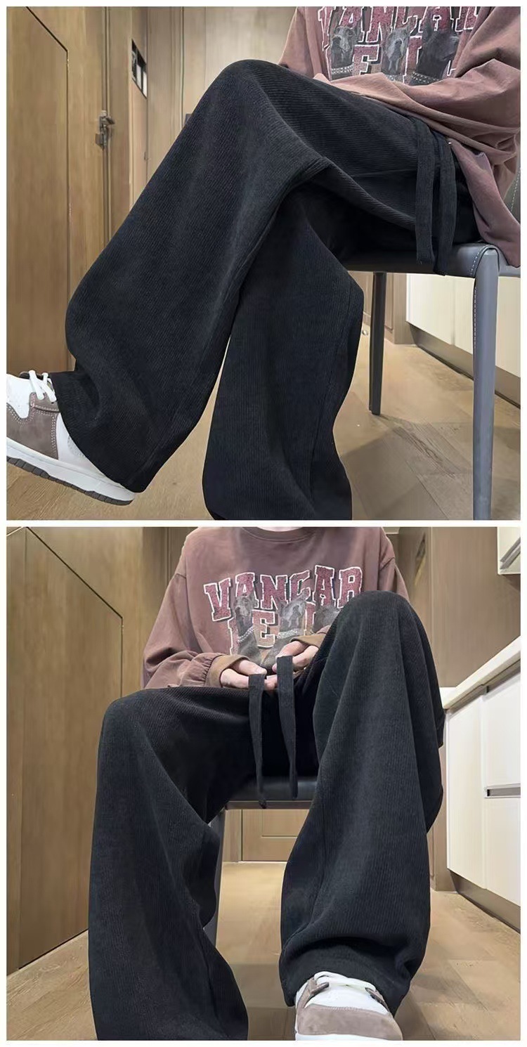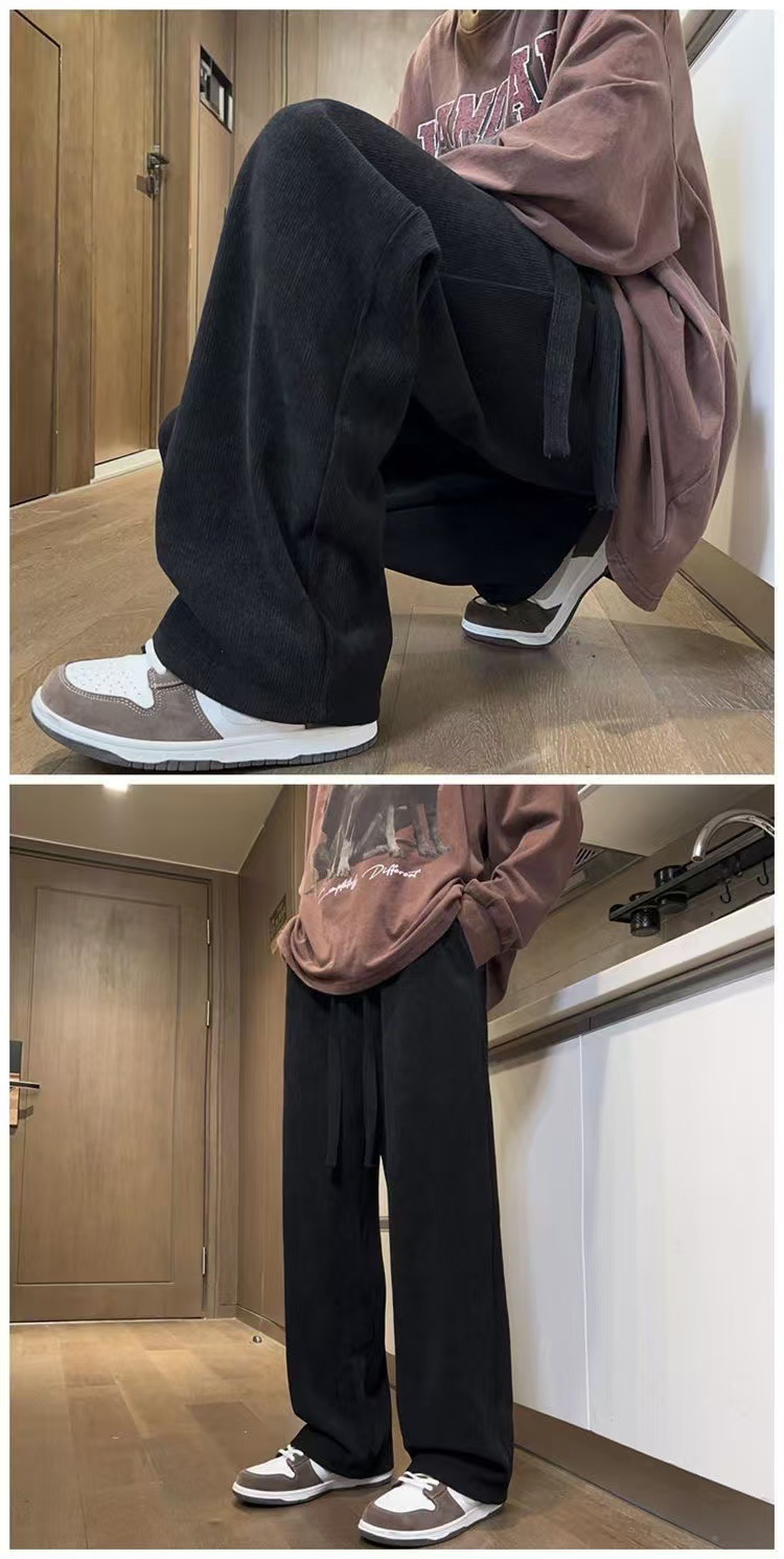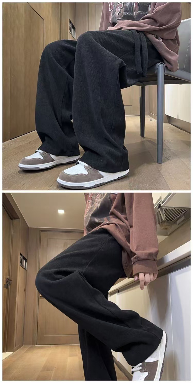 남성 가을과 겨울 기모 블랙 스포츠 바지 미국 빈티지 캐주얼 바지 트렌디 브랜드 느슨한 와이드 레그 바지 긴 국경스토어 가기
