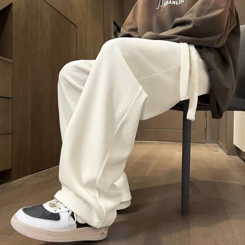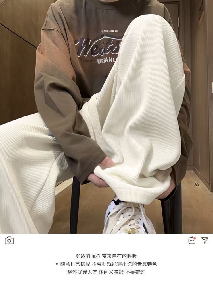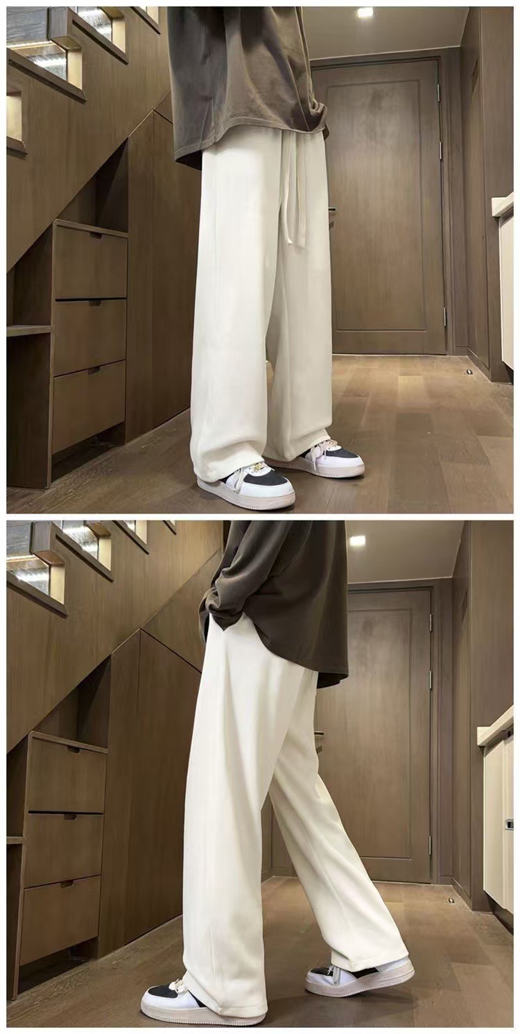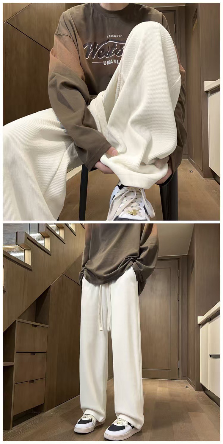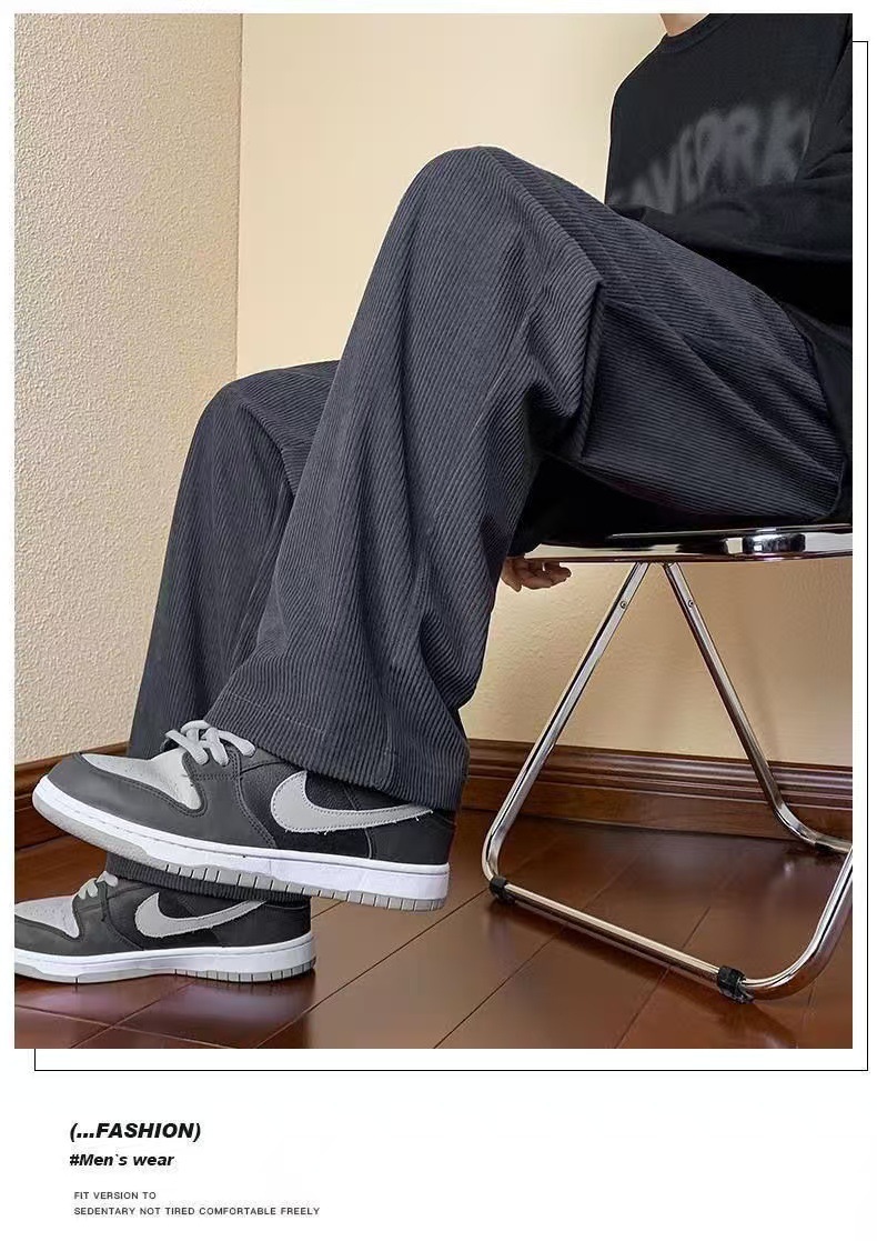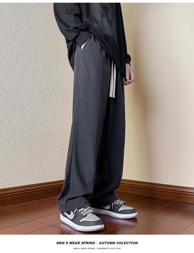남성 가을과 겨울 기모 블랙 스포츠 바지 미국 빈티지 캐주얼 바지 트렌디 브랜드 느슨한 와이드 레그 바지 긴 국경스토어 가기