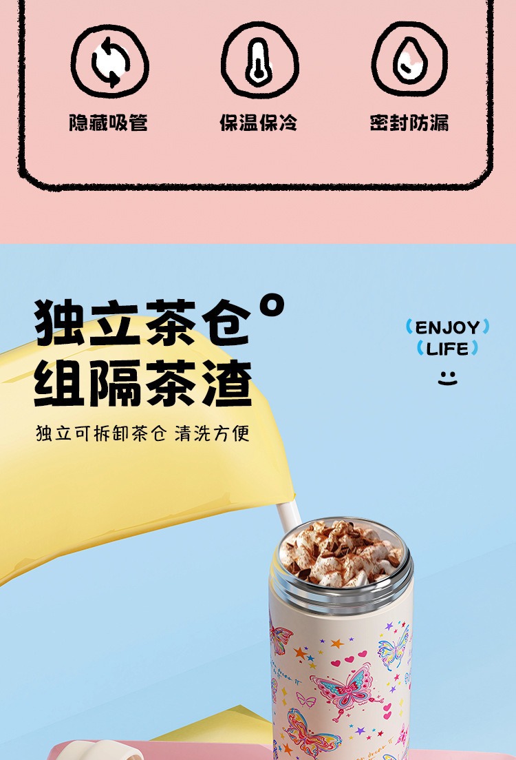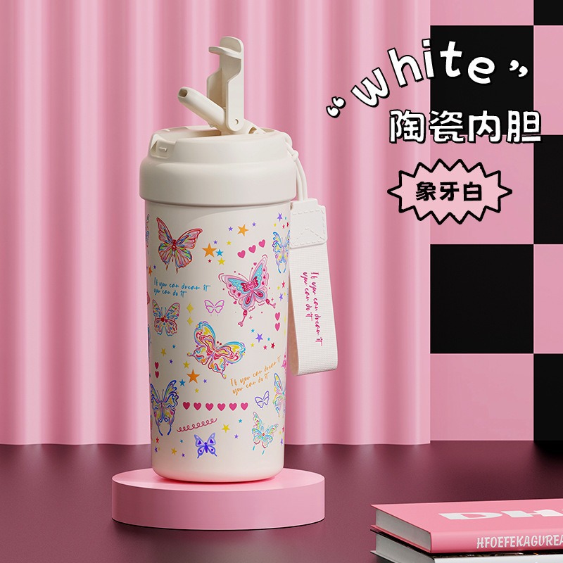 세라믹 라이너 보온병 컵 소녀 높은 색상 가치 2024 새로운 차 물 분리 컵 휴대용 커피 동반 컵 컵스토어 가기