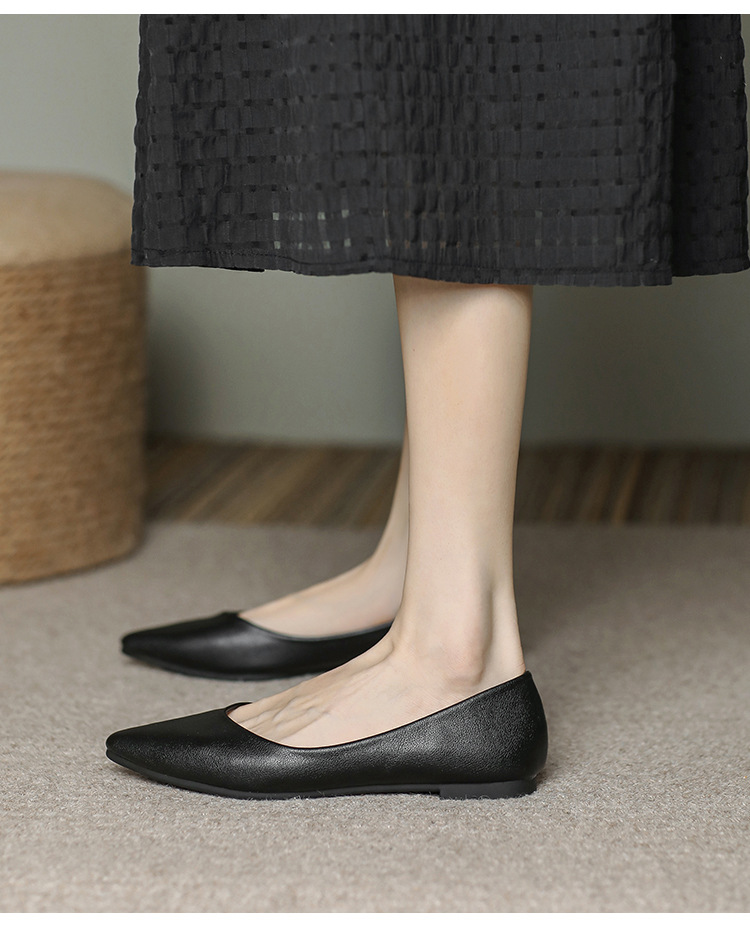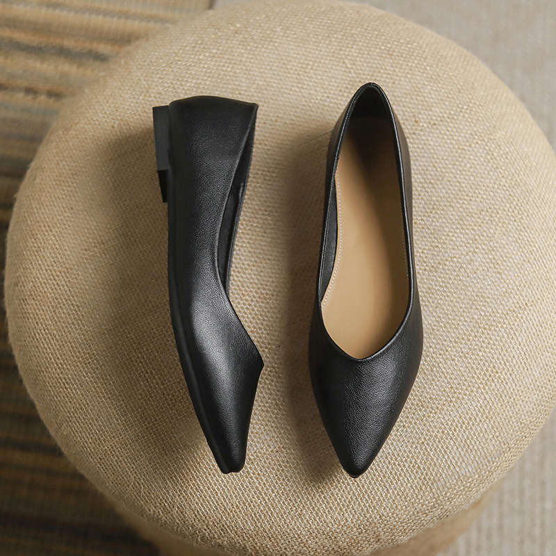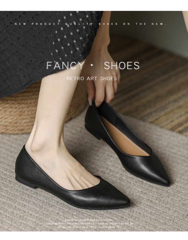 2026년 신상 여성용 작업화, 블랙 포인티드 토 싱글 슈즈, 여성용 플랫 바닥 전문직 은행 직장 유니폼, 대형 사이즈 4143스토어 가기