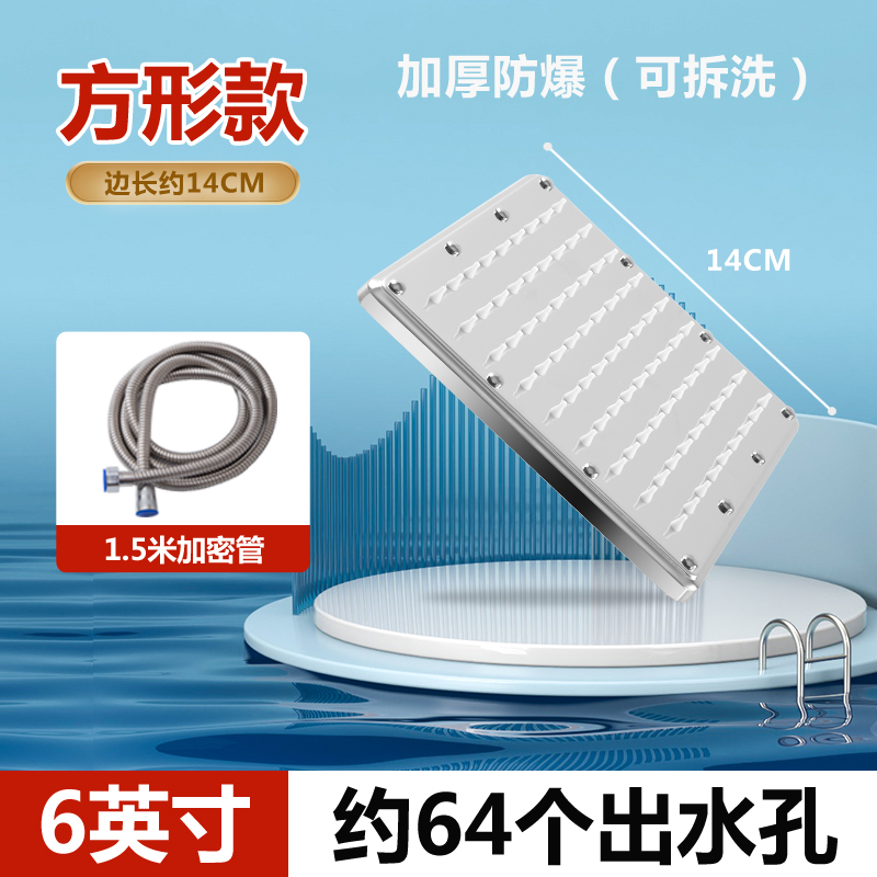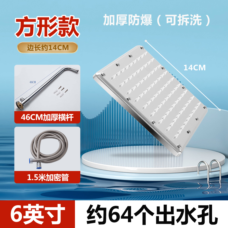 • 6inch 정사각형 방폭 304 헤드 + 46CM 크로스바 + 1.5m 호스