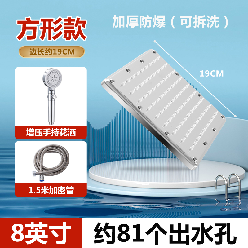 • 8inch 정사각형 방폭 304 헤드 + 46CM 크로스바 + 1.5m 호스